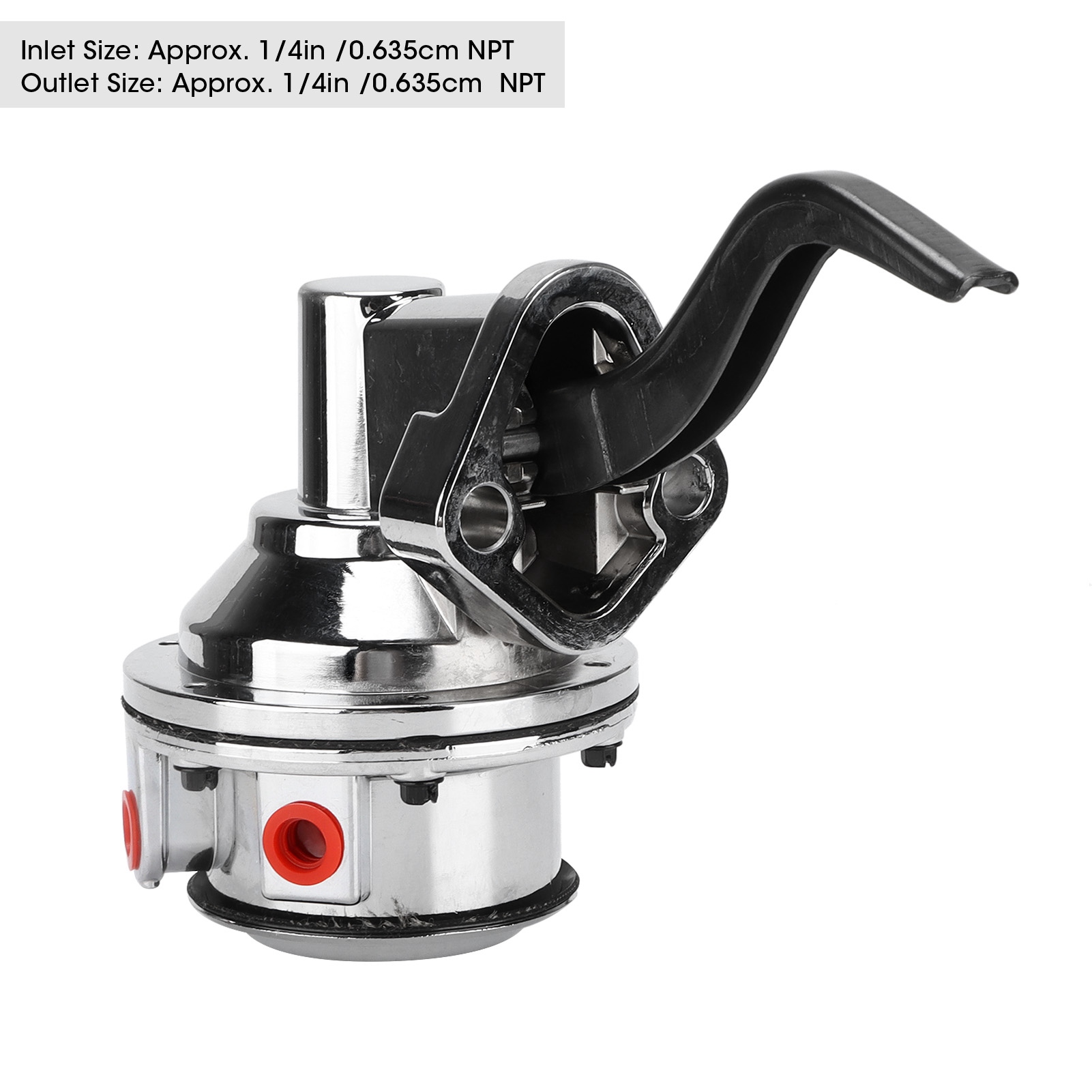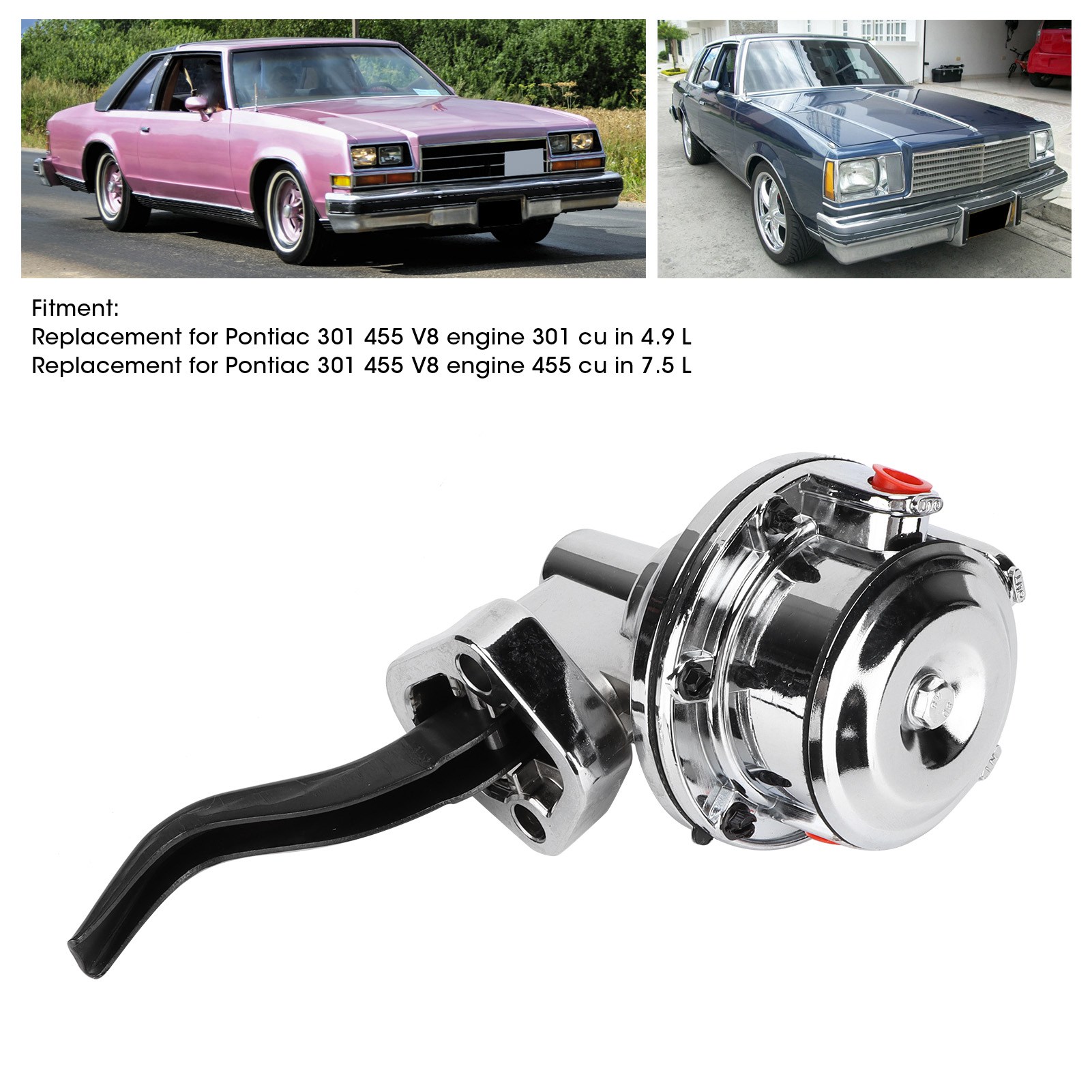 1、Replacement for Pontiac 301 455 V8 engine 301 cu in 4.9 L and 455 cu in 7.5 L to meet your needs. 2、Equipped with an adjustable and have been given heavy duty rubber seals for optimum leak protection. 3、Designed to flow at an improved rate over stock with 115 GPH free flow and 6.5 PSI, provide you more convenience. 4、The pumps are cast from lightweight aluminum and given a beautiful, high‑quality chrome finish. 5、Mechanical fuel pump is especially suitable for upgrading the fuel pump without losing that classic look.