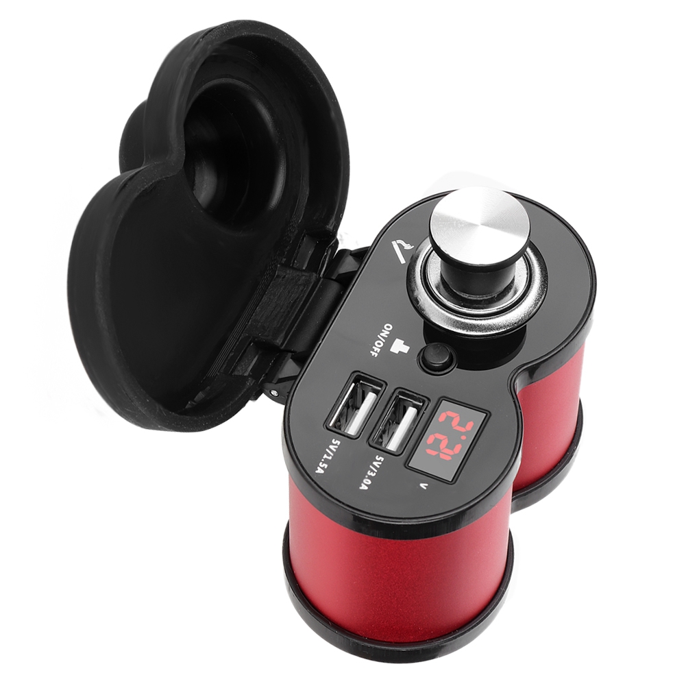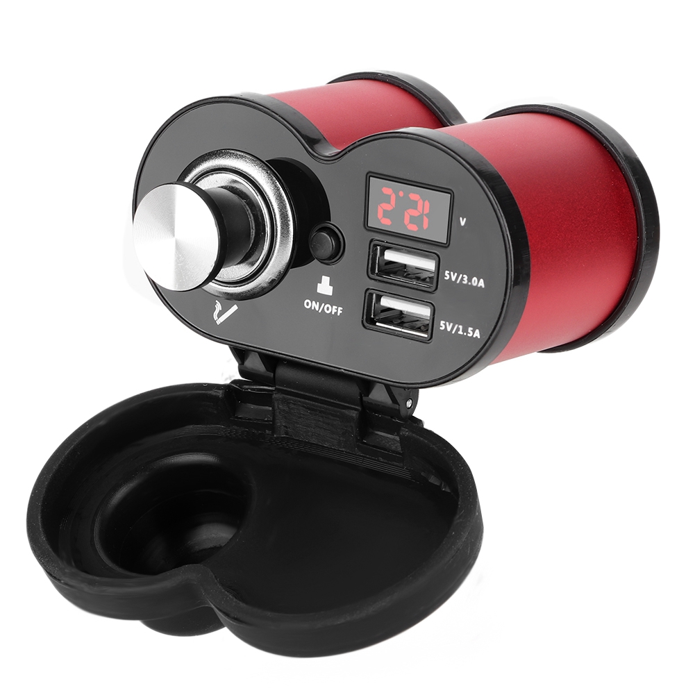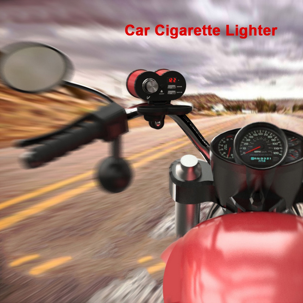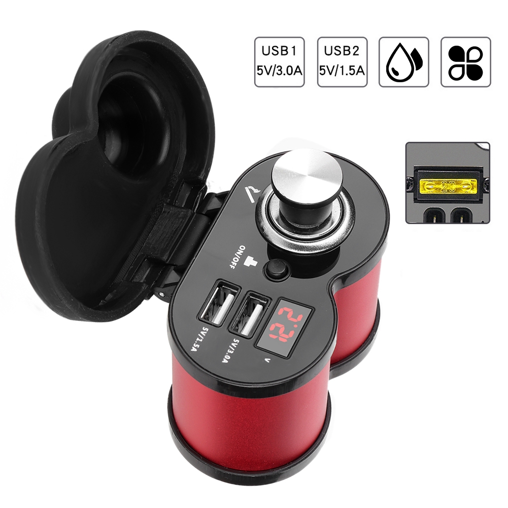 Motorcycle Dual USB MultiFunction Phone Charger with Voltmeter and Cigarette Lighter (Red)