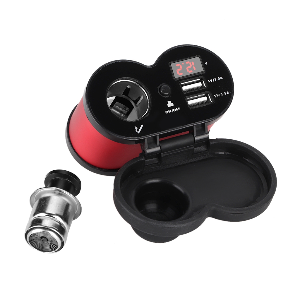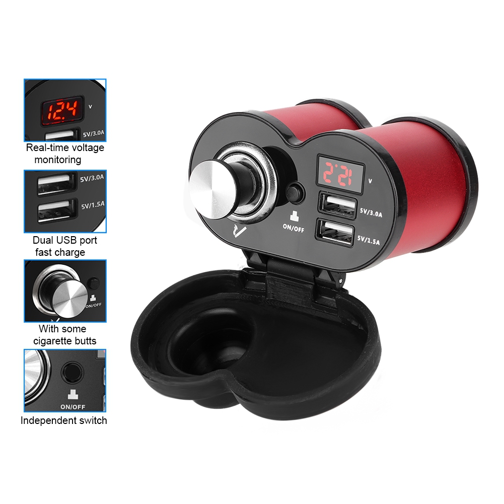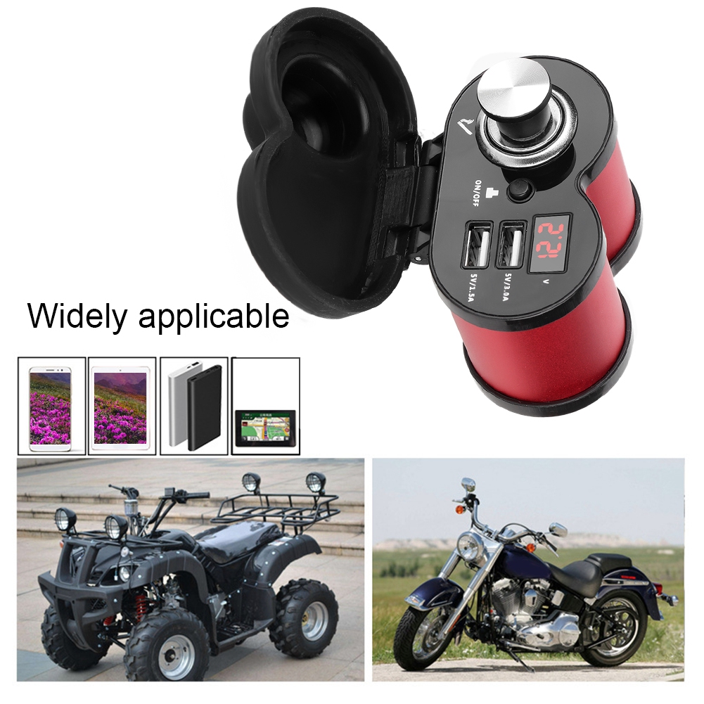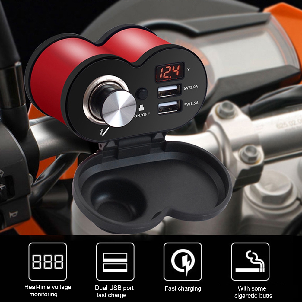 Motorcycle Dual USB MultiFunction Phone Charger with Voltmeter and Cigarette Lighter (Red)