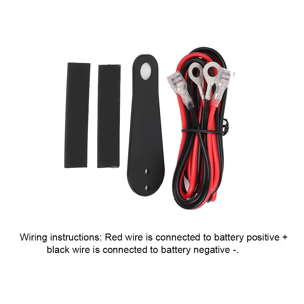 Wiring instructions: Red wire is connected to battery positive +, black wire is connected to battery negative -