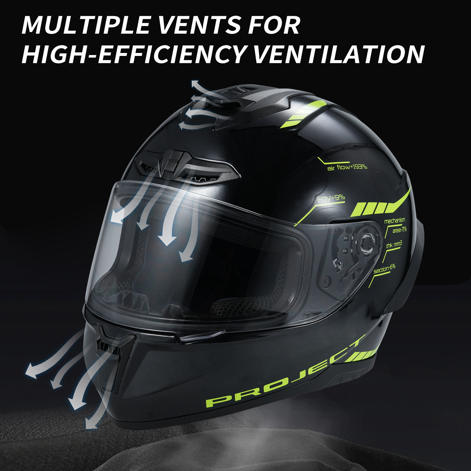 Quick-release Buckle: The full face motorcycle helmet features a quick-release buckle, making it extremely easy to put on and take off.