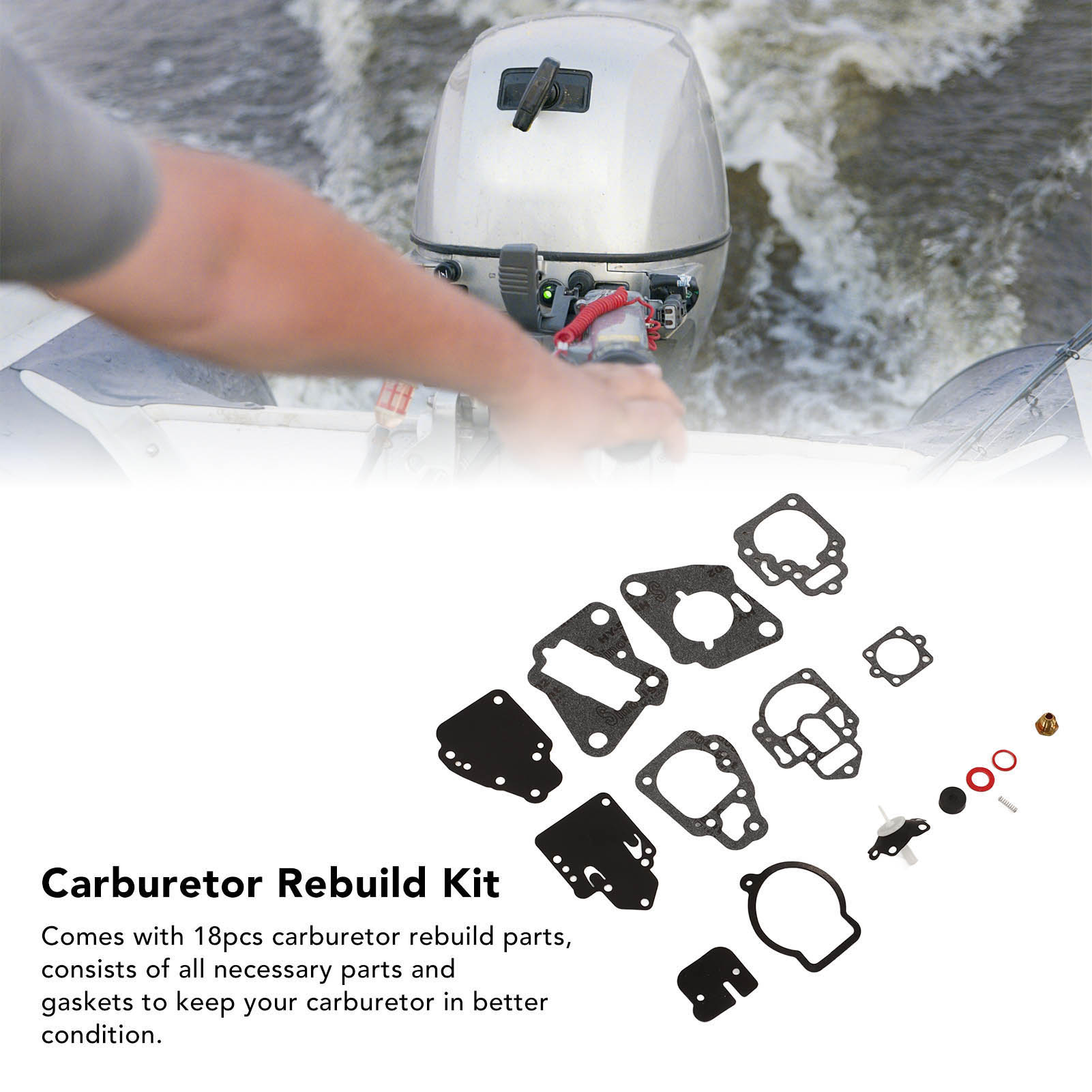 1、OE Number: The reference part number of the carburetor repair kit is 1395‑97611, which can assist you find exactly what you need. 2、Application: Outboard carburetor rebuild kit is designed for 6hp to 25hp 2 Cylinder, professional manufacturing, high performance. 3、16pcs in Total: Comes with 16pcs carburetor rebuild parts, consists of all necessary parts and gaskets to keep your carburetor in better condition. 4、Premium Material: Constructed from premium metal and rubber materials, wear resistant and oil resistant, and it has long service life. 5、Direct Replacement: Designed to match the fit and function of the original carb repair tool on specified vehicles, directly install and use.
