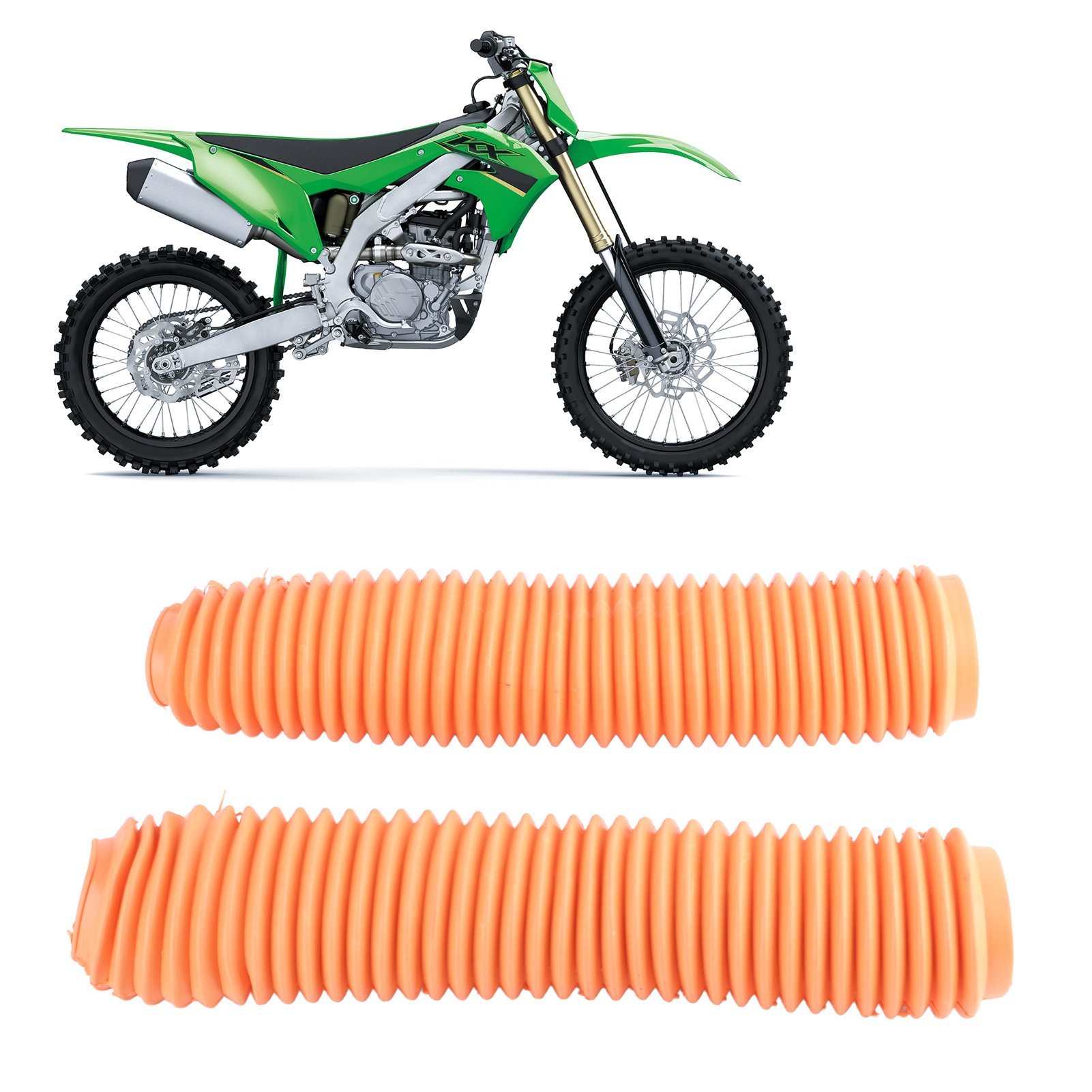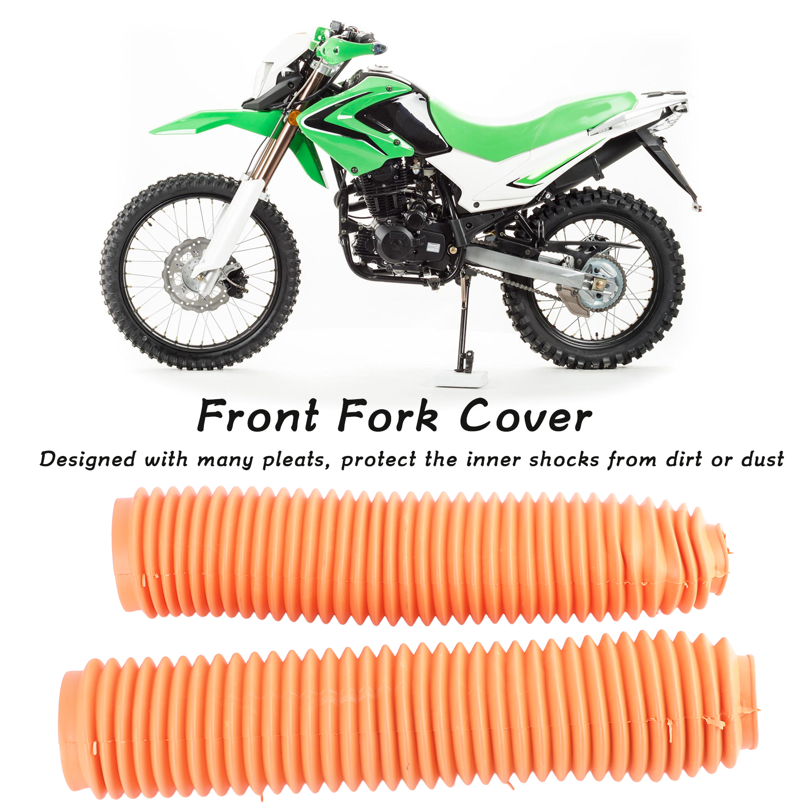 1、Applicable Model: Shock boots fit for CR80 CR125 CR250 CRF250, for YZ80 YZ125 YZ250 WR450, for KX125KD X200 KDX250 25. Replacement for SUZUKI RM125 DR250 DRZ400 400. 2、Dimensions: Top opening approx. 40mm/1.58in, bottom opening approx. 60mm/2.36in, overall length approx. 360mm/14.17in, folded length approx. 155mm/6.1in. 3、Main Function: These front fork covers are designed with many pleats, to protect the inner shocks from dirt or dust, prevent oil leakage and provide a comfortable driving experience. 4、Durable Material: Made of high quality rubber, beautiful and durable. Fits most motorcycles, motocross, off‑road bikes. 5、Stylish Design: Perfectly match your motorcycle while protecting the fork from damage, giving your beloved motorcycle an upgraded look.