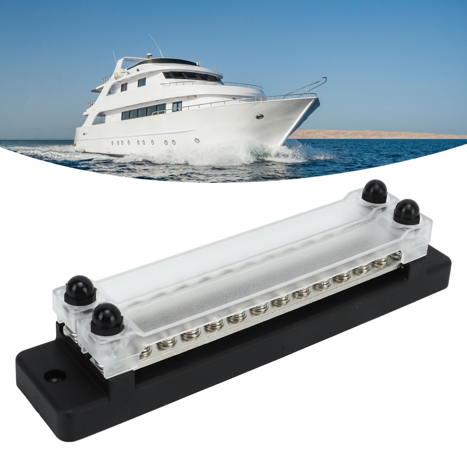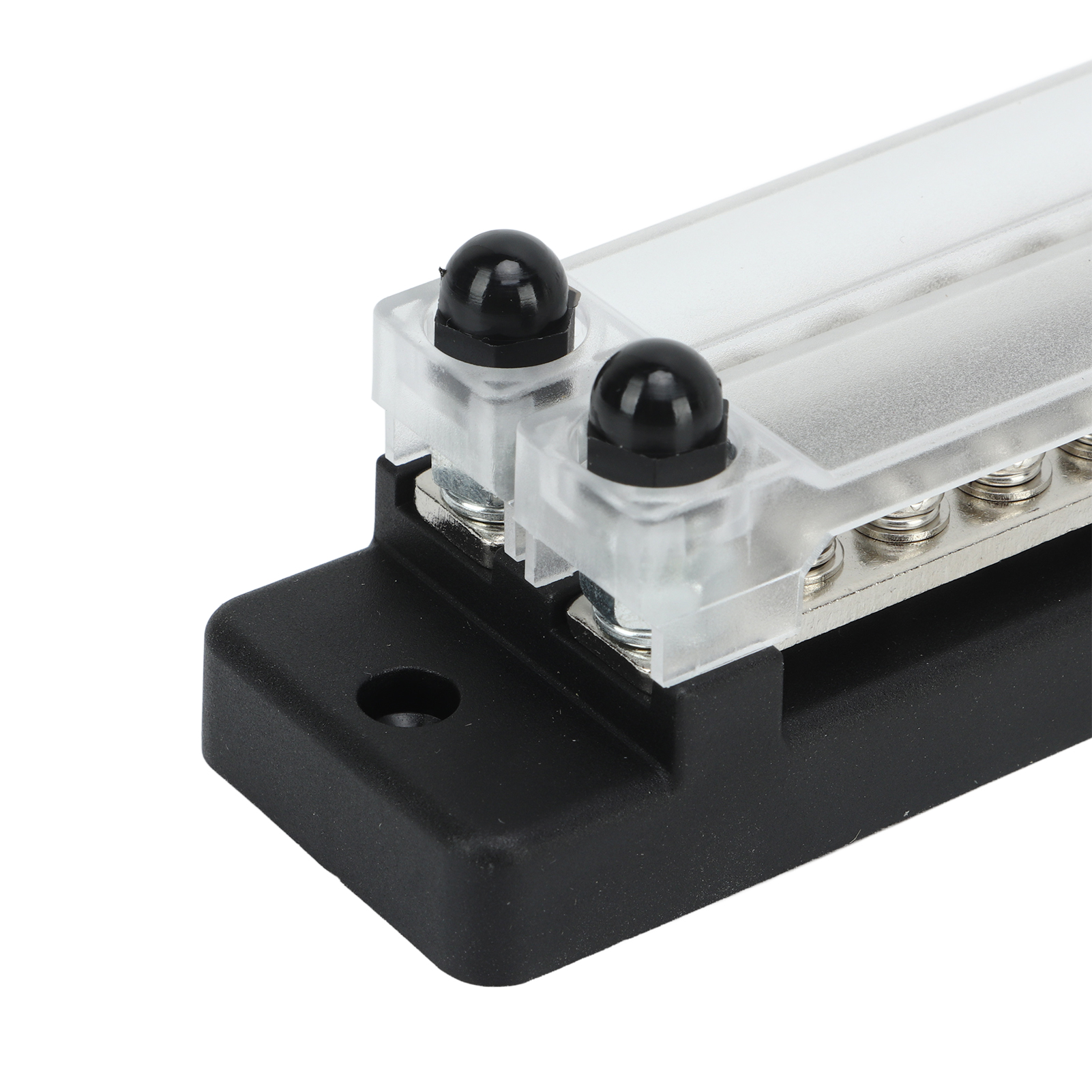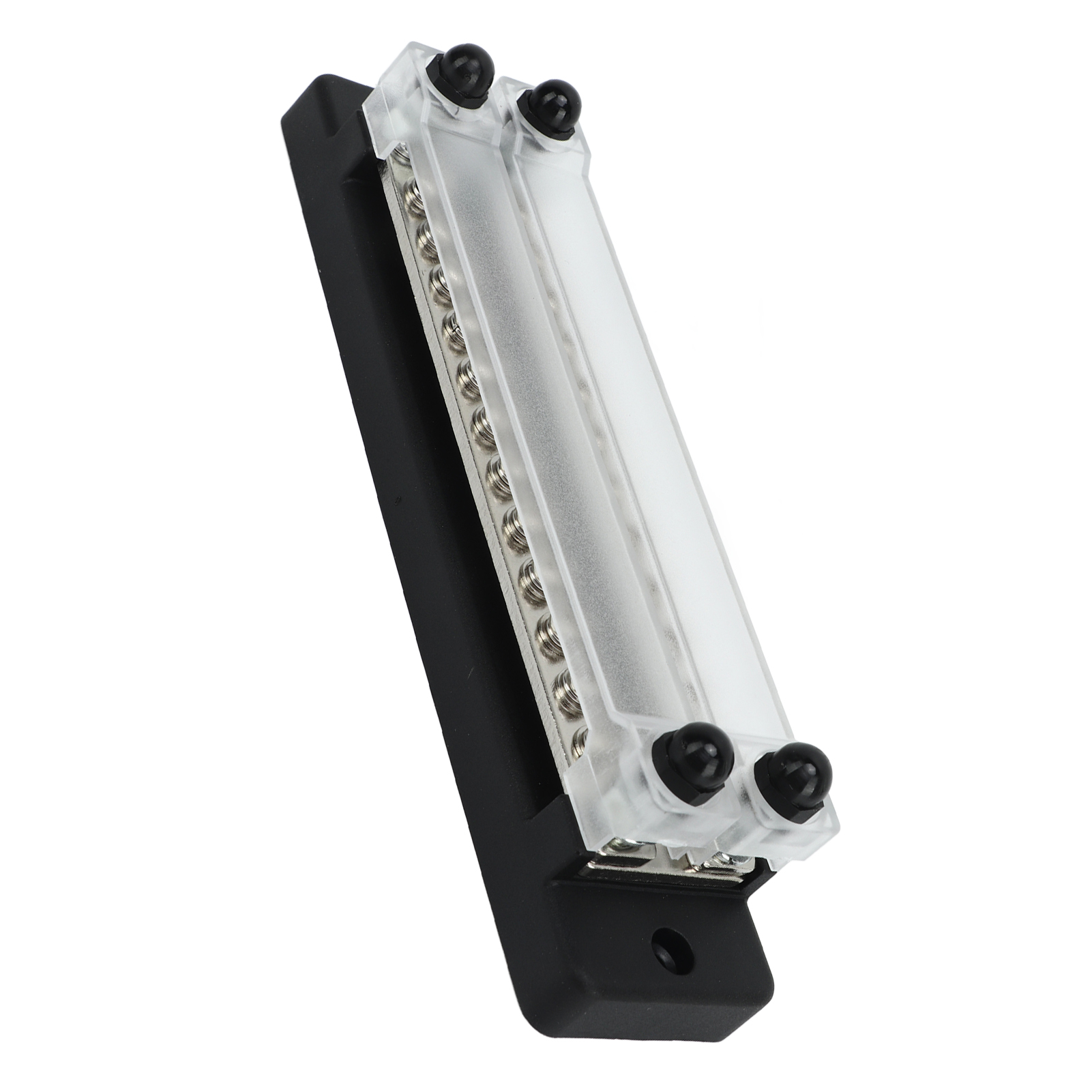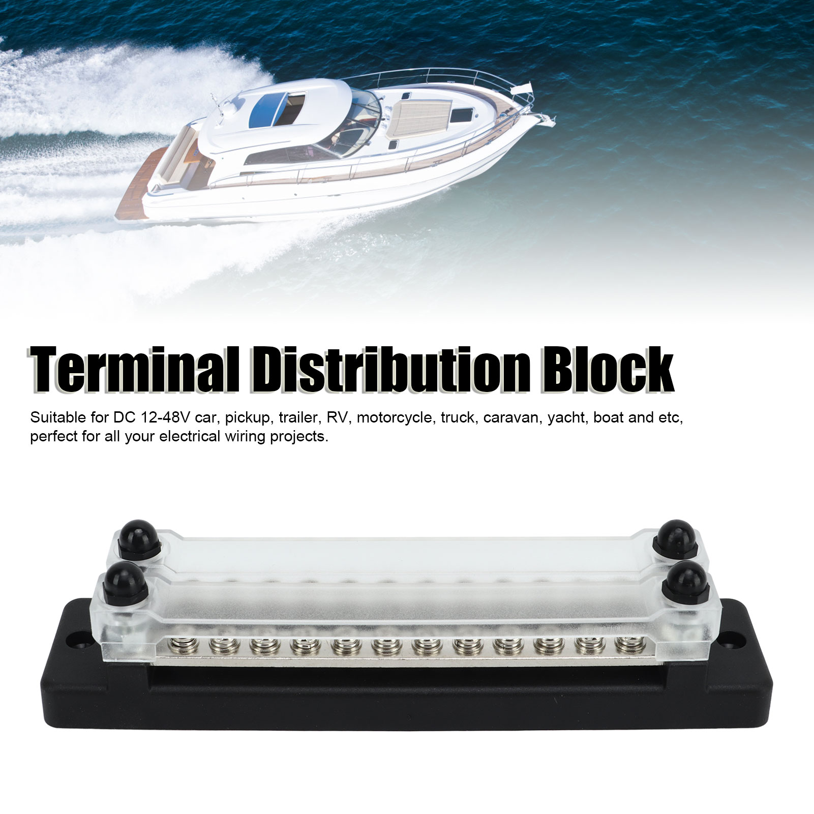 1、Wide Application: Suitable for DC 12‑48V car, pickup, trailer, RV, motorcycle, truck, caravan, yacht, boat and etc, perfect for all your electrical wiring projects. 2、Flame Retardant: The base is made from environment friendly nylon, ensuring excellent mechanical strength and durability with excellent flame retardant performance. 3、High Reliability: The transparent polycarbonate case adds extra protection, fire and dust resistance, and protection against accidental touch. Terminal threaded fasteners with stainless steel openings and ring lock washers provide stability in high vibration environments. 4、Ideal Function: Our terminal threaded fastener is capable of gathering the wiring harness together and reasonably storing the power cord inside the vehicle or ship. 5、Professional Manufacturing: This bus bar terminal block meets strict production standards, and boasts stable performance, high reliability, high accuracy and sensitivity.