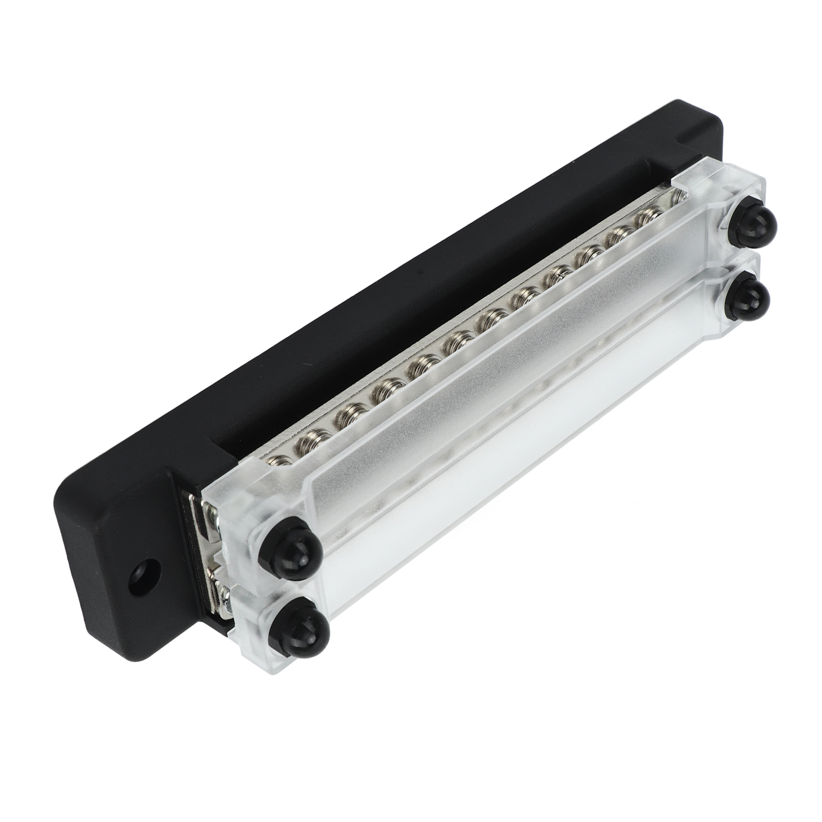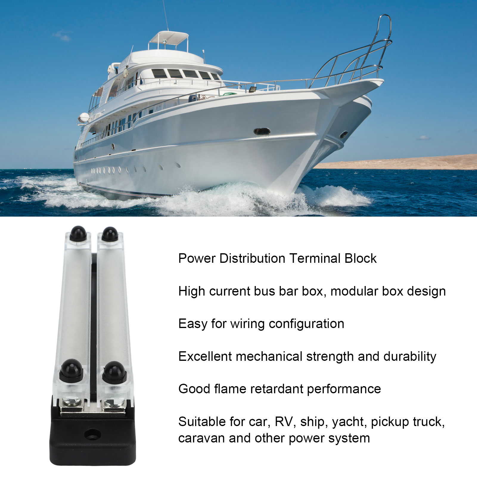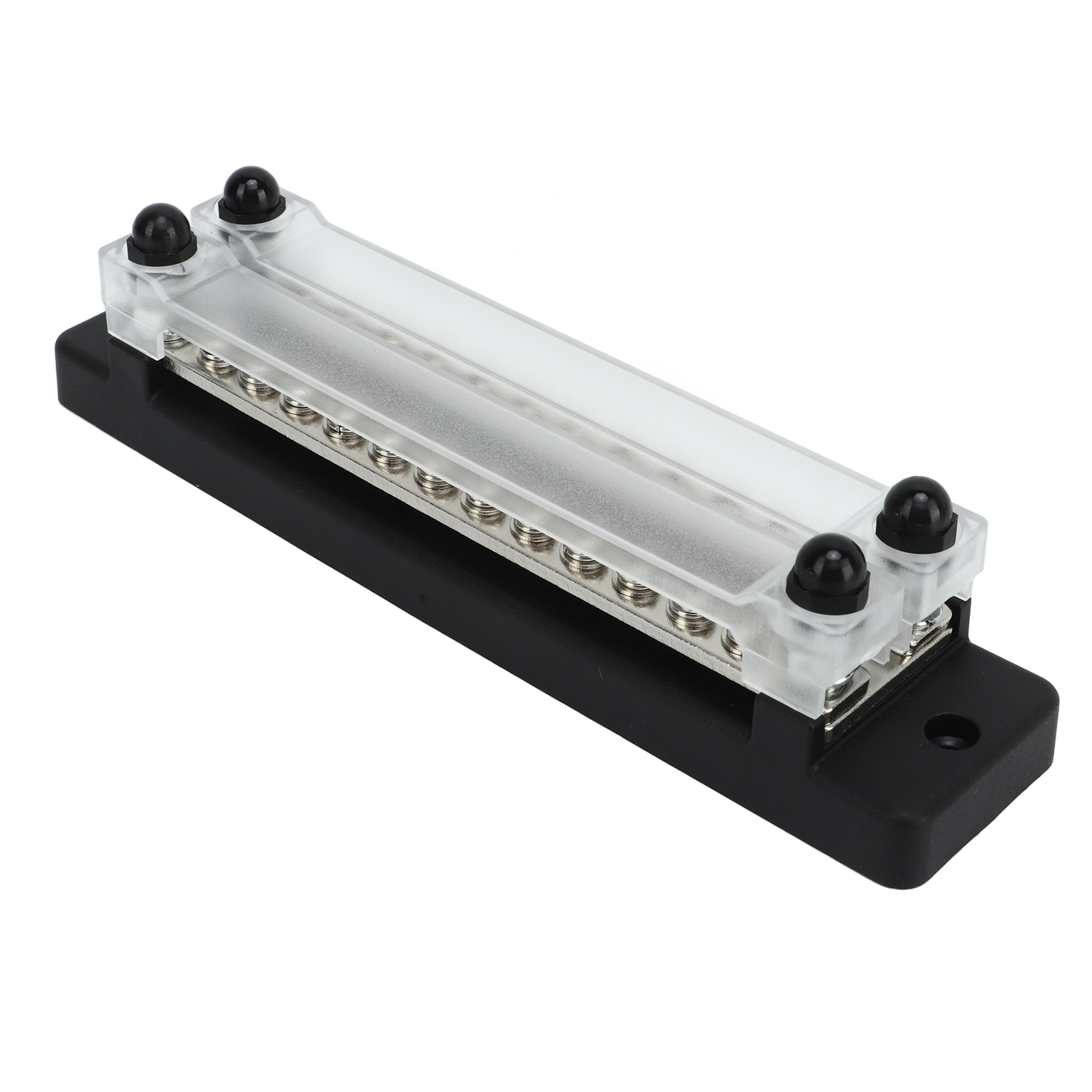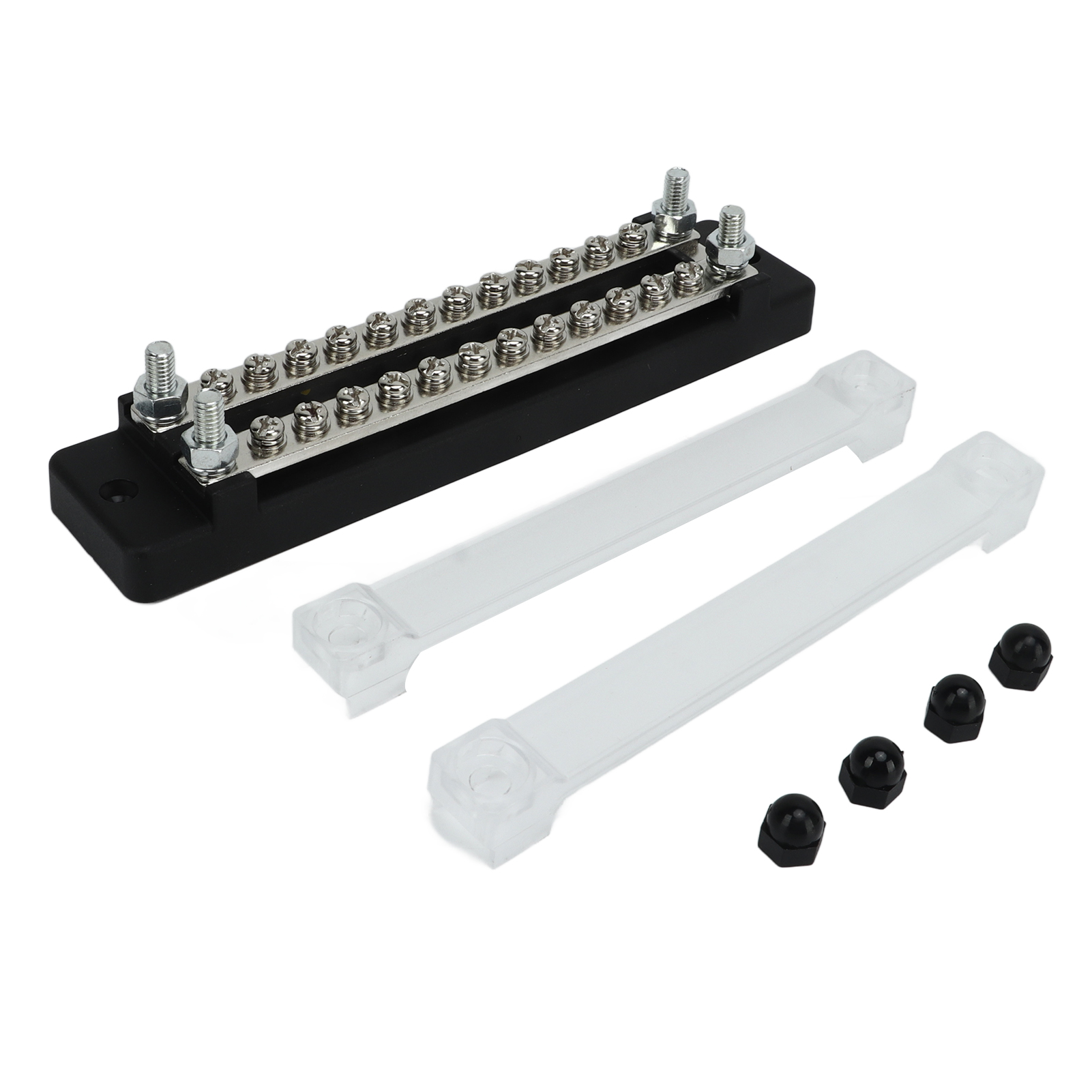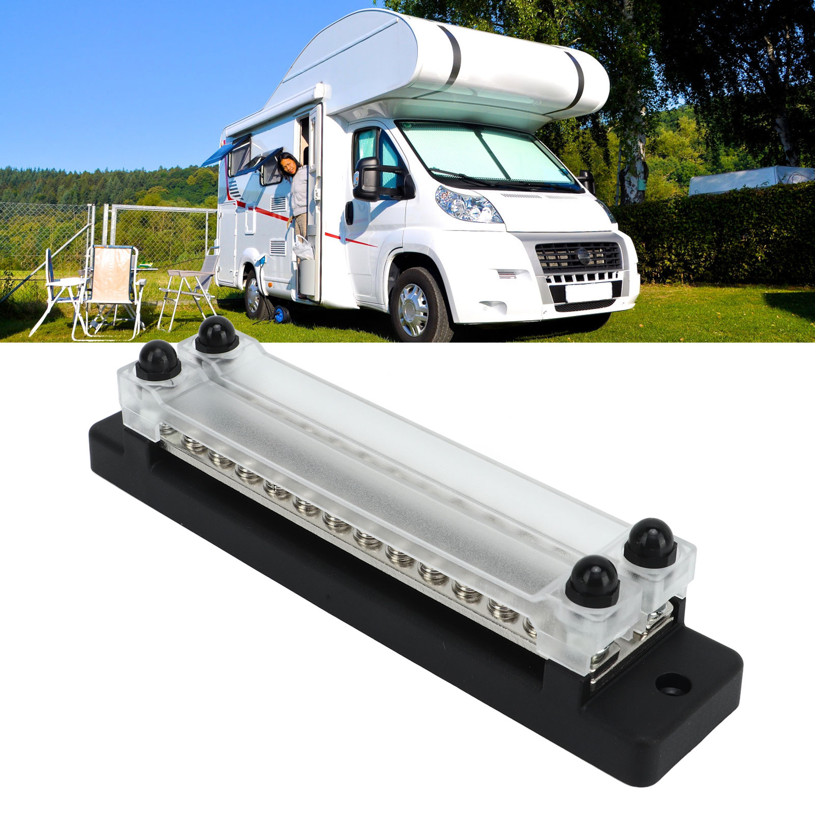1、Wide Application: Suitable for DC 12‑48V car, pickup, trailer, RV, motorcycle, truck, caravan, yacht, boat and etc, perfect for all your electrical wiring projects. 2、Flame Retardant: The base is made from environment friendly nylon, ensuring excellent mechanical strength and durability with excellent flame retardant performance. 3、High Reliability: The transparent polycarbonate case adds extra protection, fire and dust resistance, and protection against accidental touch. Terminal threaded fasteners with stainless steel openings and ring lock washers provide stability in high vibration environments. 4、Ideal Function: Our terminal threaded fastener is capable of gathering the wiring harness together and reasonably storing the power cord inside the vehicle or ship. 5、Professional Manufacturing: This bus bar terminal block meets strict production standards, and boasts stable performance, high reliability, high accuracy and sensitivity.