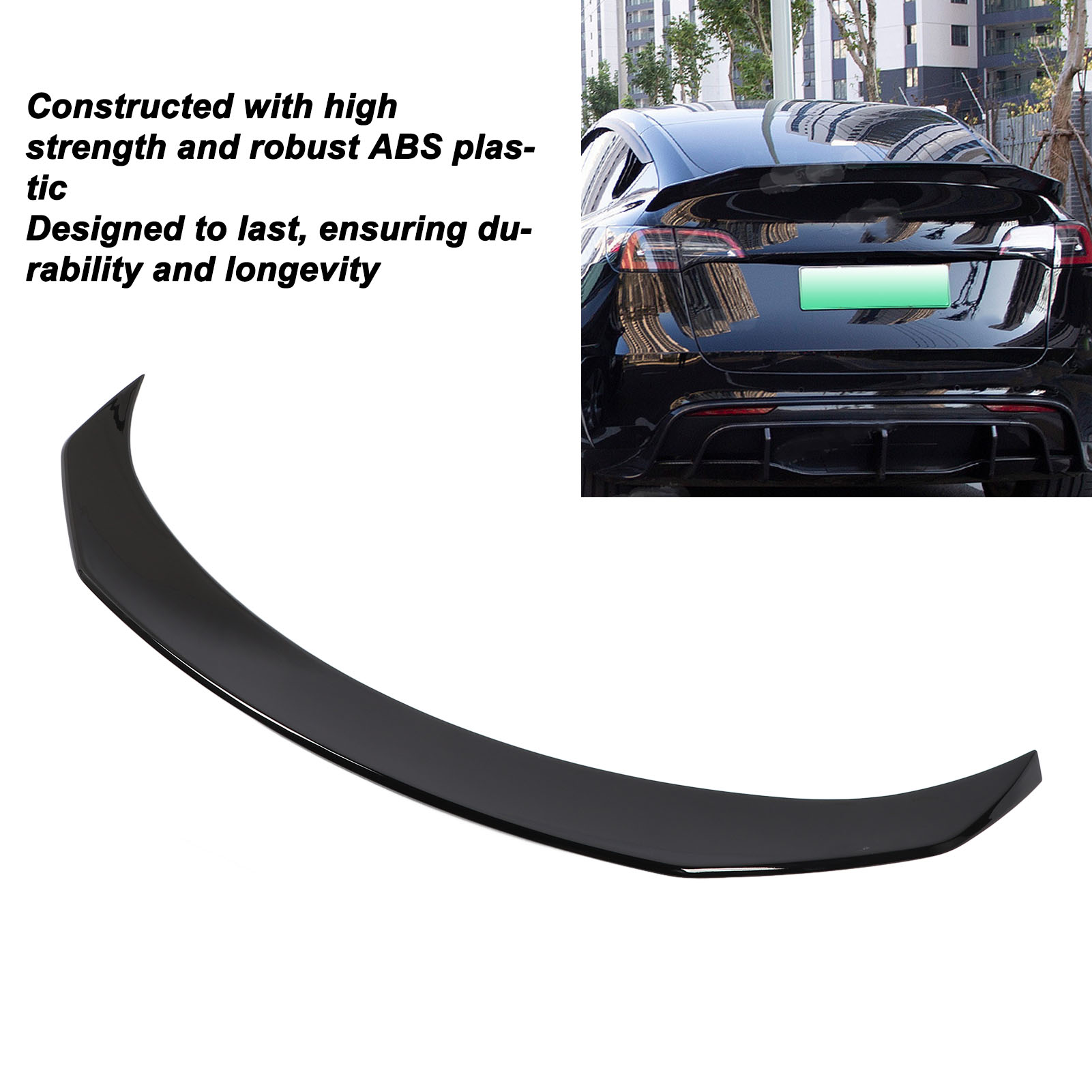 1、Applicable Model: The rear trunk lid spoiler is a replacement for Tesla Model Y 2021 to 2023, please check the model and year of manufacturing before ordering. 2、Sporty Appearance: The rear trunk lid spoiler could add a sporty exterior to your vehicle, greatly enhancing its overall aesthetics, makes your vehicle more stand out. 3、Aerodynamic Performance: Designed to reduce drag, this spoiler increases the vehicle's aerodynamic performance, improving both speed and fuel efficiency. 4、Premium Material: Constructed with high strength and robust ABS plastic, this spoiler is designed to last, ensuring durability and longevity. 5、Perfect Fit: Molded and designed depend on the original data, and maintaining the original car model. Fits perfectly to the edges without protrusions or gaps.
