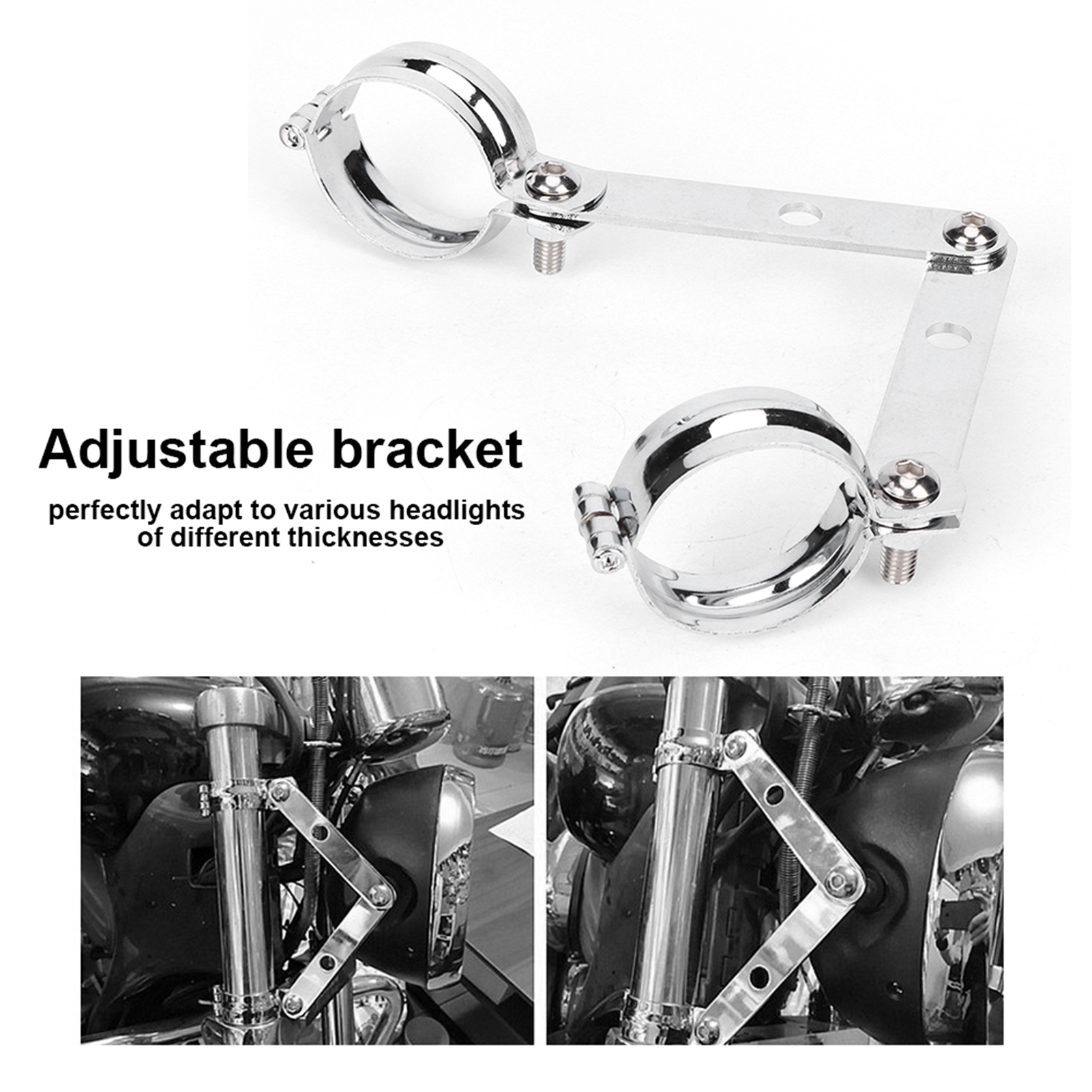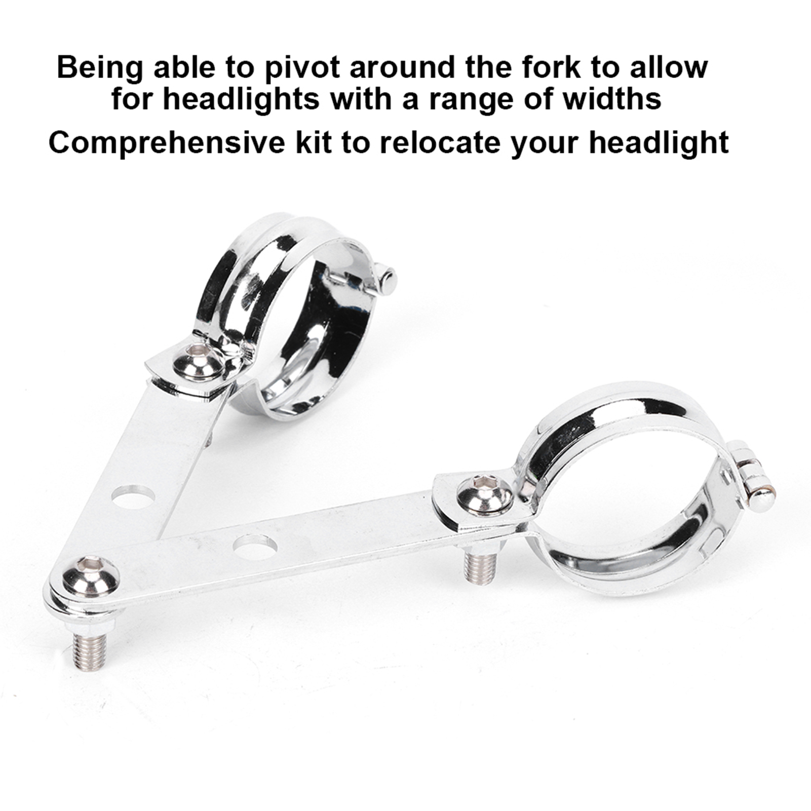 1、Adjustable bracket, it can perfectly adapt to various headlights of different thicknesses. 2、High quality CNC machined headlight brackets that incorporate fork clamps. 3、With an added advantage of being able to pivot around the fork to allow for headlights with a range of widths. 4、Comes with 2 clamps and protective strips, it's a comprehensive kit to relocate your headlight. 5、Wide application, suitable for cruisers, cafe racers, streetfighters, project bikes, retros and so on.