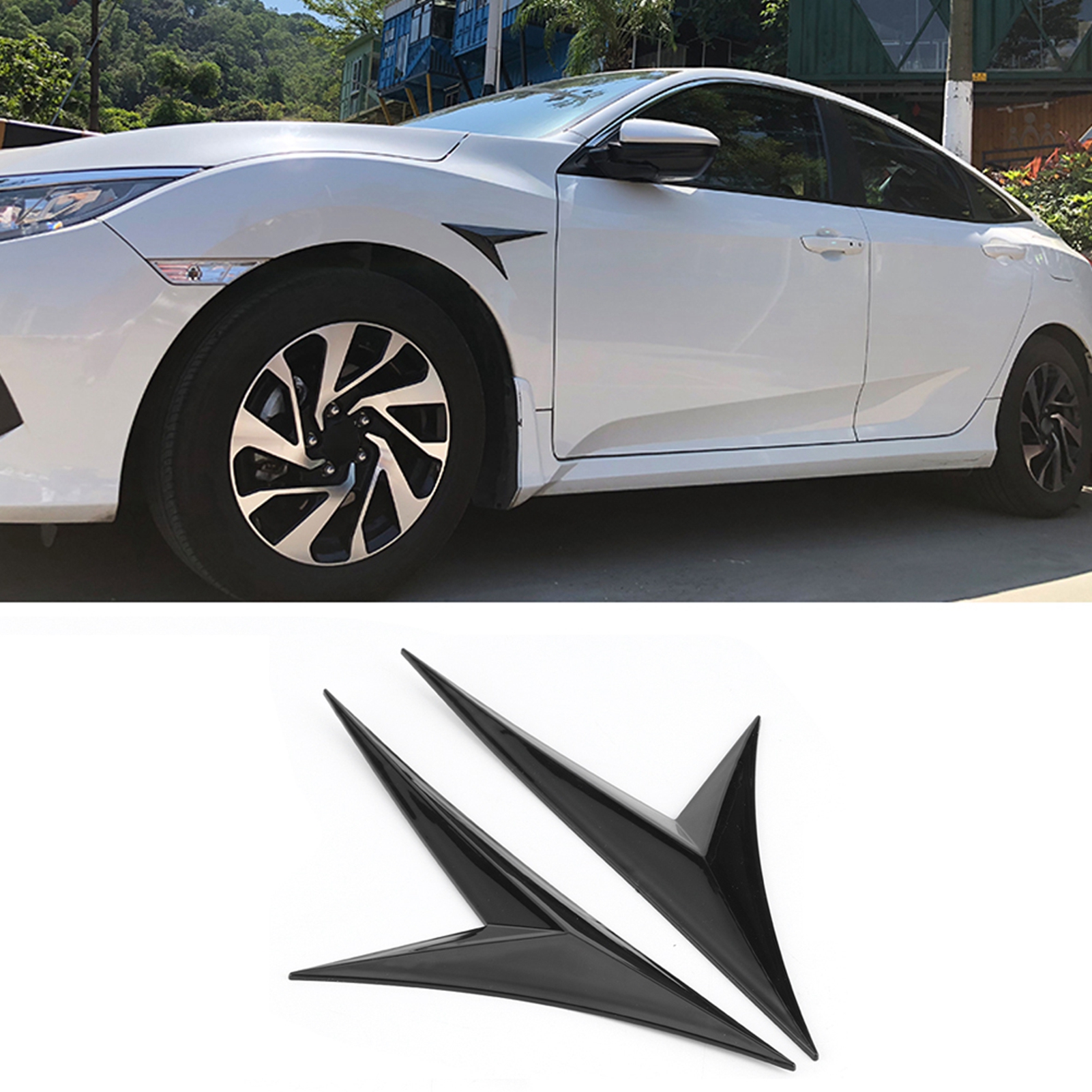Side Air Vent Fender Cover Universal Triangular Trim Decor Car Refitting Fit for Honda Civic Black