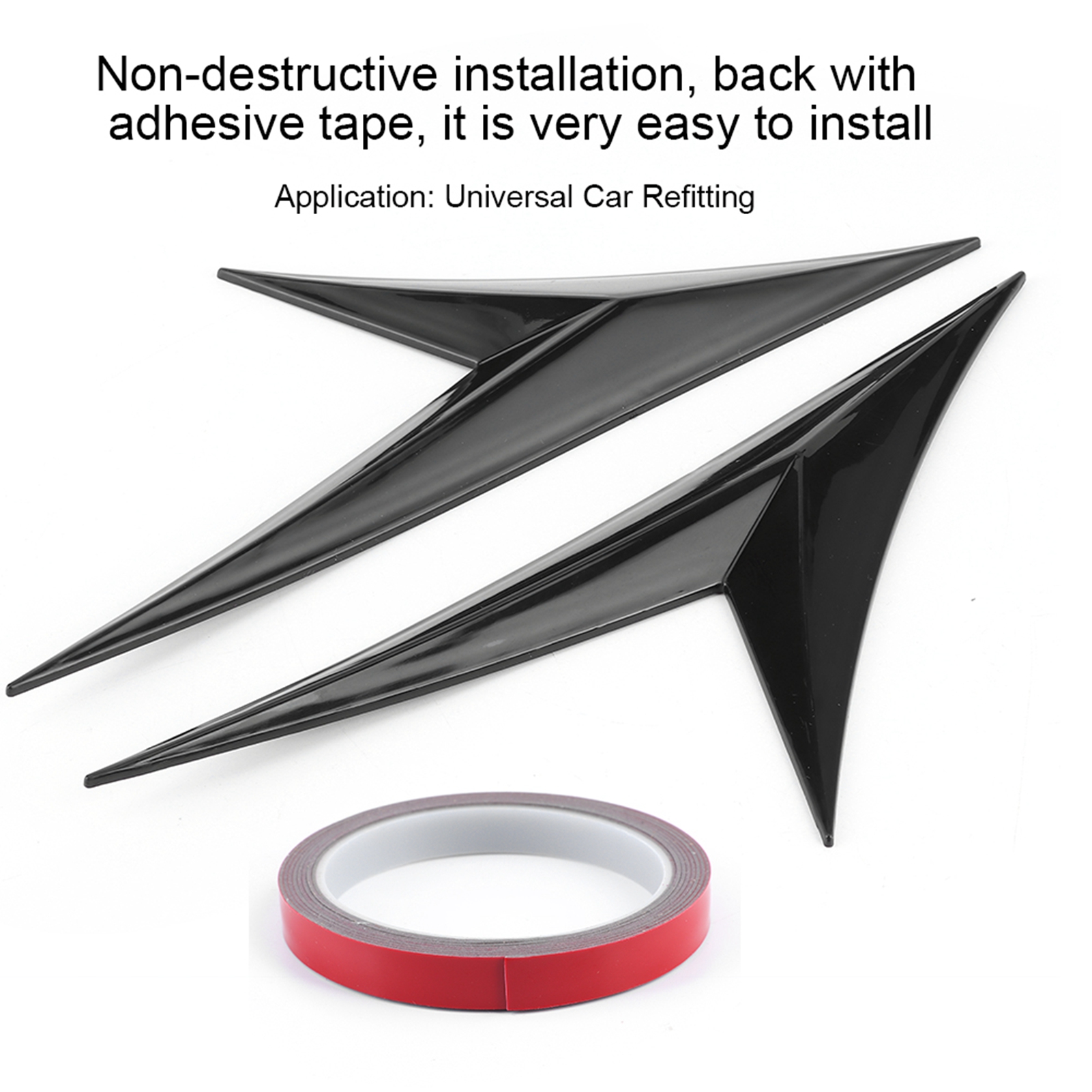 1、Made of high quality materials, durable and practical when in use. 2、Cool and stylish appearance, make your car more sporty and attractive. 3、Three-dimensional sporty shape, reduce wind resistance, increase body sense of fashion. 4、Non-destructive installation, back with adhesive tape, it is very easy to install. 5、Universal for car modification, with stable performance and long service life.