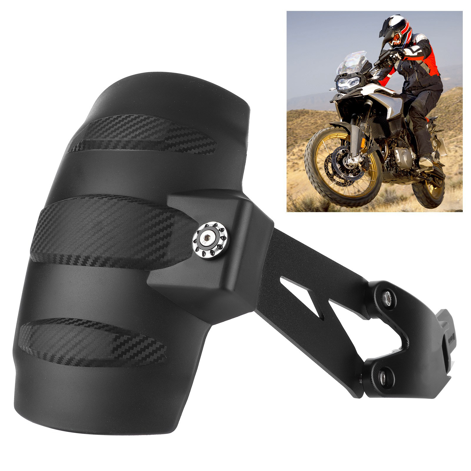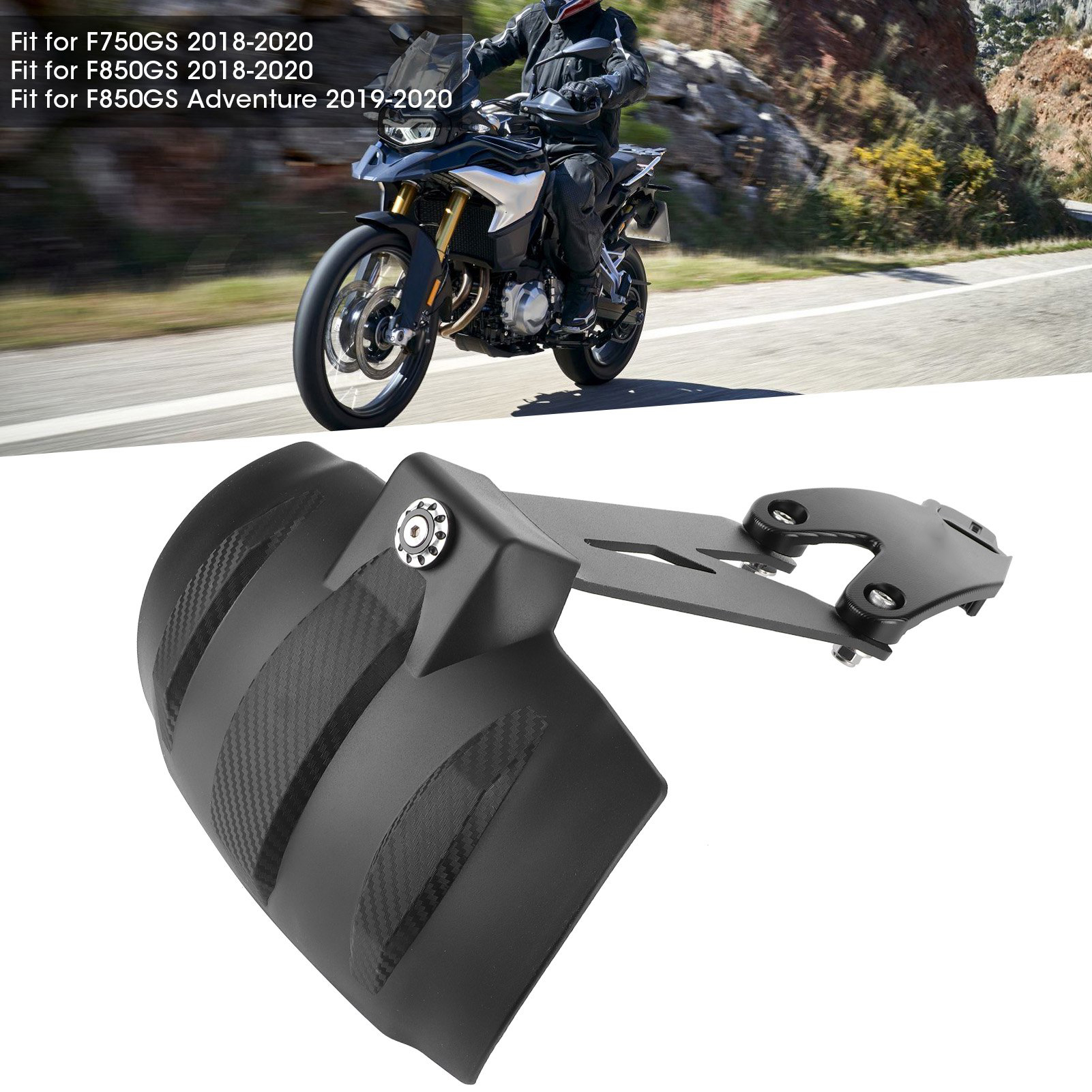 1、Effective protection against road dirt, water spray, splinters and stones. 2、Protects the motorcycle, rider and passenger form hurt while riding. 3、Processed ABS plastic + CNC aluminum alloy, deep‑drawn, dyed through plastic 4、Lightweight and robust, easy for fitting, fit for F750GS F850GS Adventure 18‑20. 5、Exquisite workmanship , stylish and distinctive, upgrade the motorbike appearance.