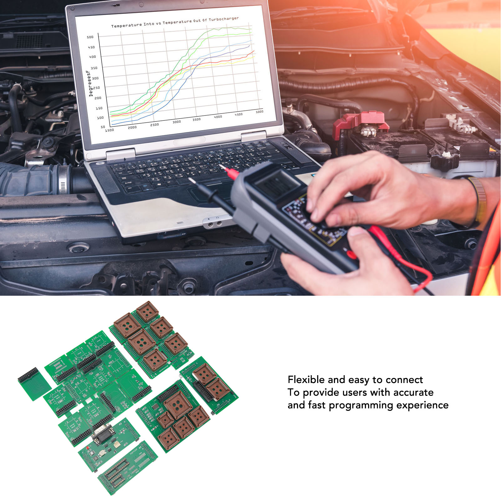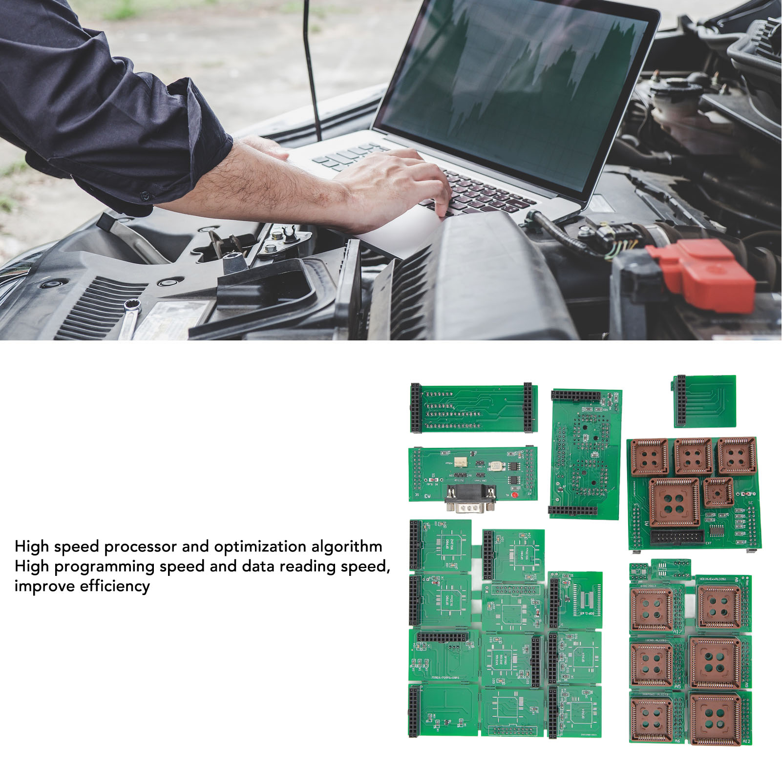 1、Application: Full featured programmer can be used for programming electronic devices, such as automotive electronics equipment and computers. 2、High Efficiency: Using high speed processor and optimized algorithm, high programming speed and data reading speed, which can reduce programming time and waiting time and improve efficiency. 3、Connection: The programmer is flexible and easy to connect to a variety of devices and software, and supports direct connection to a computer as well as connection to a computer via USB. 4、Accurate Design: The diagnostic tool has undergone rigorous quality control and professional design to ensure an accurate and fast programming experience for the user. 5、Easy to Use: The programmer interface is simple to understand and easy to operate for users with no programming experience.