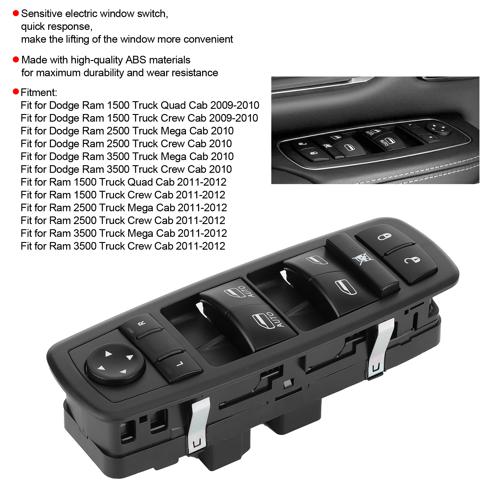 1、Replacing OEM numbers for reference is 04602533AF, perfectly match your car. 2、Strictly built by the original manufacturing specifications, fits for Dodge Ram 1500/2500/3500, etc. 3、Sensitive electric window switch, quick response, make the lifting of the window more convenient. 4、Made with high‑quality ABS materials for maximum durability and wear resistance. 5、Matte black low‑key appearance, simple assembly and disassembly, features stylish and unique style.