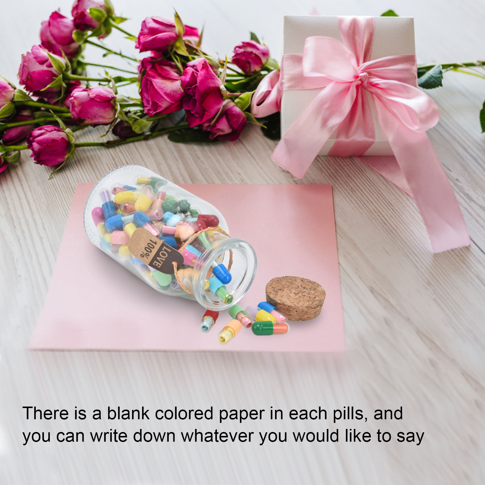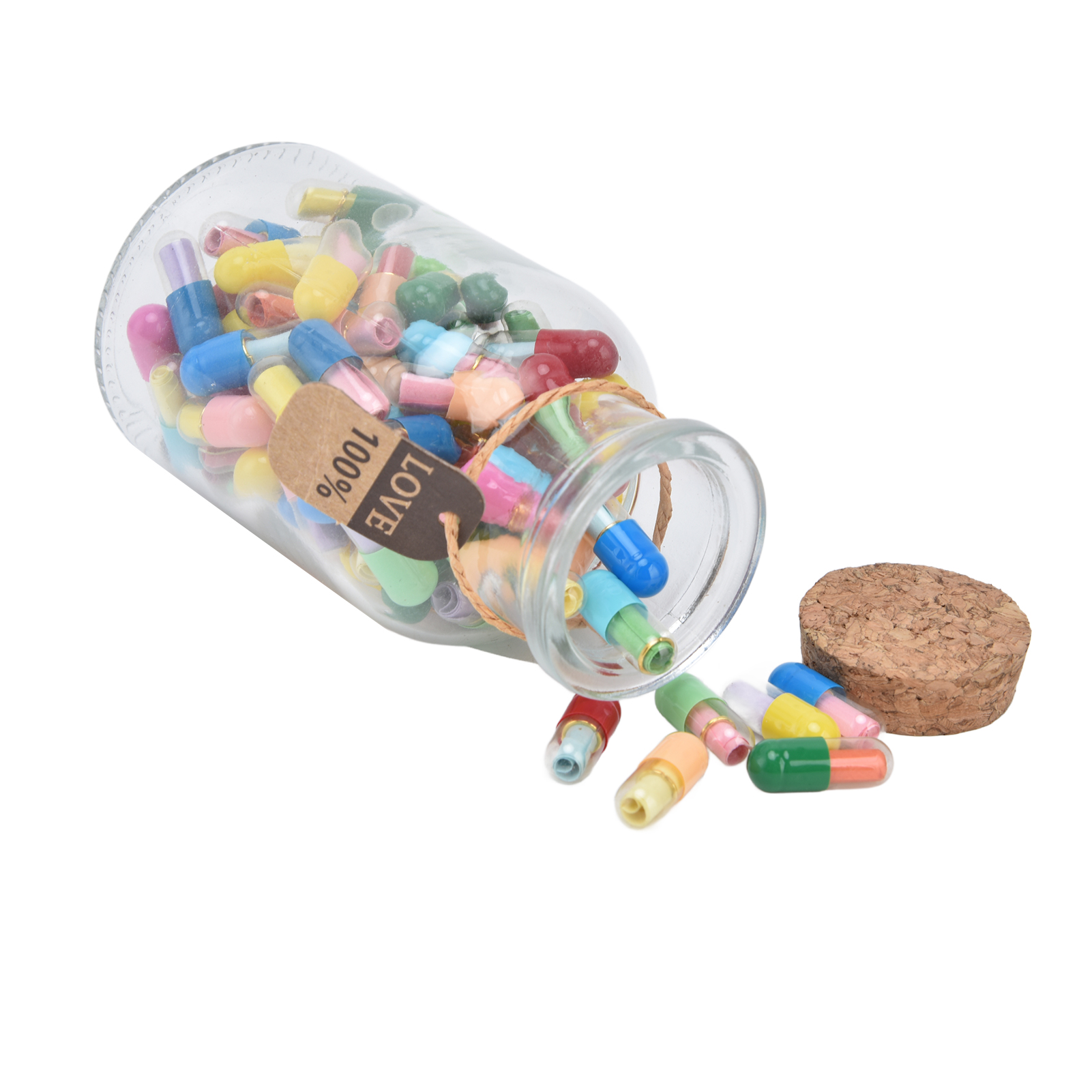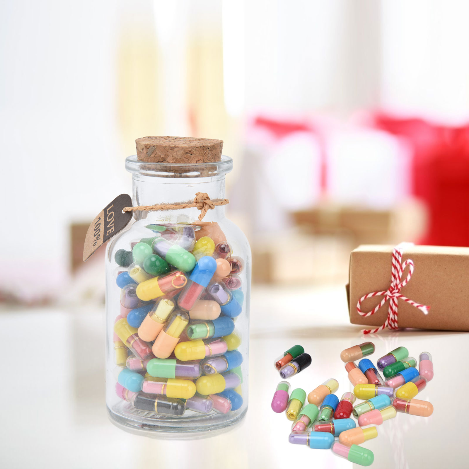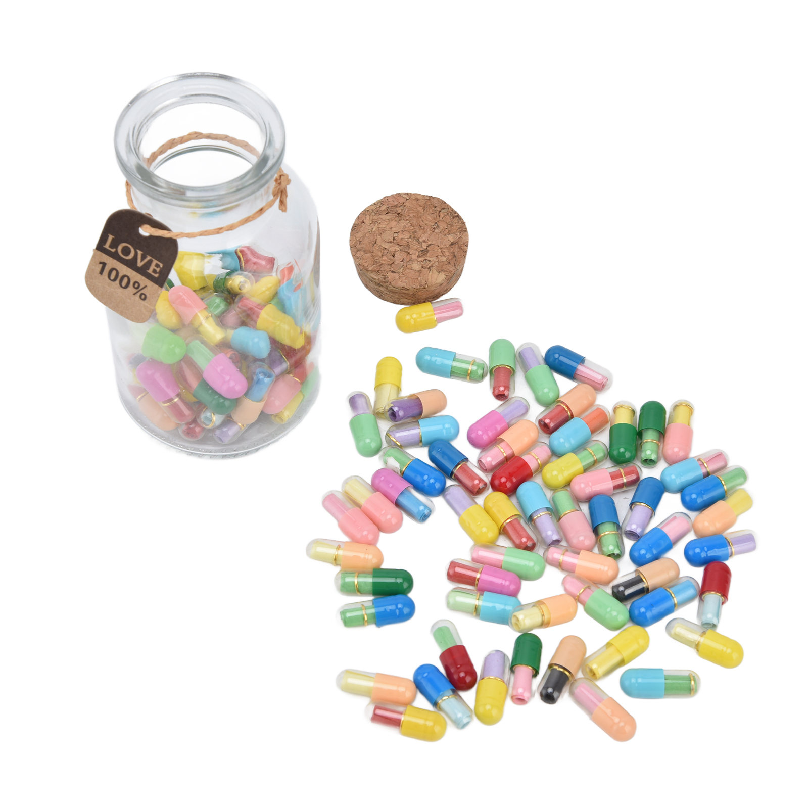 1、Feel Free To Write Letters: There is a blank colored paper in each pills, and you can write down whatever you would like to say and think. 2、Creative Design: There are 100 pills capsules in the floating glass bottle, and there is a letter paper in each pills, it is creative to express ideas. 3、The Perfect Gift: Pills letters message can be used to commemorate your long distance love, custom gifts for mothers or fathers or friends. 4、Good luck message in a bottle: A little secret in every capsule, record your or his life and yearning, happy or worried, missing and caring ,your love and life. 5、Premium Material: Message bottles are made of high quality glass and paper, the capsule is very realistic and you can use it with confidence due to its durability.