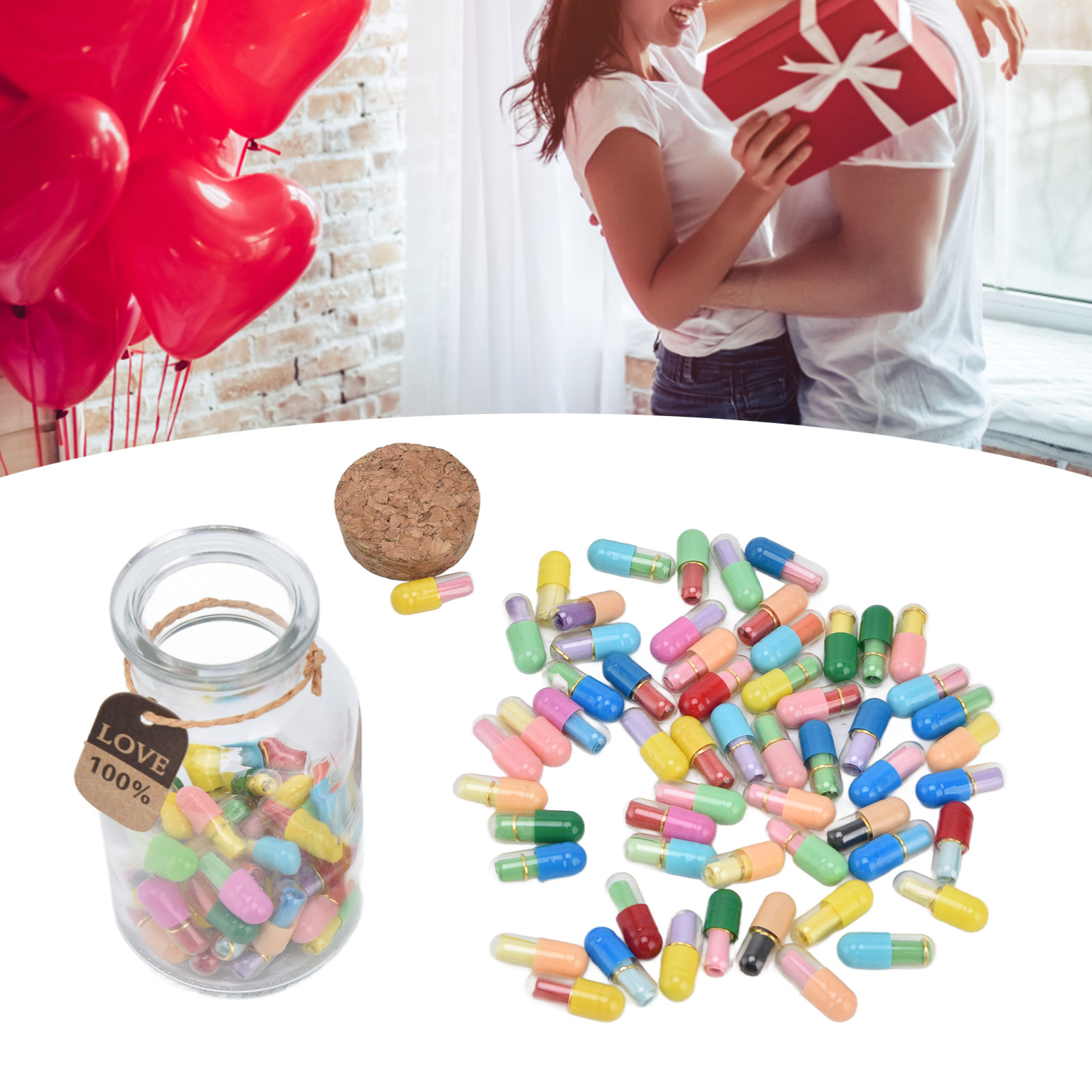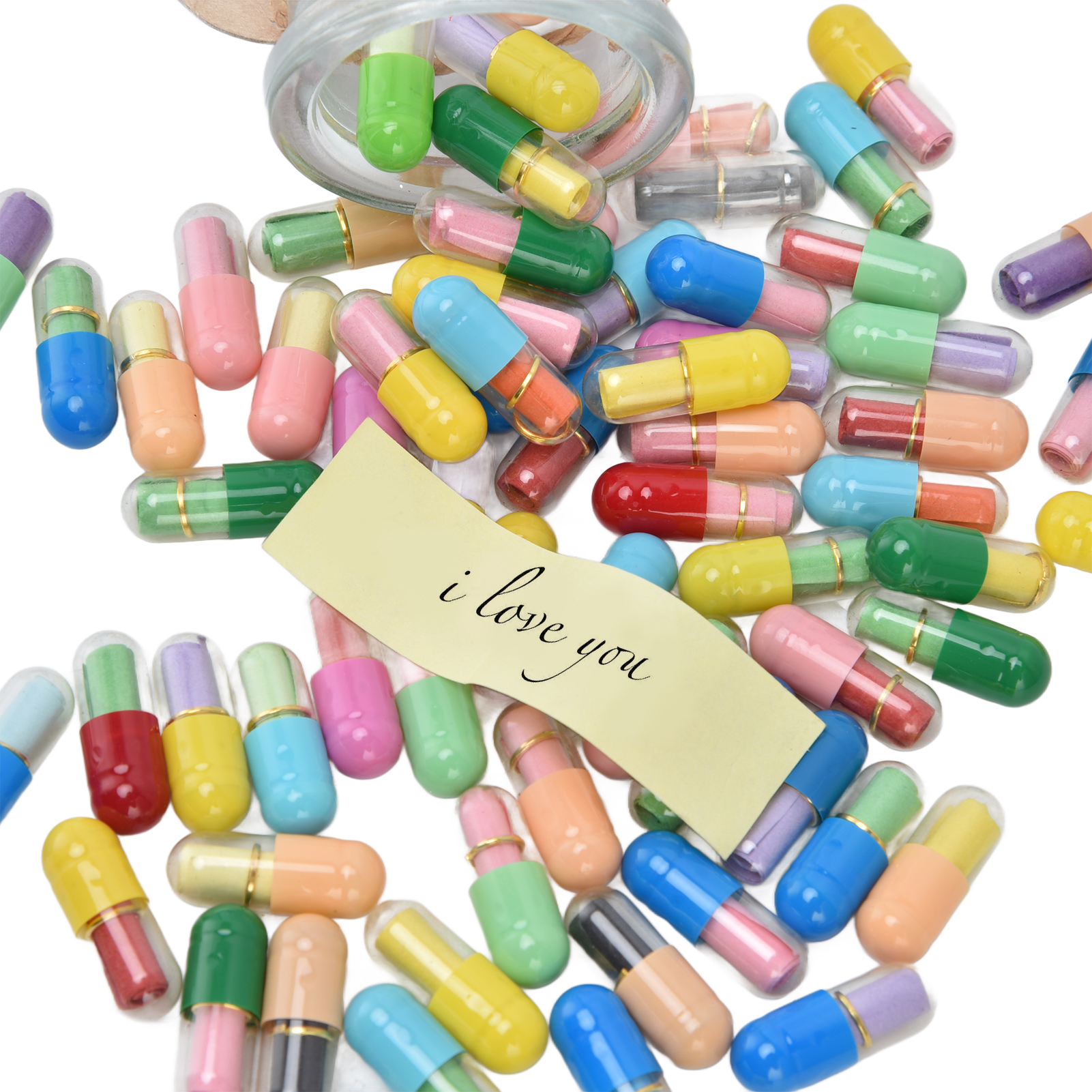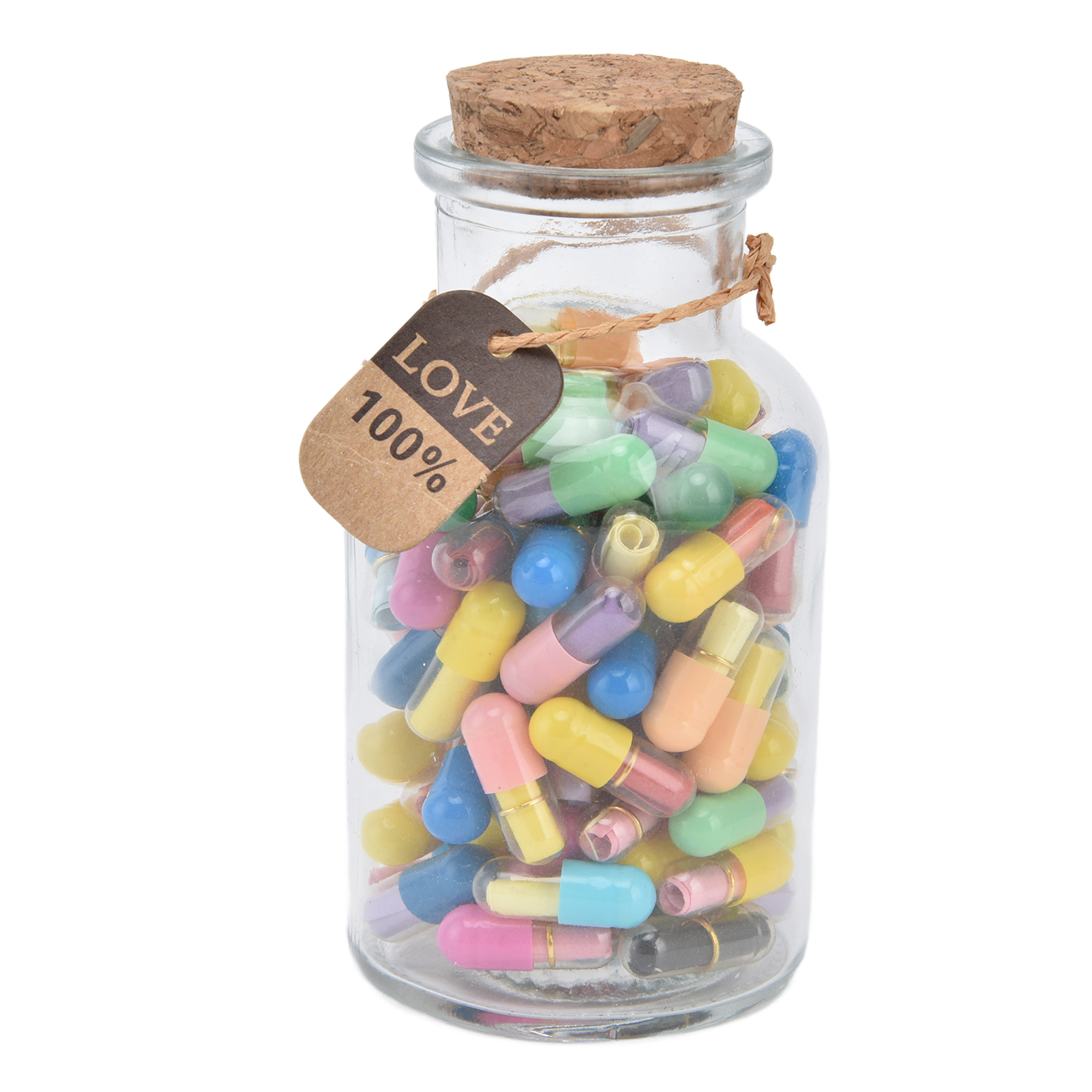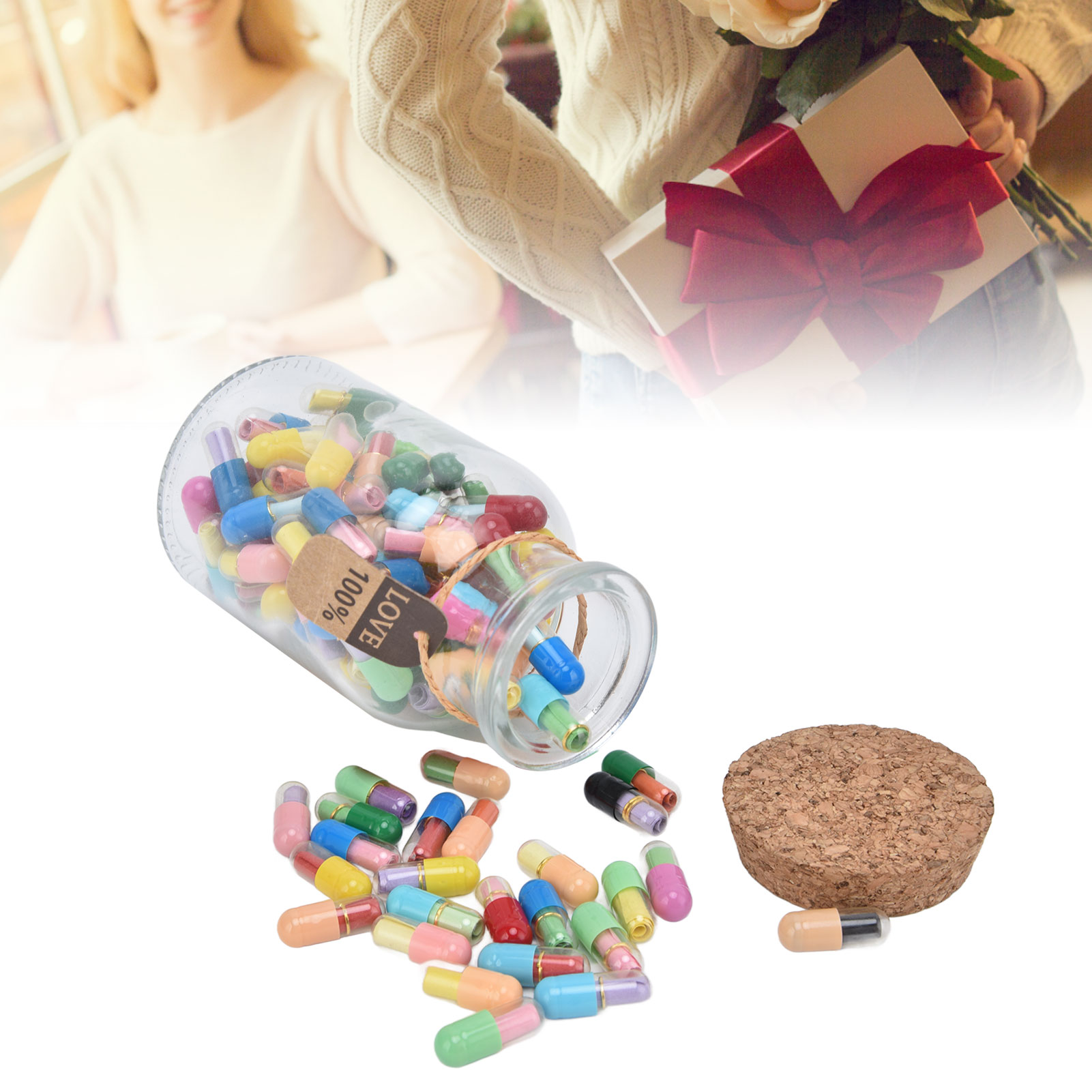 1、Feel Free To Write Letters: There is a blank colored paper in each pills, and you can write down whatever you would like to say and think. 2、Creative Design: There are 100 pills capsules in the floating glass bottle, and there is a letter paper in each pills, it is creative to express ideas. 3、The Perfect Gift: Pills letters message can be used to commemorate your long distance love, custom gifts for mothers or fathers or friends. 4、Good luck message in a bottle: A little secret in every capsule, record your or his life and yearning, happy or worried, missing and caring ,your love and life. 5、Premium Material: Message bottles are made of high quality glass and paper, the capsule is very realistic and you can use it with confidence due to its durability.