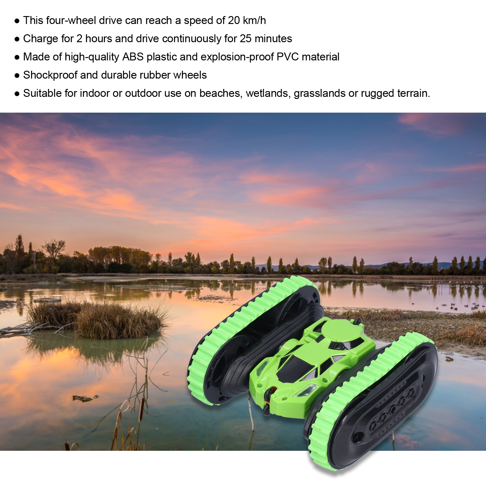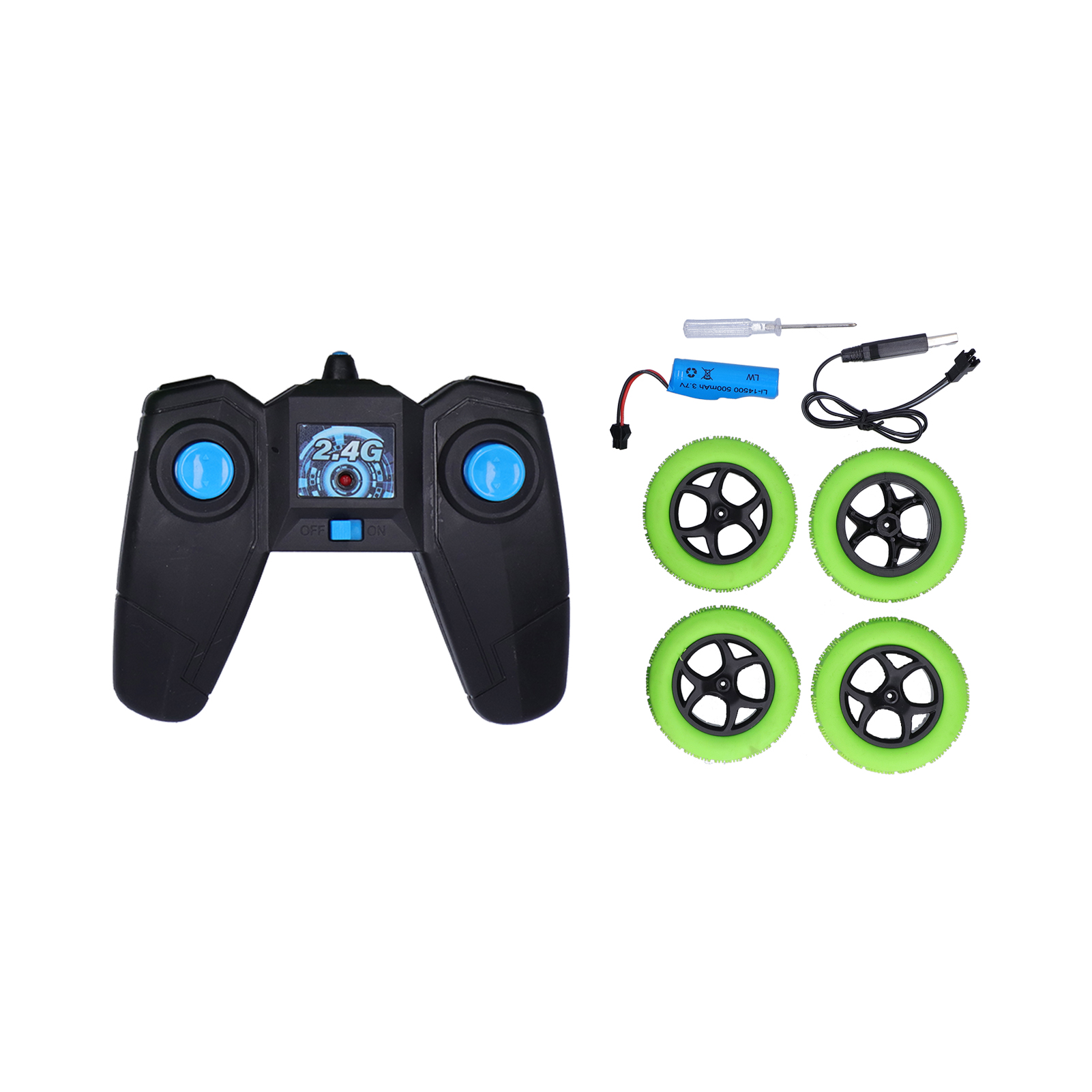 1、With 2.4GHZ transmitter, there is no need to worry about any radio interference. It allows other high‑speed vehicles, even other models of the same RC car, to race together at the same time. 2、The car can roll over and flip stunts at 360°, move forward and backward, and turn left and right. 3、High‑grade rubber tires make the car easy to control for children. In addition, equipped with two powerful motors, this four‑wheel drive can reach a speed of 20 km/h. 4、Provide 3.7V 500mAh rechargeable battery and USB cable. Charge for 2 hours and drive continuously for 25 minutes. 5、It is made of safe, high‑quality, non‑toxic ABS plastic and explosion‑proof PVC material. Equipped with four‑wheel drive, shockproof and durable rubber wheels. Suitable for indoor or outdoor use on beaches, wetlands, grasslands or rugged terrain.