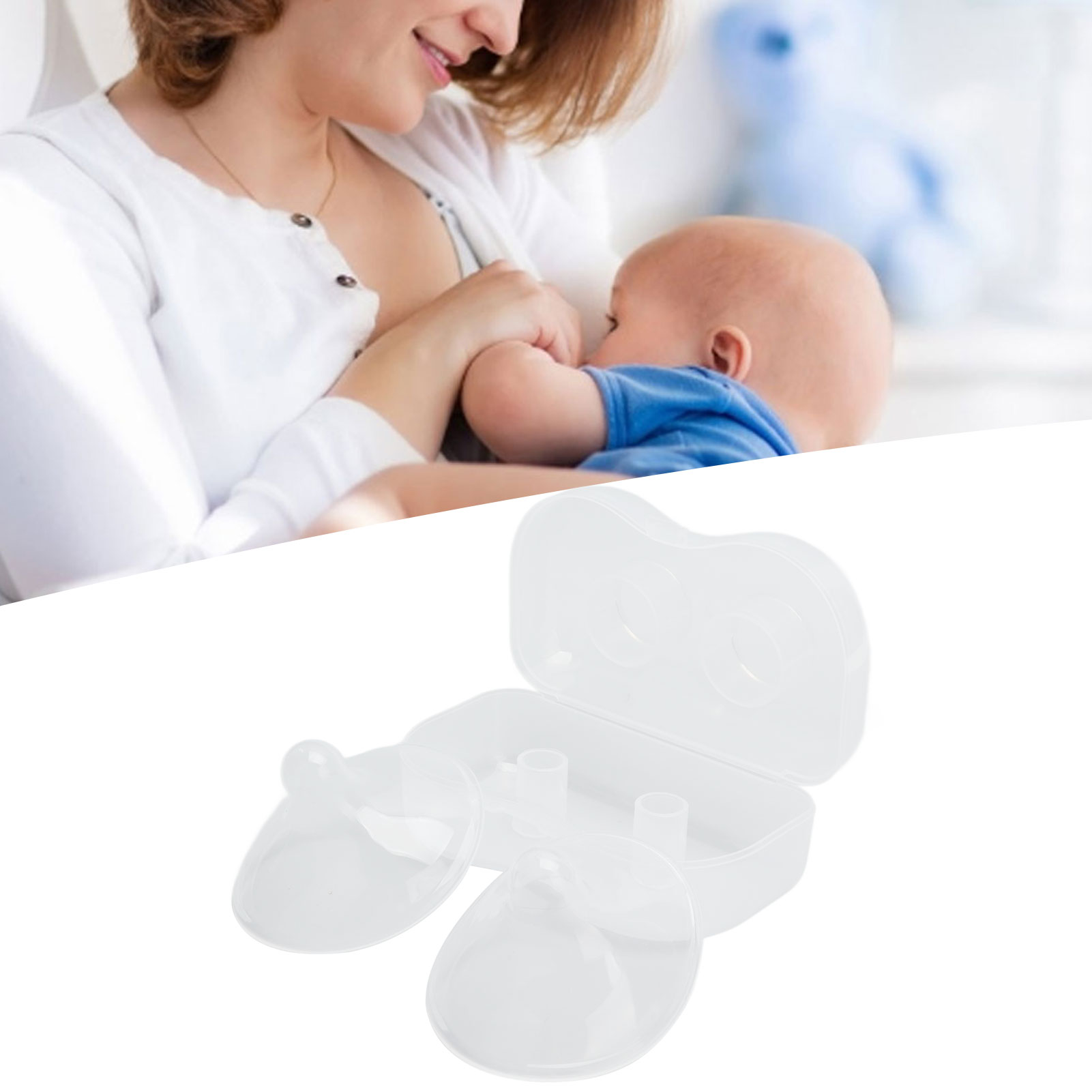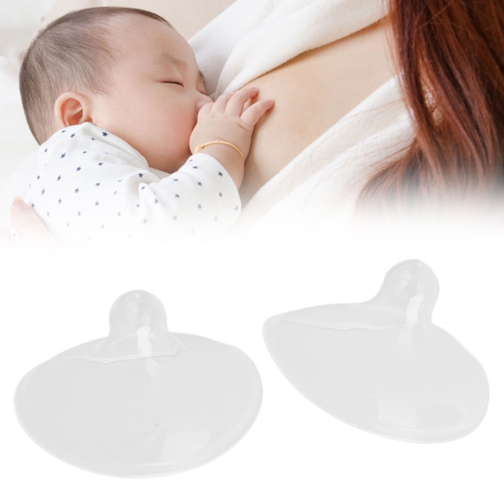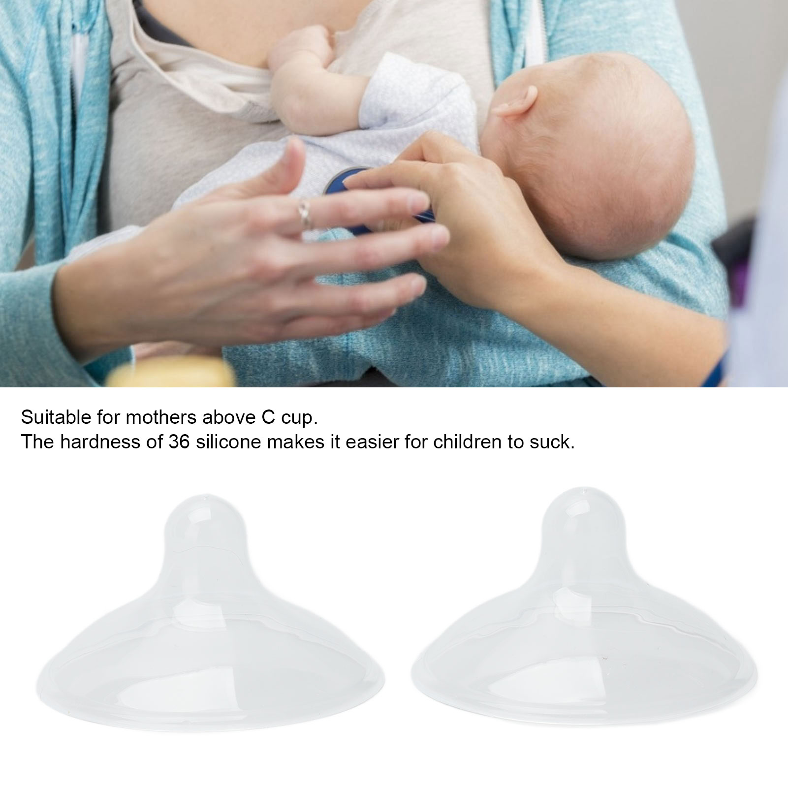1、SCOPE OF APPLICATION The nipple protector is suitable for mothers with a C cup or above. 2、SIMULATION DESIGN The nipple adopts simulation design and the hardness of 36 of silicone make it easier for children to suck. 3、FULL CIRCLE FIT For mothers with big breasts, it can be more absorbed on the skin and will not fall off easily. 4、EASY TO CLEAN It can be cleaned with high temperature, ultraviolet light, and avoid harm to the baby's body. 5、DURABLE AND SAFE Made of high quality silicone material, not easy to damage, long service life, and reusable.
