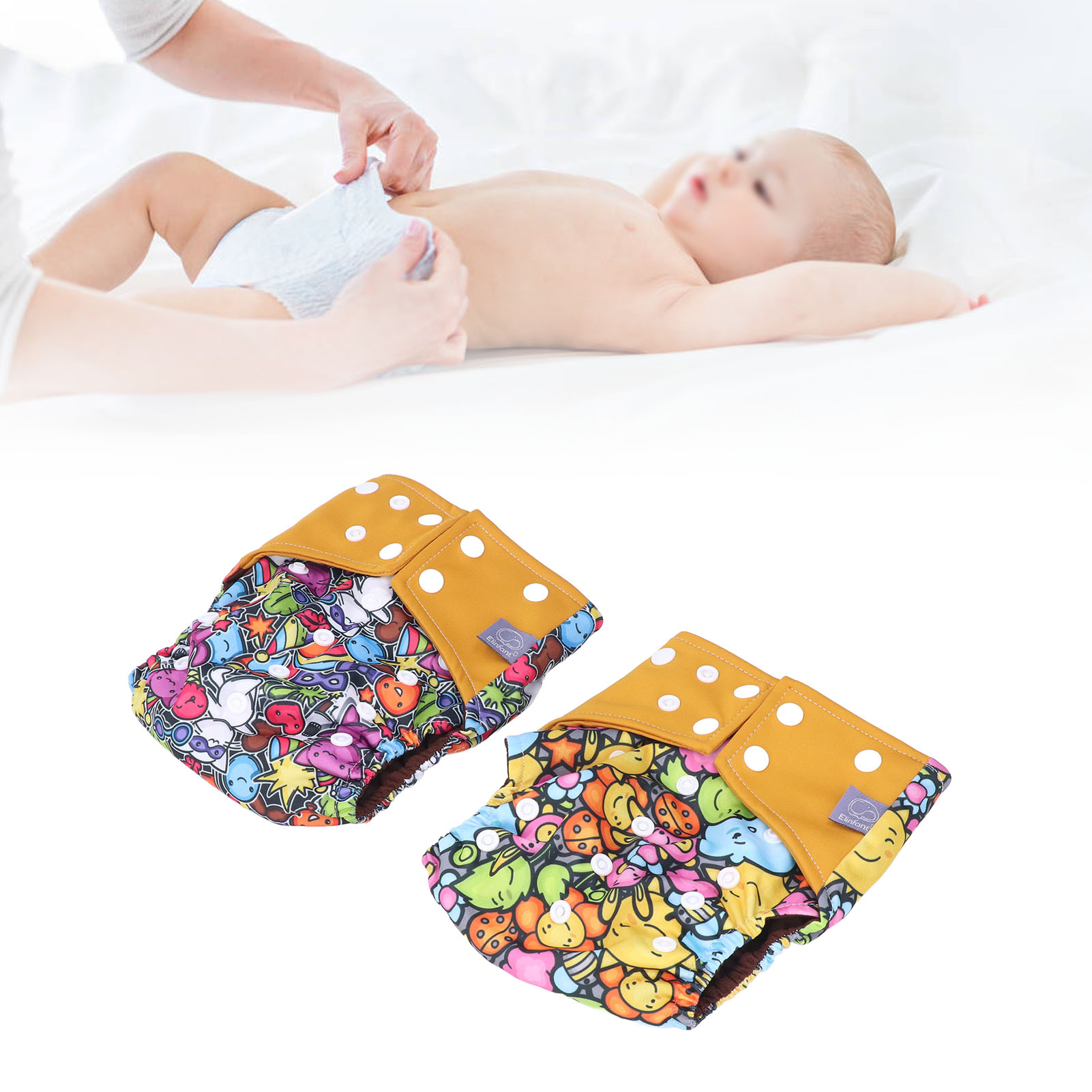 2pcs Cloth Diapers 6 Layer Structure Washable Reusable Elastic Waistband PUL Material Breathable Toddler Diapers