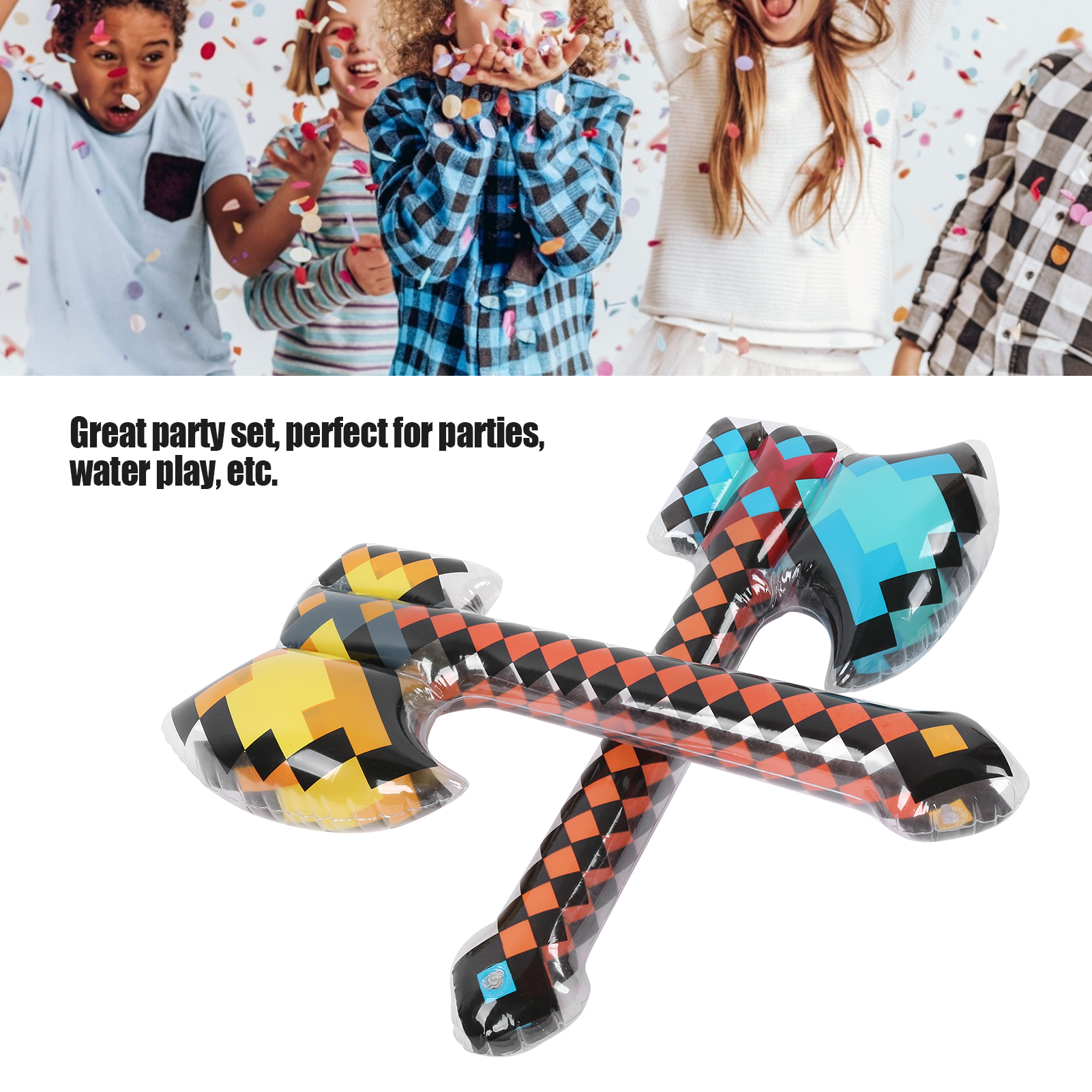 1、Can be fully inflated to provide excellent stiffness, including 2pcs inflatable hatchet toy of the package. 2、High quality PVC material, no peculiar smell, lightweight and durable, not easy to break or damage. 3、Great party set, perfect for parties, water play, etc. Suitable for children playing at summer swimming pool. 4、Non inflated size of about 73cm / 28.7in, bright color design makes it easy to attract children's attention. 5、Please note that when using the inflate pump, do not over inflate and do not place incisive objects in the inflatable hatchet toy.