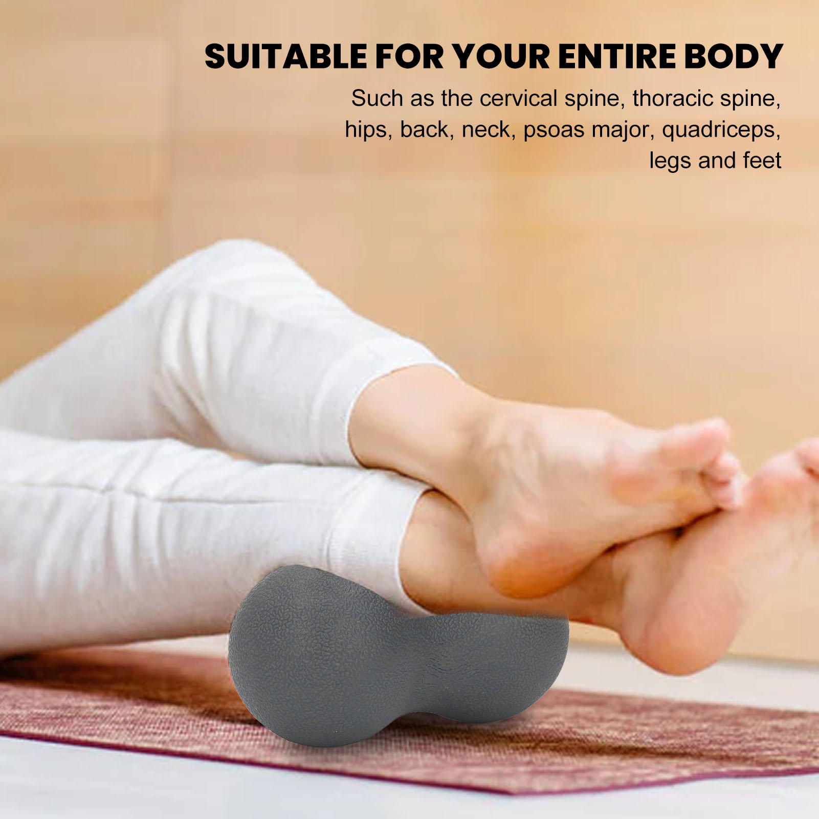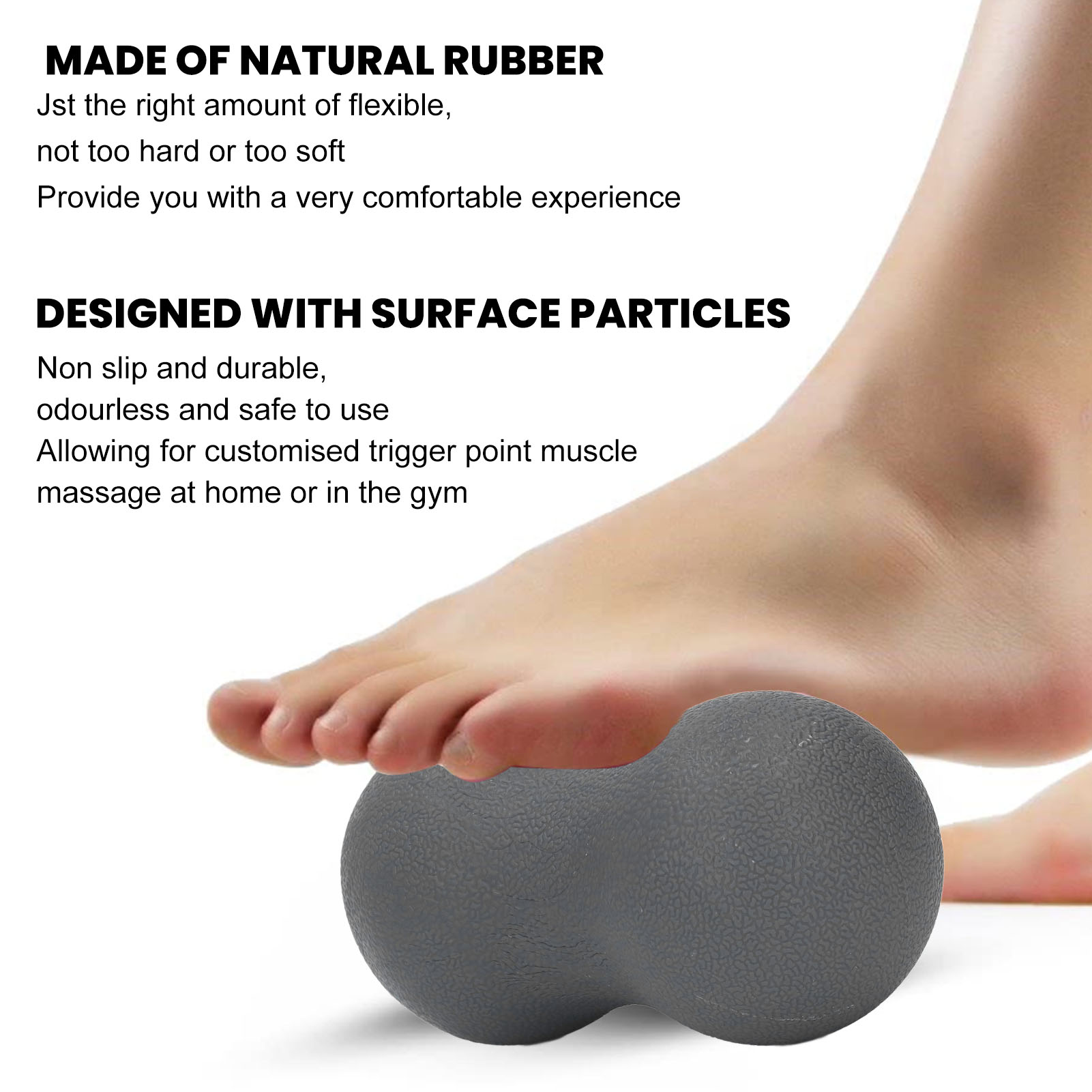 1、MUSCLE RELAXATION: Peanut massage ball improves joint mobility and myofascial mobility, relaxes muscles after an over exercise, is lightweight and easy to carry. 2、RUBBER: Double lacrosse mobility ball is made of natural rubber and is just the right amount of flexible, not too hard or too soft, to provide you with a very comfortable experience. 3、AREAS OF APPLICATION: Peanut massage ball roller is suitable for your entire body, such as the cervical spine, thoracic spine, hips, back, neck, psoas major, quadriceps, legs and feet. 4、SURFACE PARTICLES: Double lacrosse massage ball is designed with surface particles that are non slip and durable, odourless and safe to use, allowing for customised trigger point muscle massage at home or in the gym. 5、WHERE TO USE: You can use the peanut double lacrosse massage roller ball at home in the gym or in the office, for example sitting on a chair, lying on a bed, on the floor or on a yoga mat.