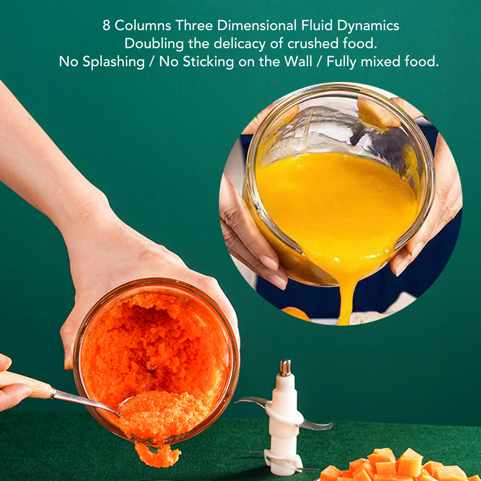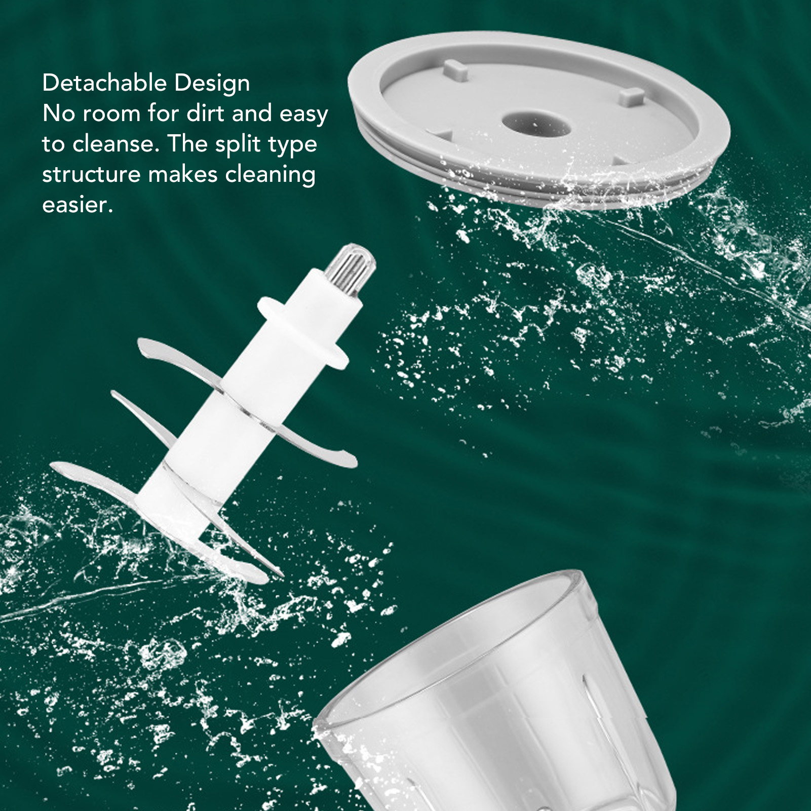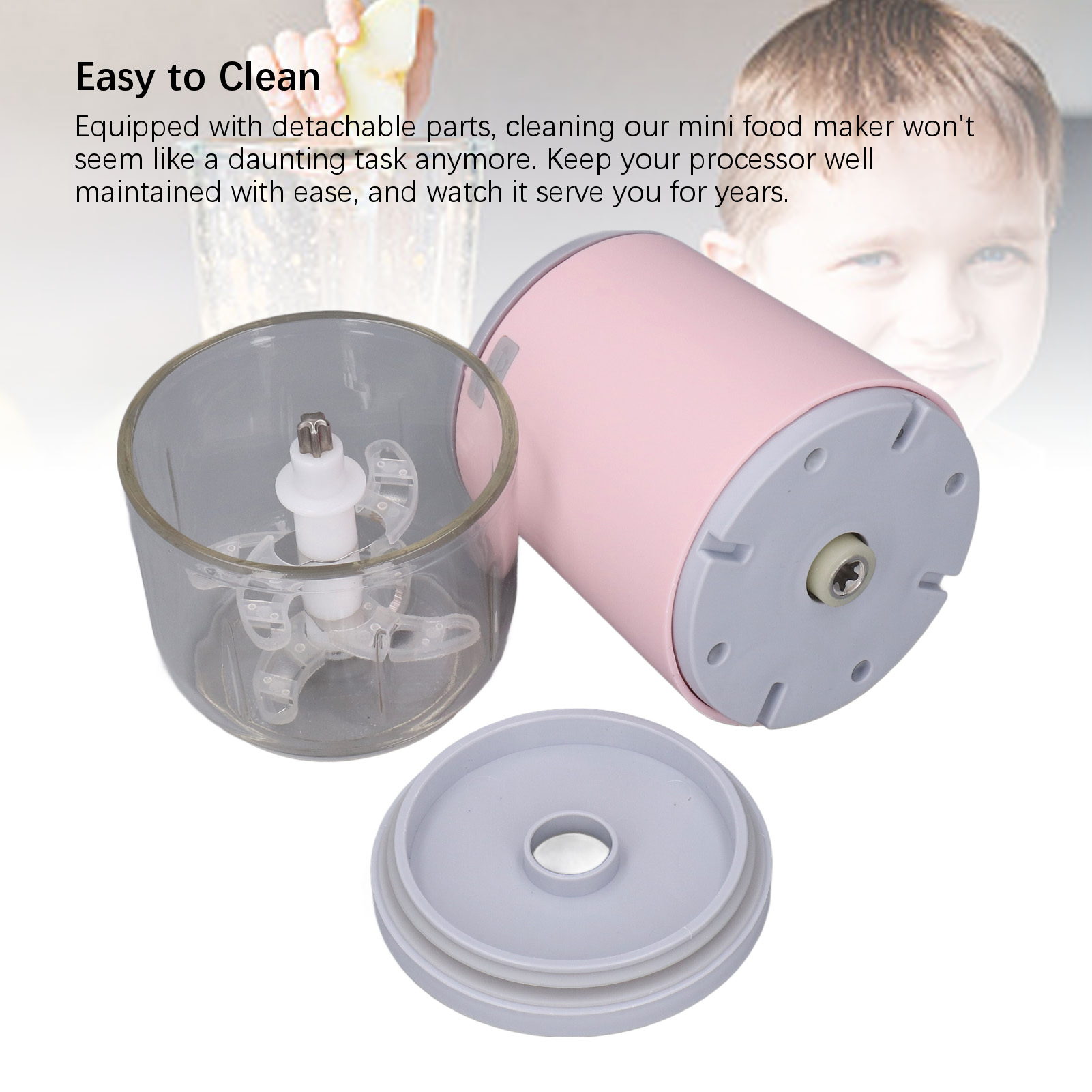 1、Multifunctional Design: The small food chopper caters to every need in your kitchen. Whether it's prepping baby food, grinding meat at home, or chopping fruits and veggies, this all in one machine has you covered. 2、Electric and Cordless: Welcome to the effortless cooking experience! The mini food processor operates electrically and comes in a cordless design, providing you with the convenience of quickly grinding your ingredients wherever you are. 3、Compact and Portable: Size matters, mainly when it helps you save on kitchen space! With a compact design, you're also able to bring this baby food processor on your travels, promising you healthy homemade meals anywhere you go. 4、Safe and Reliable: Your health is our priority. That is why our portable food grinder is constructed from food grade ABS material. Plus, the reliability assurance brings peace of mind when you're preparing meals for your loved ones. 5、Easy to Clean: Equipped with detachable parts, cleaning our mini food maker won't seem like a daunting task anymore. Keep your processor well maintained with ease, and watch it serve you for years.