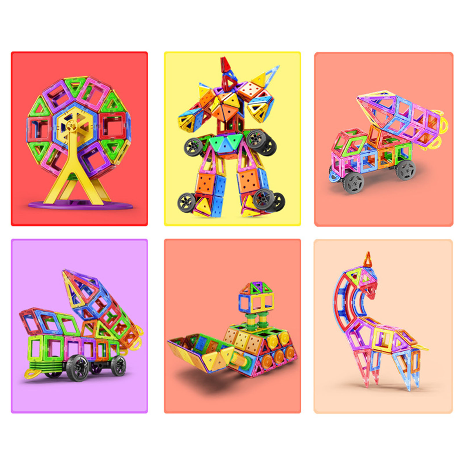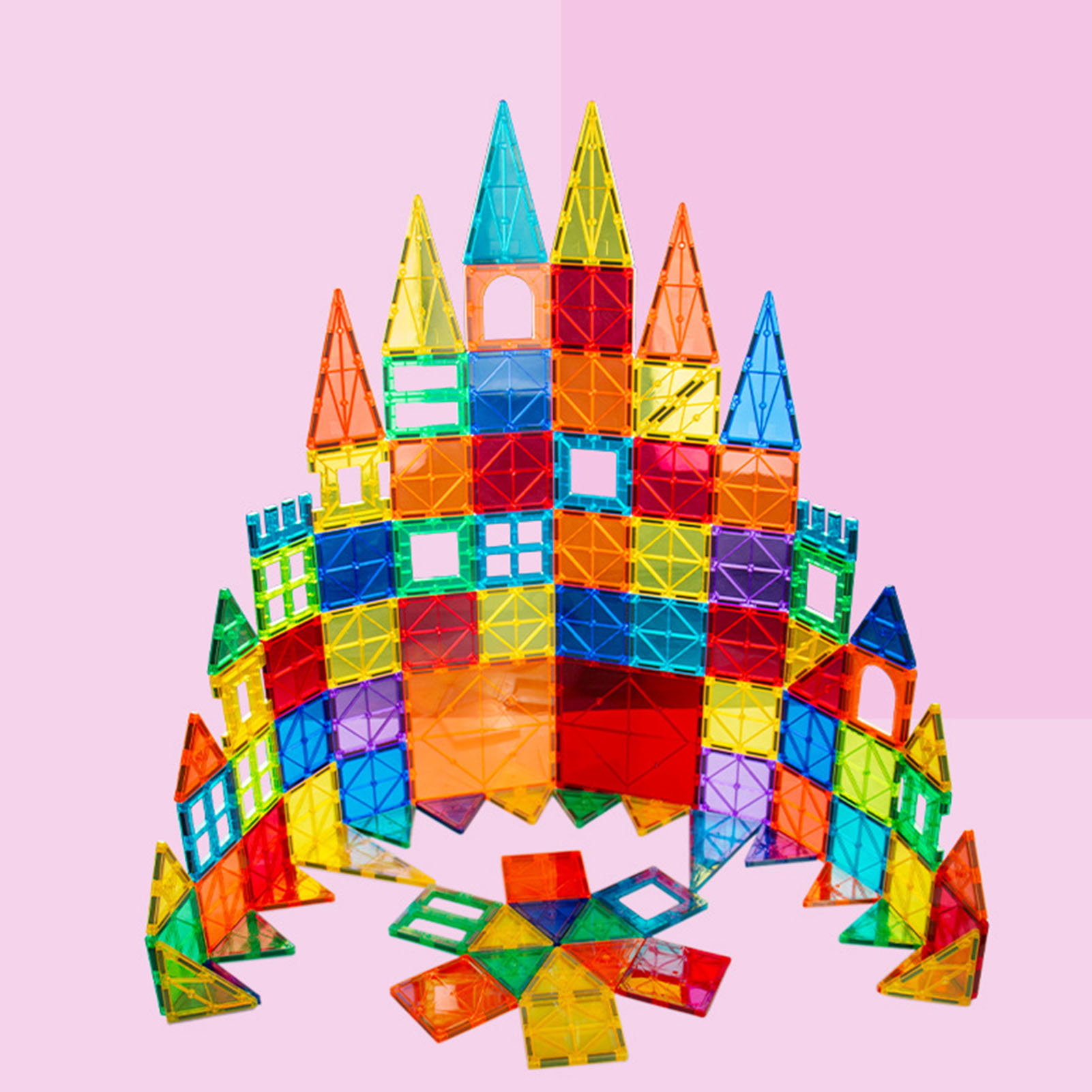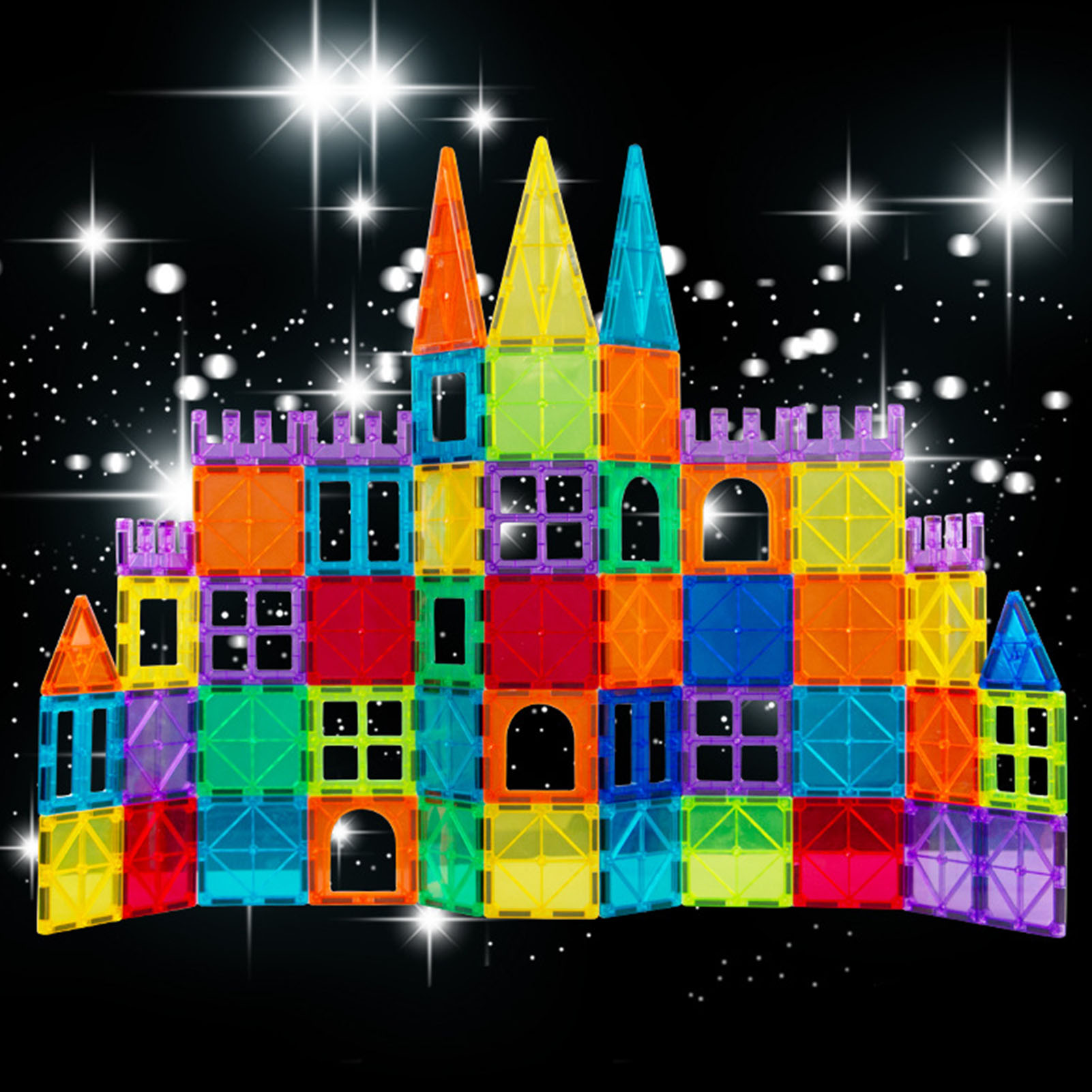 1、Magnetic Design: Each block part is magnetic and thanks to its adhesion to the magnet, you will easily enjoy multiple combinations and endless possibilities when playing the game. 2、Creativity Inspired: The building blocks will stimulate your imagination and you will learn through play, allowing you to create unique designs. 3、Bright Colors: These blocks are bright and colorful, beautiful and transparent, which can help relieve stress and anxiety, making them a fun toy that any child will enjoy! 4、Educational: These blocks can also improve focus, concentration, attention and create a sense of calm while promoting problem solving and thinking skills. 5、Different Shapes: Building blocks toy have different shapes to help children's development in science, technology, engineering, art and math, and to stimulate children's manipulative skills.