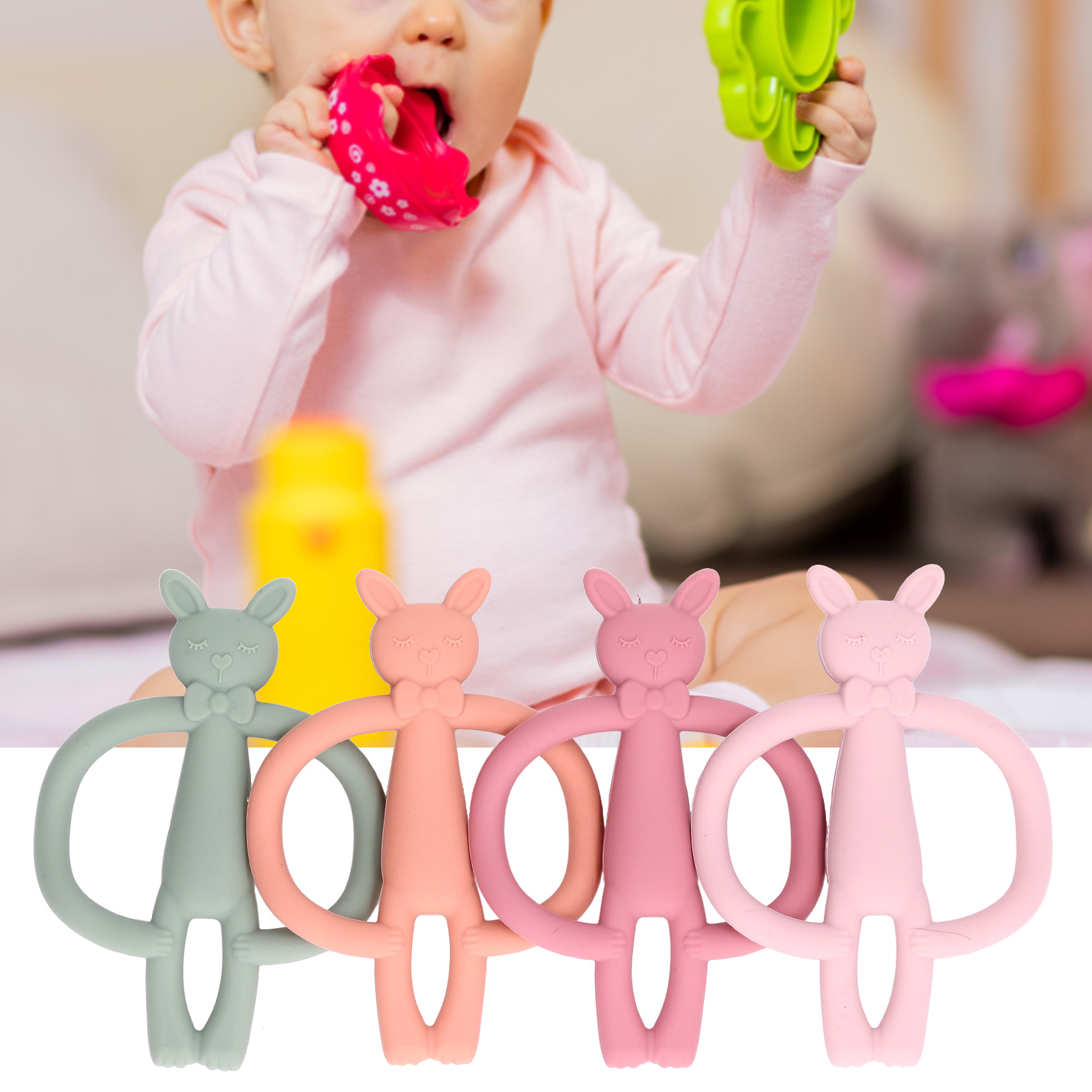 4 x Silicone Baby Teether Toy
