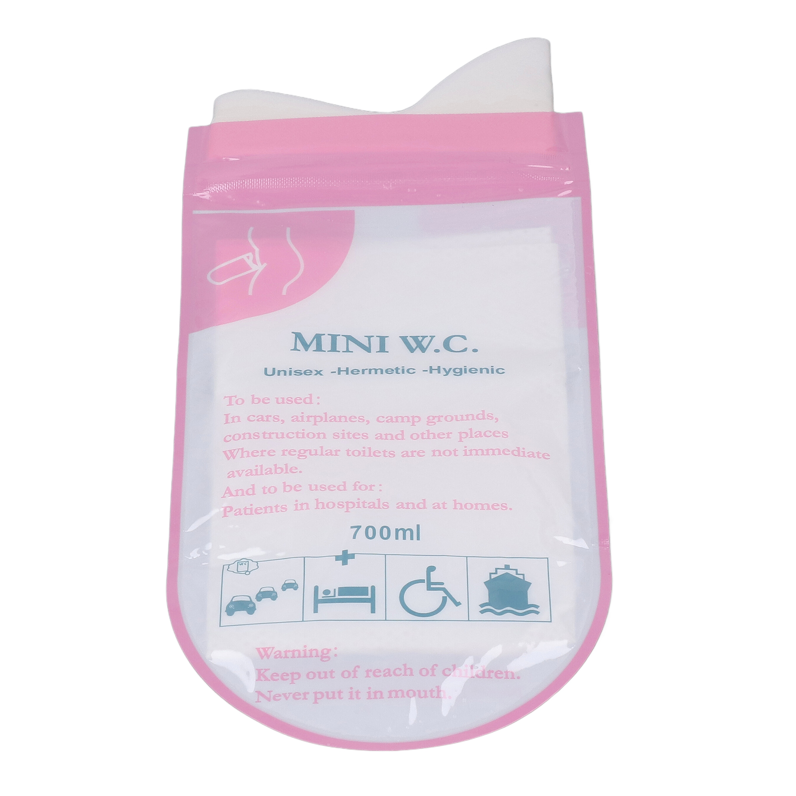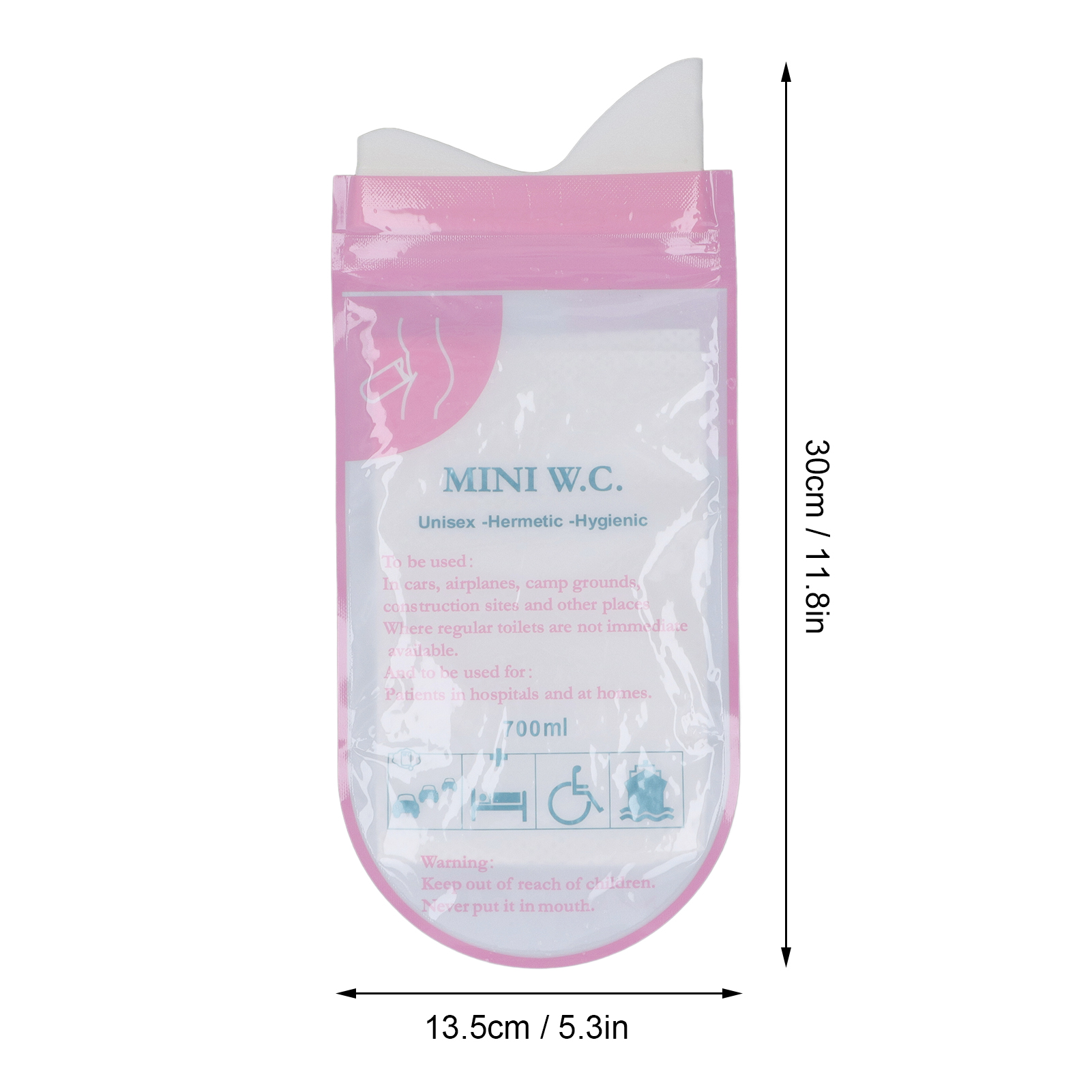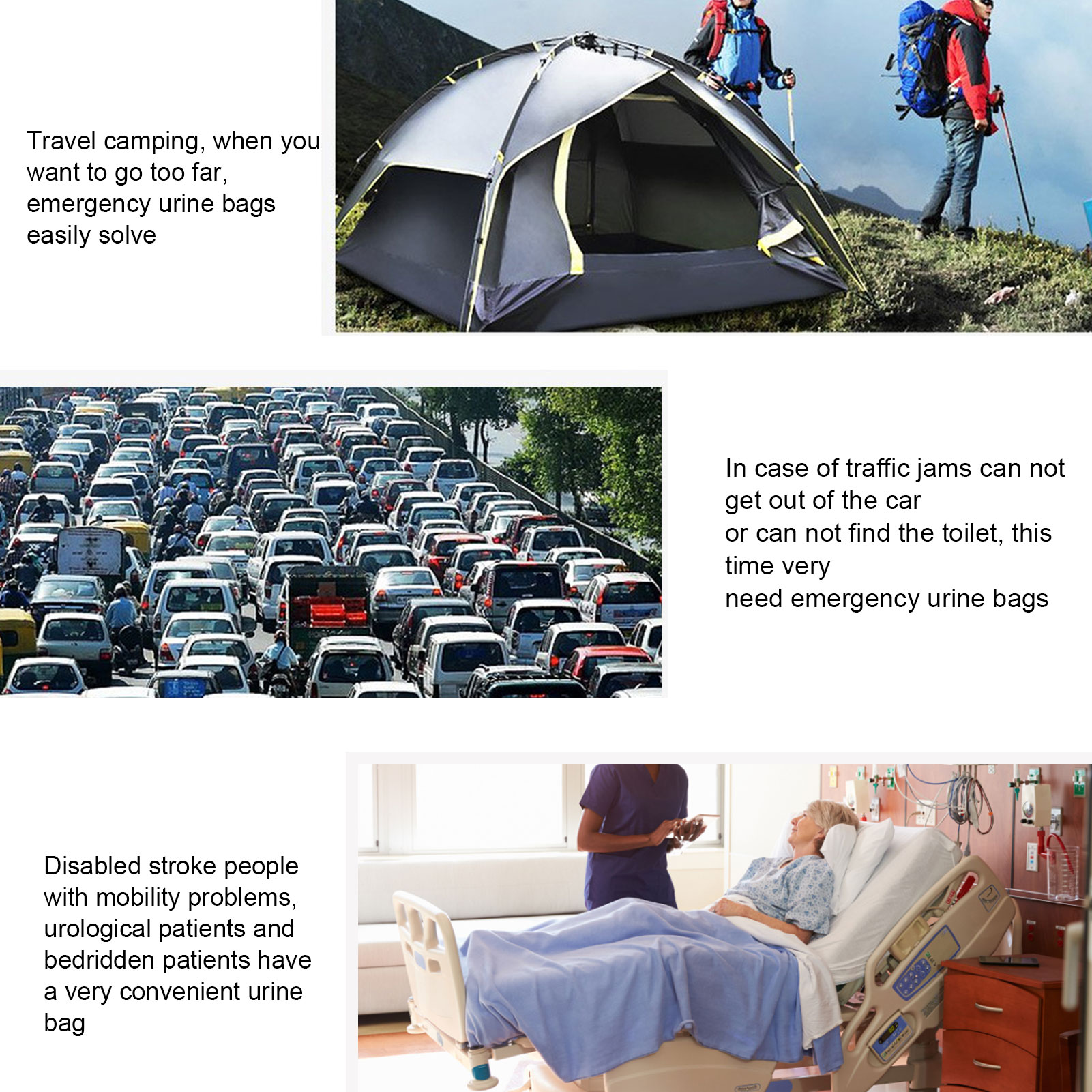 1、Quick Absorption: There is a super absorbent curing agent, which can quickly absorb urine and turn it into a jelly like substance to avoid urine spillage and no peculiar smell. 2、Self Sealing Design: Emergency urine pee bag is convenient to pinch the self sealing seal after using, seal it up and prevent the odor from being emitted while cleaning. 3、Compact and Portable: Can be put in the car, bag and cart, making it more convenient to go out and travel. Private toilet to avoid the embarrassment of finding a toilet. 4、Practical and Clean: A portable emergency mini toilet, which can be used by people with inconvenience caused by injuries, etc. Convenient to carry, double packed, healthy and hygienic. 5、Wide Usages: Long term travel, long distance driving, car sickness, vomiting and diarrhea, odor absorption, earthquake disaster, post disaster defecation, avoid secondary infection of feces, safe and hygienic.