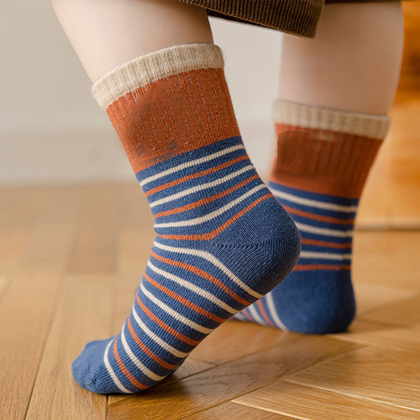 1、Mid Calf Sock Design: Mid calf length design is perfect for autumn and winter, which is offering protection and warmth to your child legs and foot. 2、Colorful Set: Socks set includes 5 pairs socks with a range of different stripe designs, which is allowing your child to express their personality. 3、Stripe Design: Mid calf socks is featuring adorable stripe patterns, soft breathable cartoon socks add fun and charm to your child outfit. 4、Wide Application: Designed for sports and outdoor activities, soft children socks provide ample support and comfort, making them suitable for various physical activities. 5、Combed Cotton Material: Children socks are constructed with comfortable and soft combed cotton, can provide a warm and cozy wearing experience for your children.