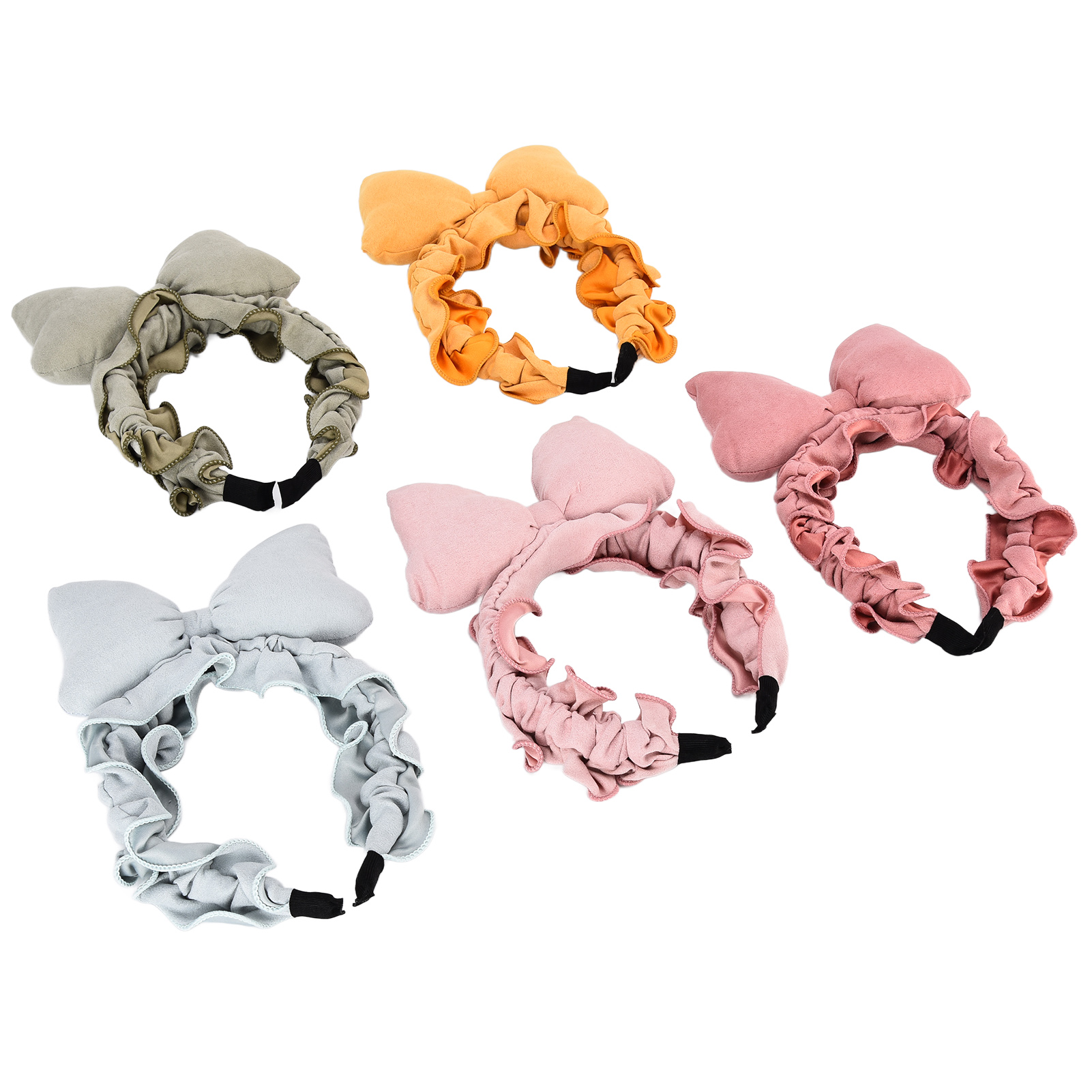 5pcs Big Bowknot Hair Band Soft Cloth Cute Headbands for Women Washing Face Make Up Cosplay