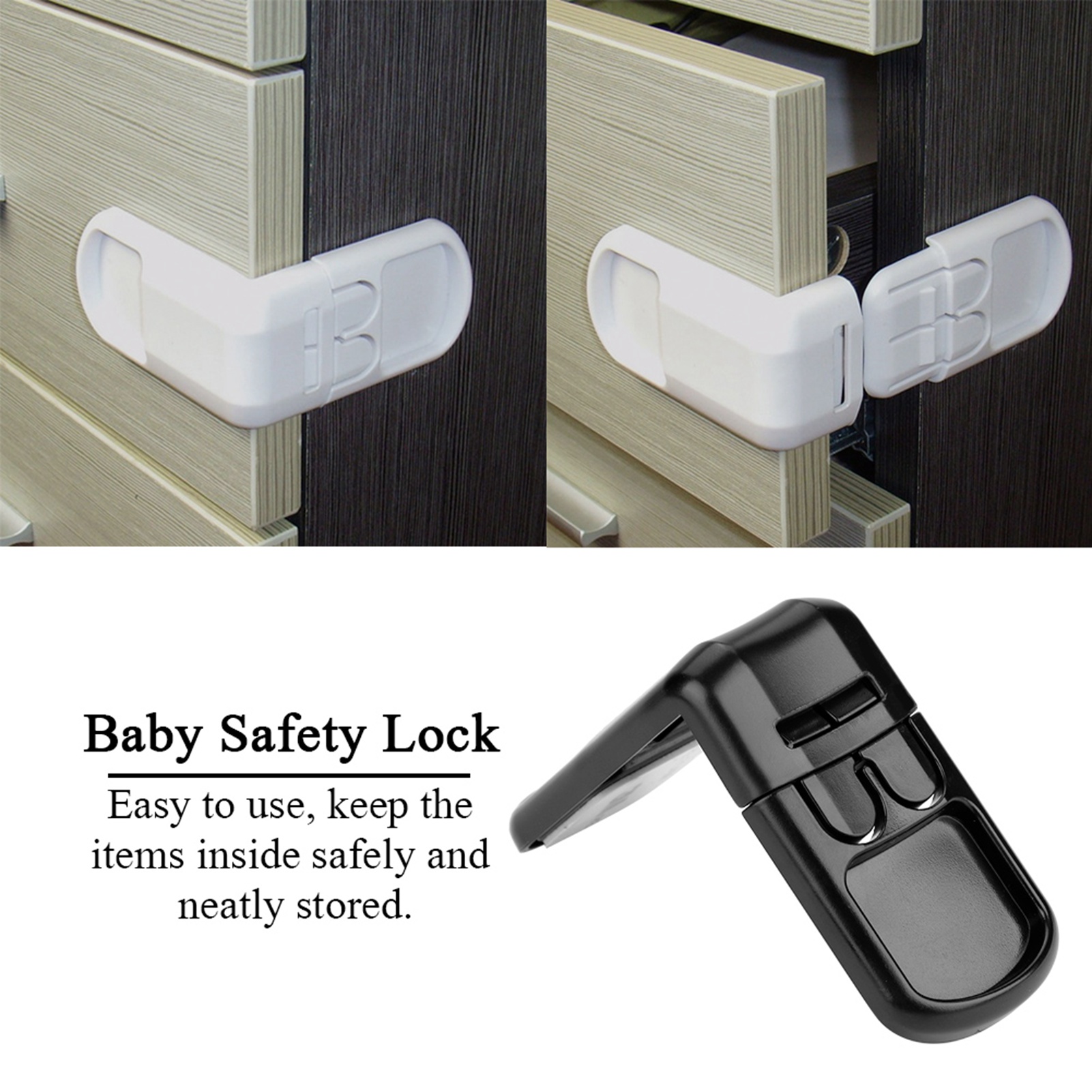 1、Made from high quality ABS material, eco-friendly, sturdy and durable 2、Right angle type baby safety cabinet lock, that is used for locking the drawer, door, cabinet, cupboard, ect 3、Prevent the baby from accidental damages caused by opening home or kitchen appliances 4、With adhesive tapes on its back, the safety lock can be easily installed 5、Easy to use, keep the items inside safely and neatly stored