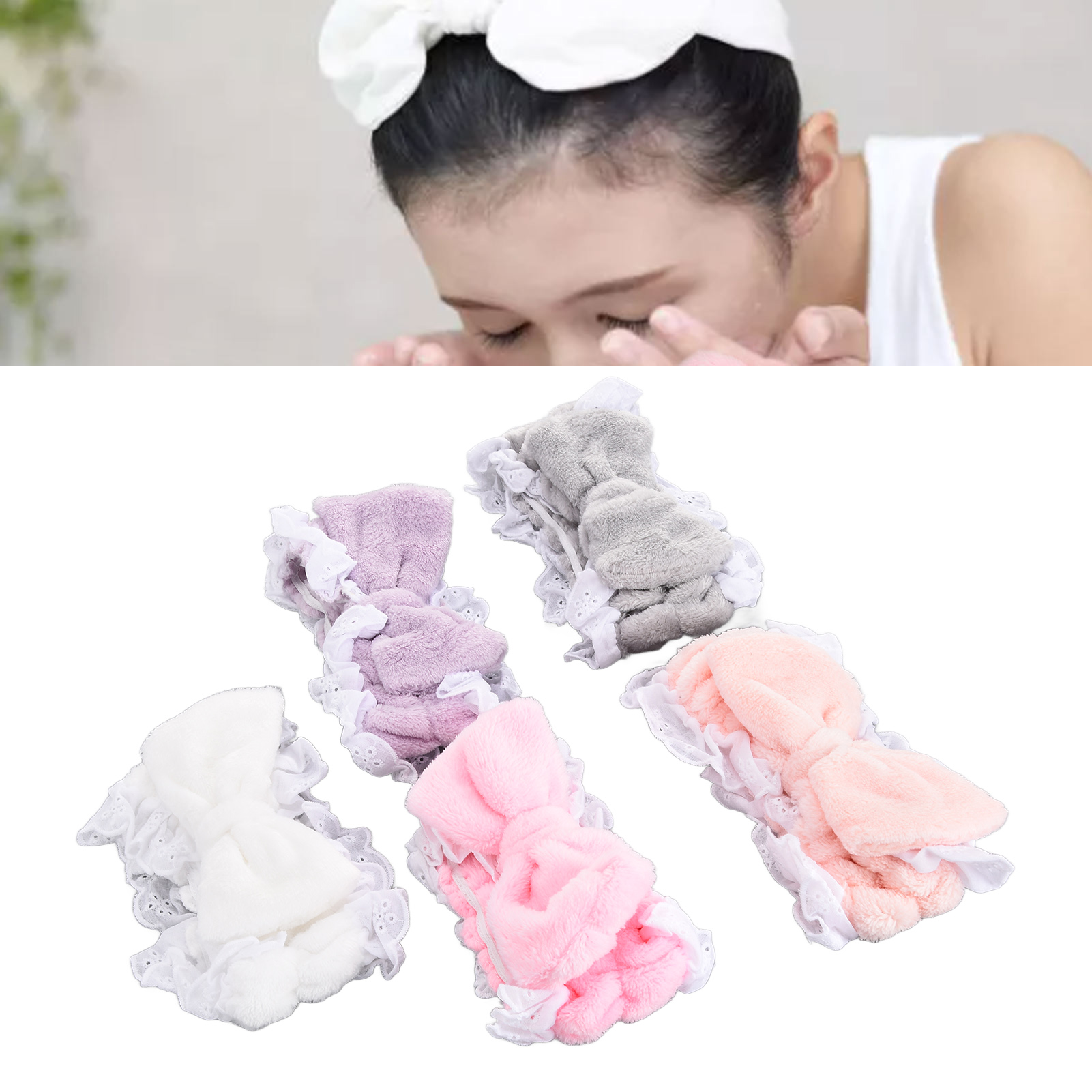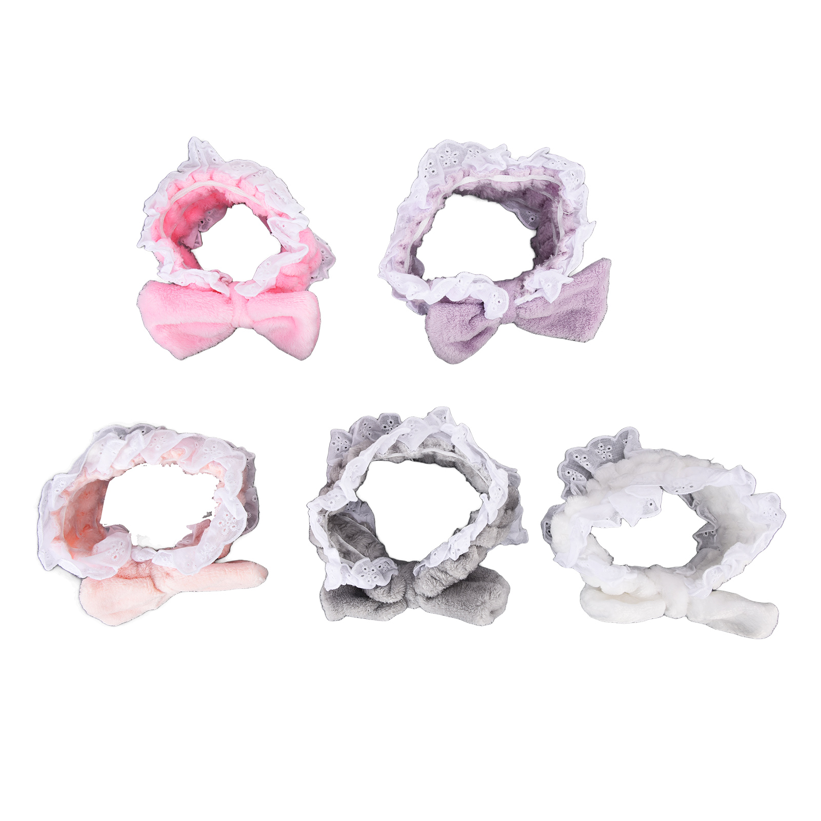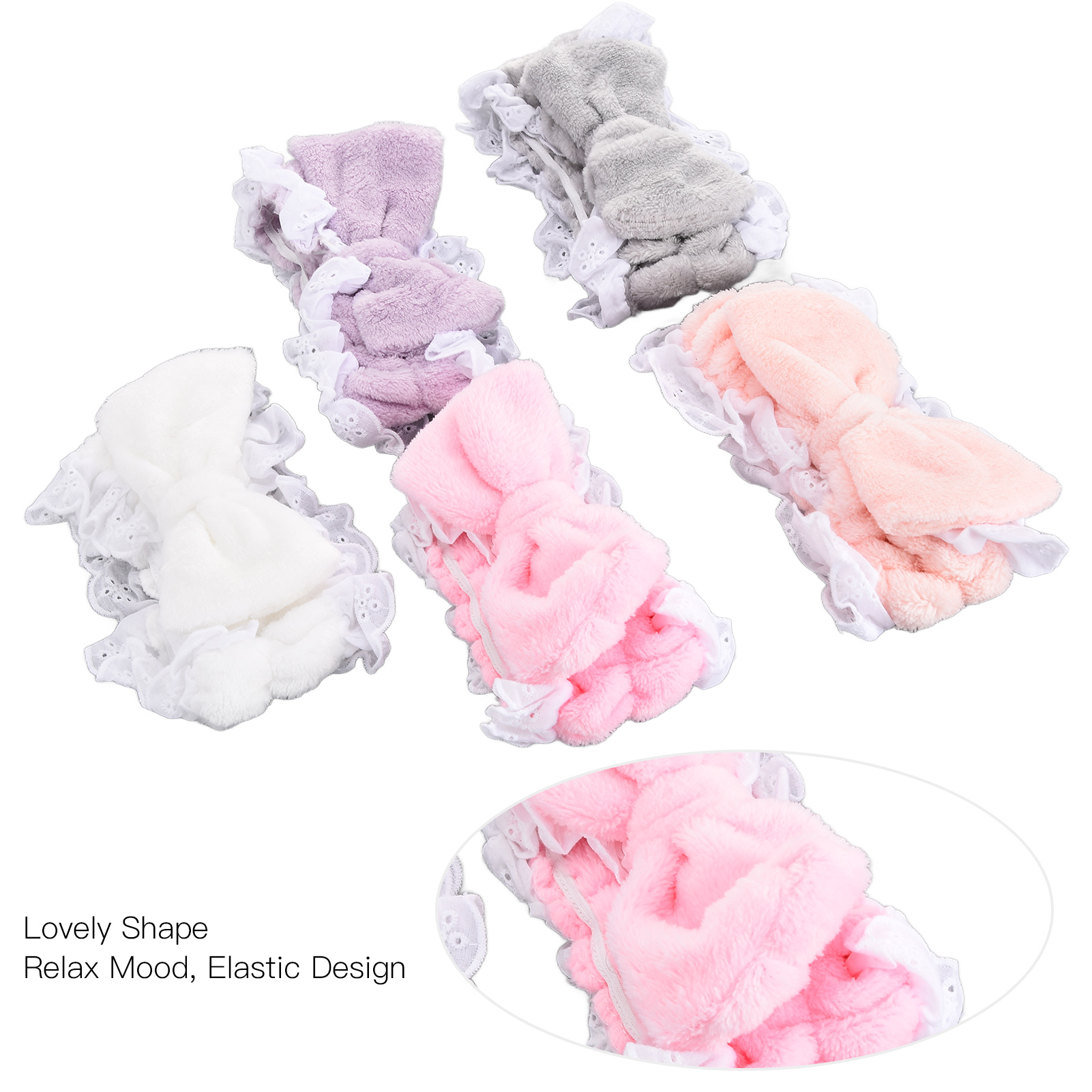 5 x Makeup Headbands(White, gray, purple, pink, light pink)