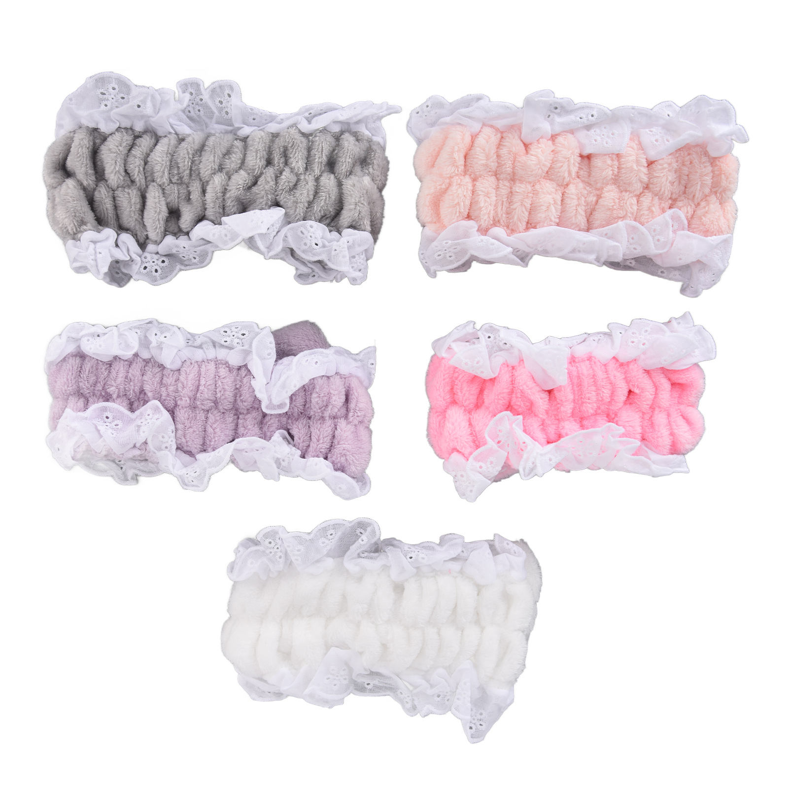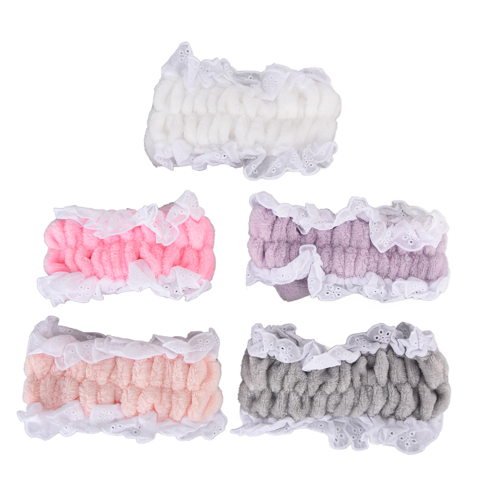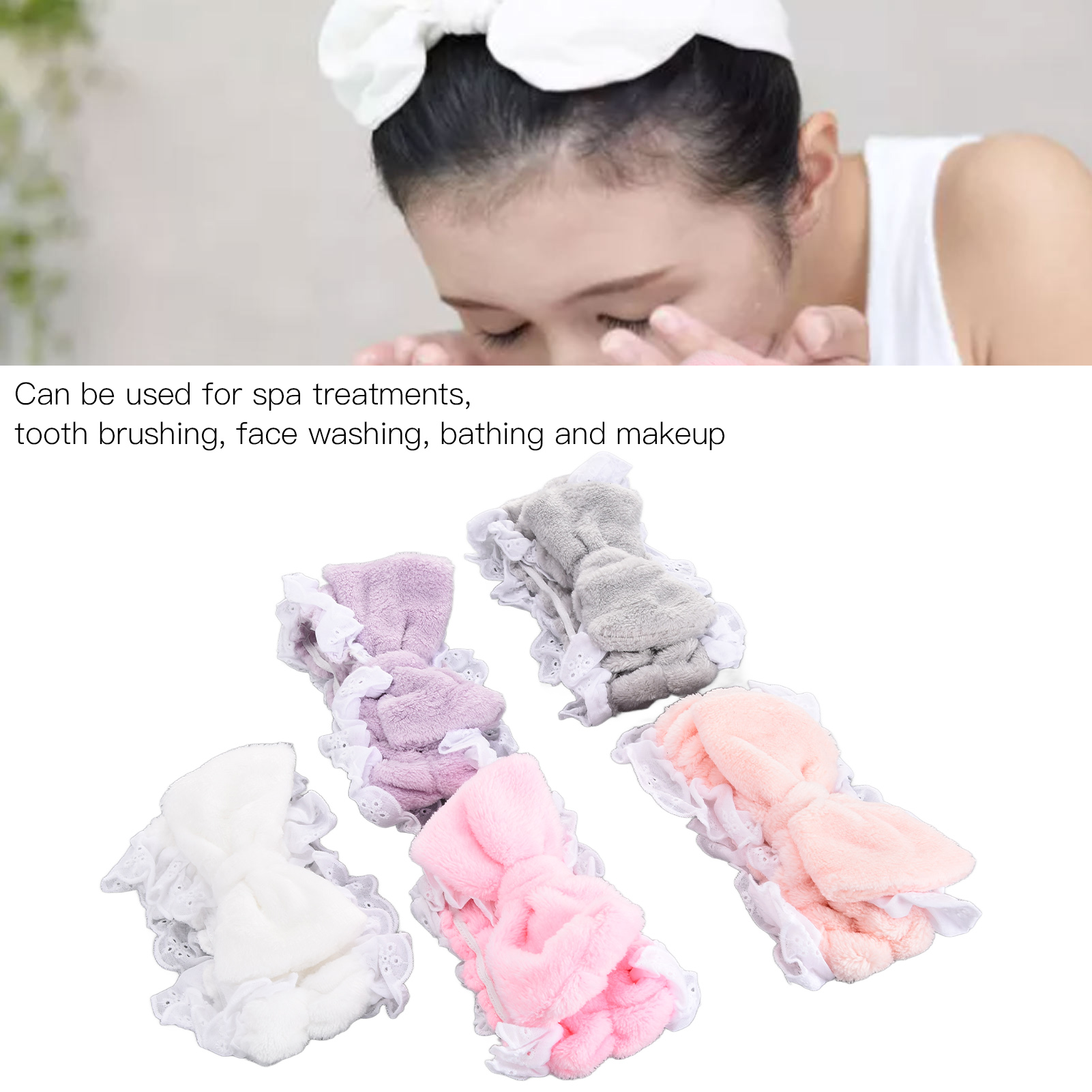 5 x Makeup Headbands(White, gray, purple, pink, light pink)