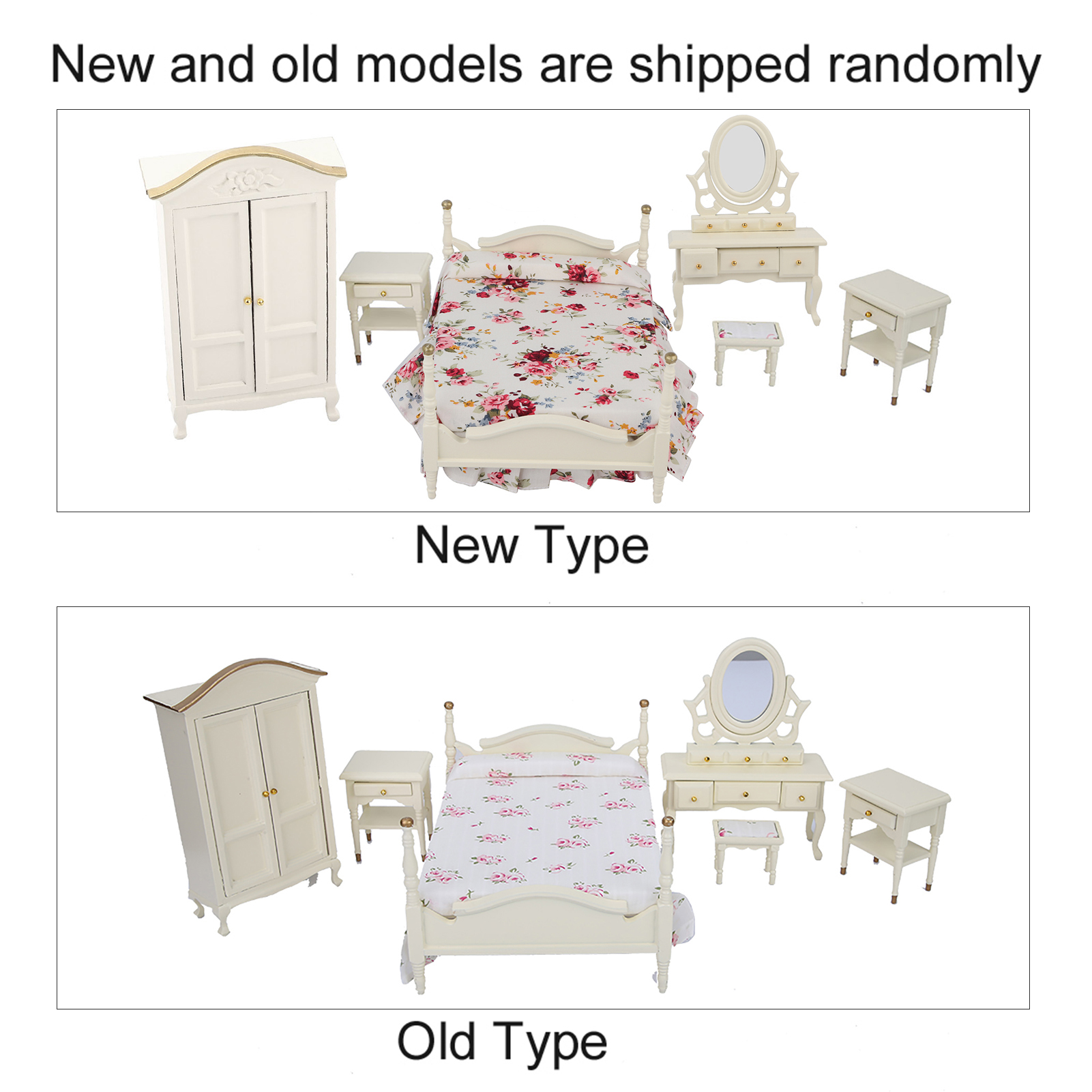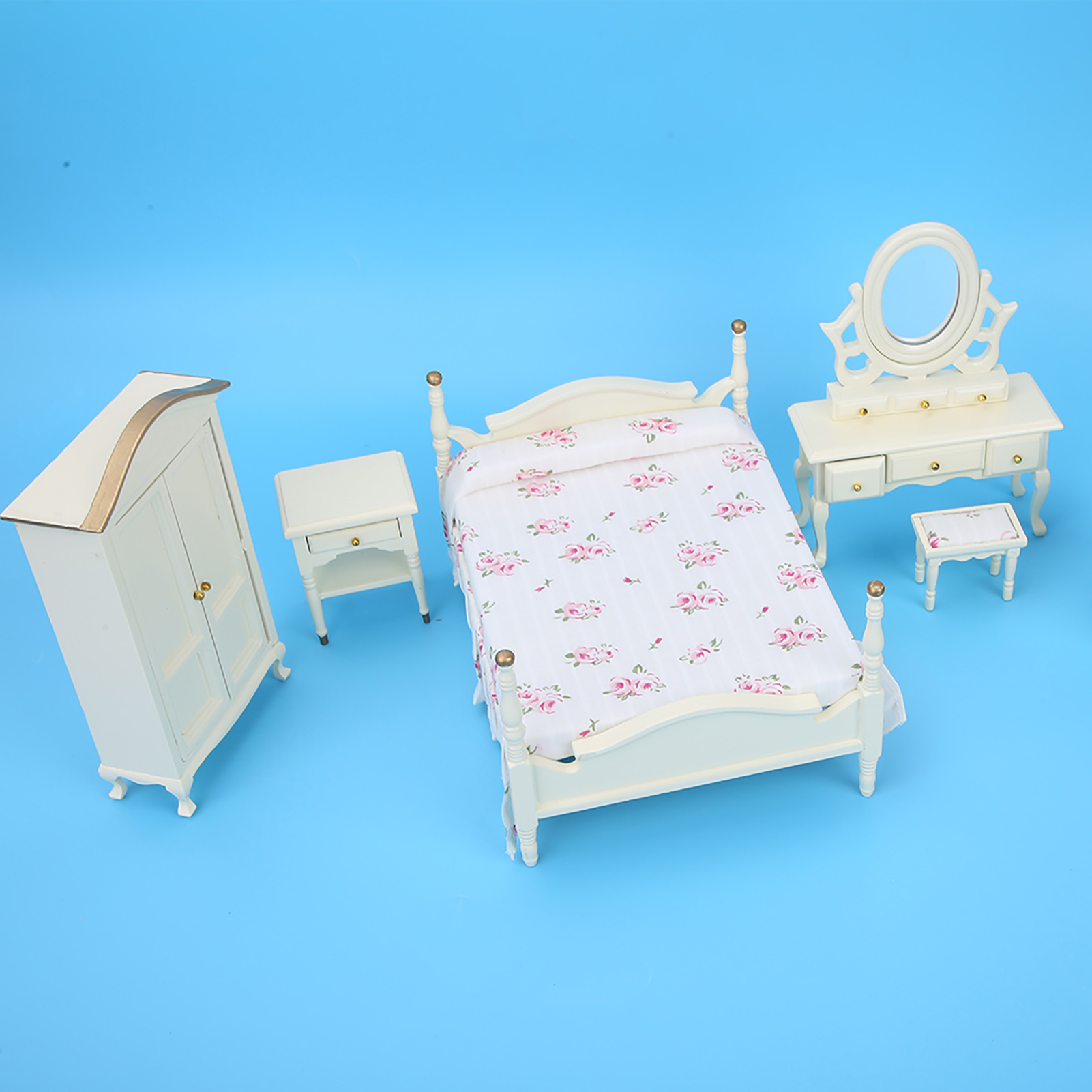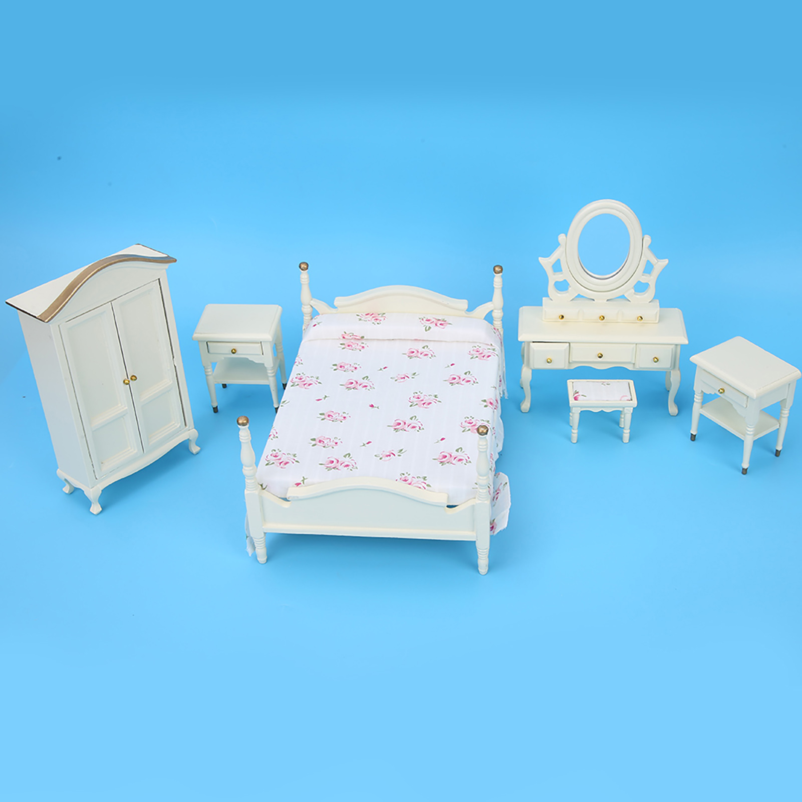 6pcs / set Wooden Mini Bedroom Set Furniture Accessories for 1:12 Dollhouse