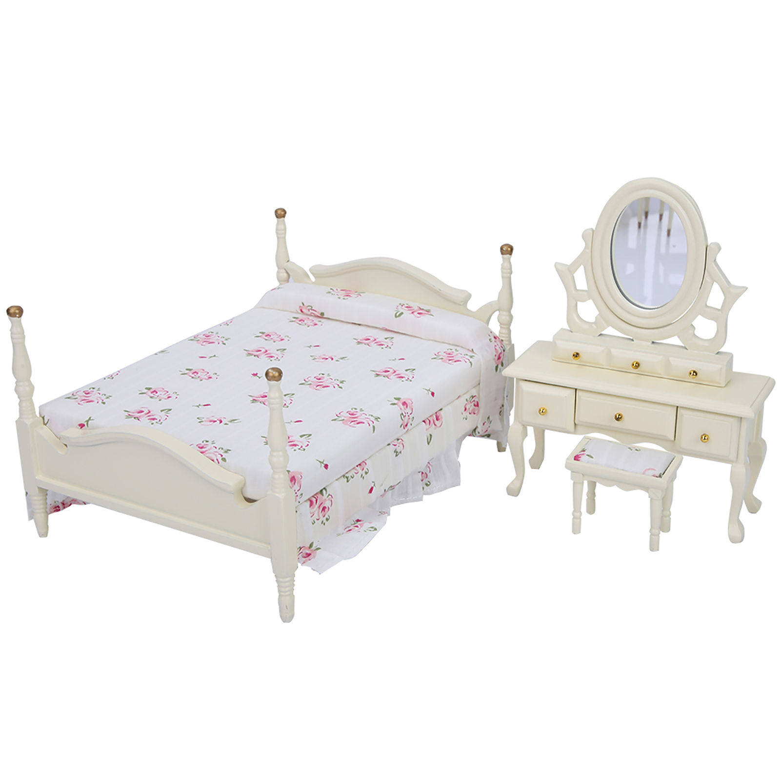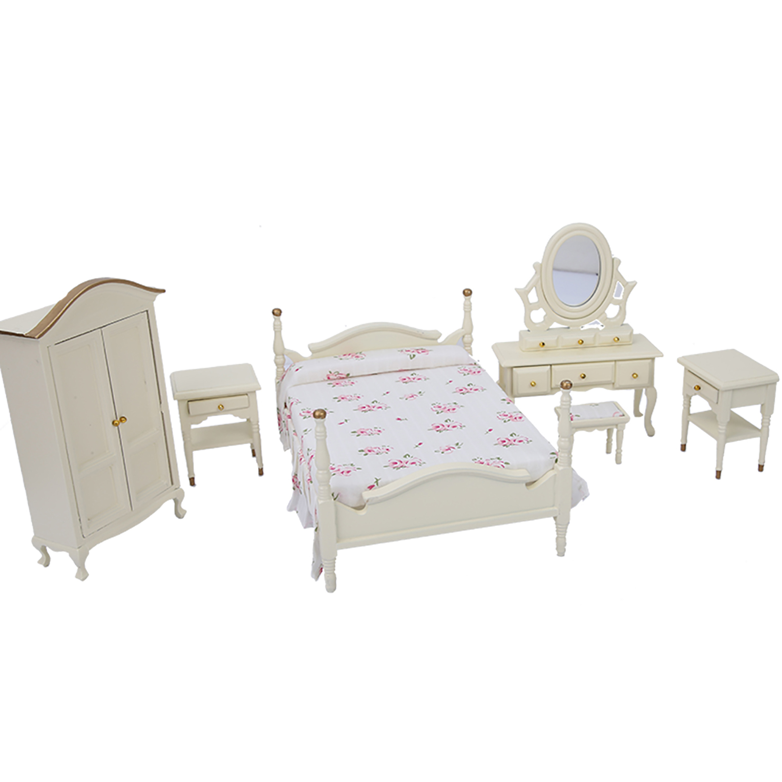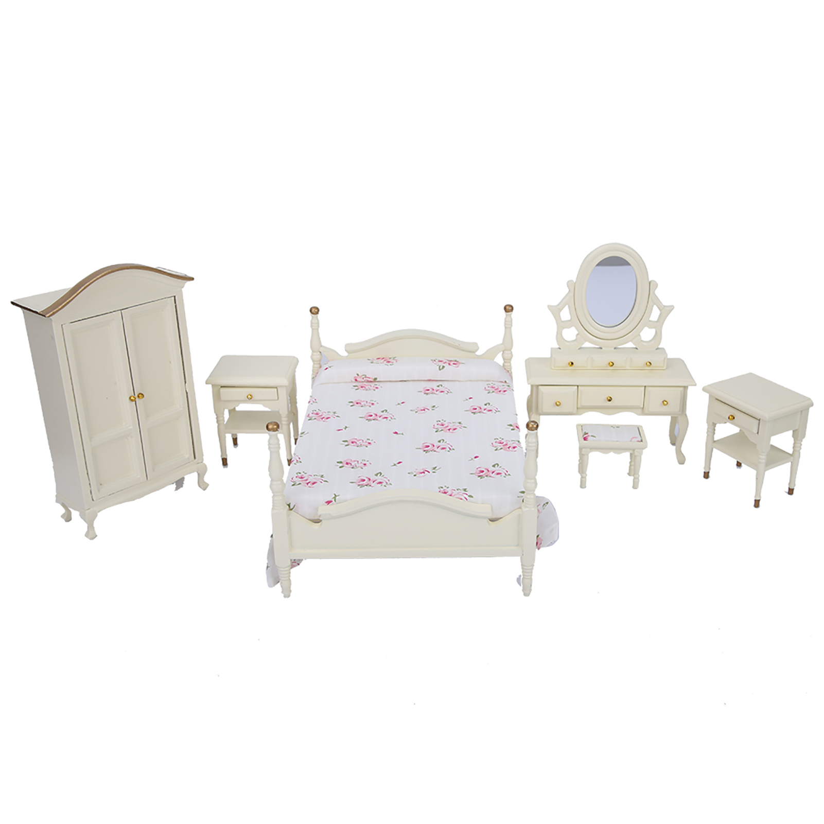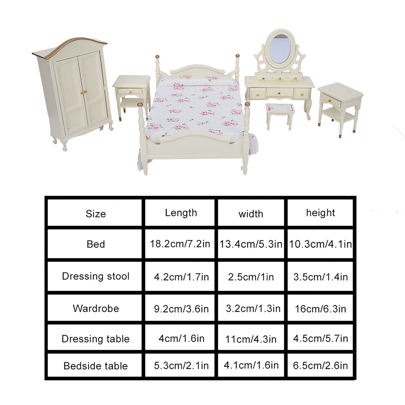 6pcs / set Wooden Mini Bedroom Set Furniture Accessories for 1:12 Dollhouse