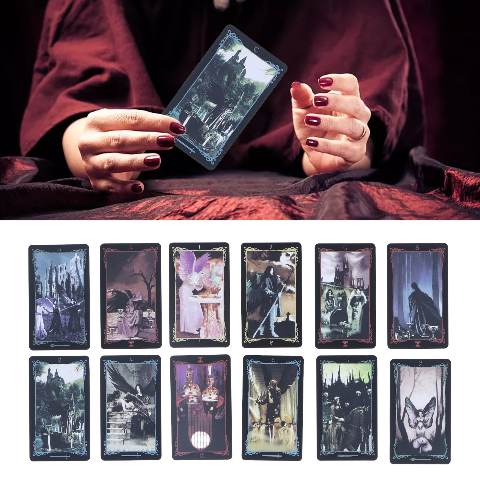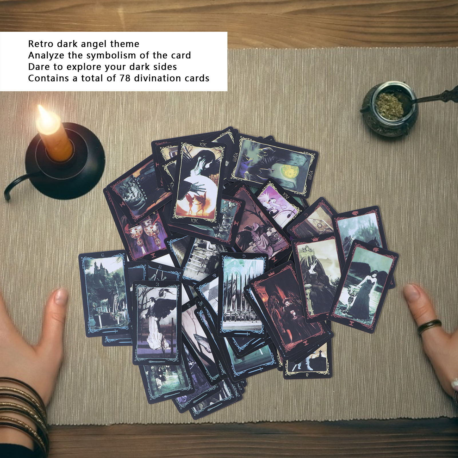 1、Dark Angel Theme: Dare to explore your dark sides. Travel to a secret hell where you will have a chance to communicate with the misunderstood outcast Dark Angel in heaven. 2、Future Telling: Can teach us a lot about our own shadow selves. Explore the unknown depths of your mind. 3、High Quality Materials: Made of high quality coated paper, which is safe and harmless and comfortable to hold. 4、Packing Quantity: A total of 78 divination cards are included to meet your entertainment needs, suitable for family parties and friends gatherings. 5、Easy to Use: Randomly select the cards you need and place them in the designated positions to analyze the symbolism of the cards.