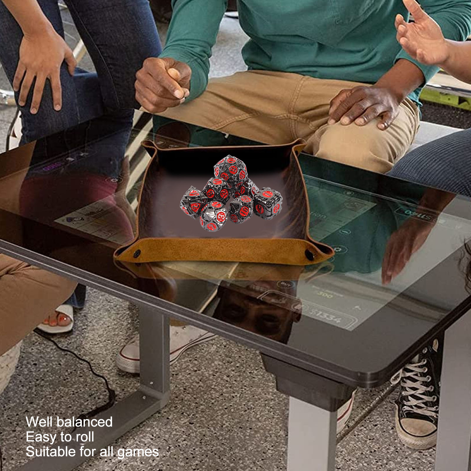 1、Good Balance: Solid dice adopts integrate molding process, which has good balance and is able to roll on desktop and tray, therefore you can play it with your family. 2、Big Numbers: The numbers on alloy dice set are big and easy to read, and you will have a more enjoyable game experience when you use it. 3、Good Feeling: Rolling dice toy is carefully made, and when it is used, you will feel certain weight, and it has larger size and more beautiful appearance. 4、Pleasant Voice: Polyhedral dices sets include many kinds of dice, such as D%, D20, D12, D10, D8, D6 and D4, you are able to choose you favorite to play. 5、Zinc Alloy: 7pcs rolling dices toy is made of zinc alloy, which is durable and has a long service life. Therefore you are able to use it for a long time.
