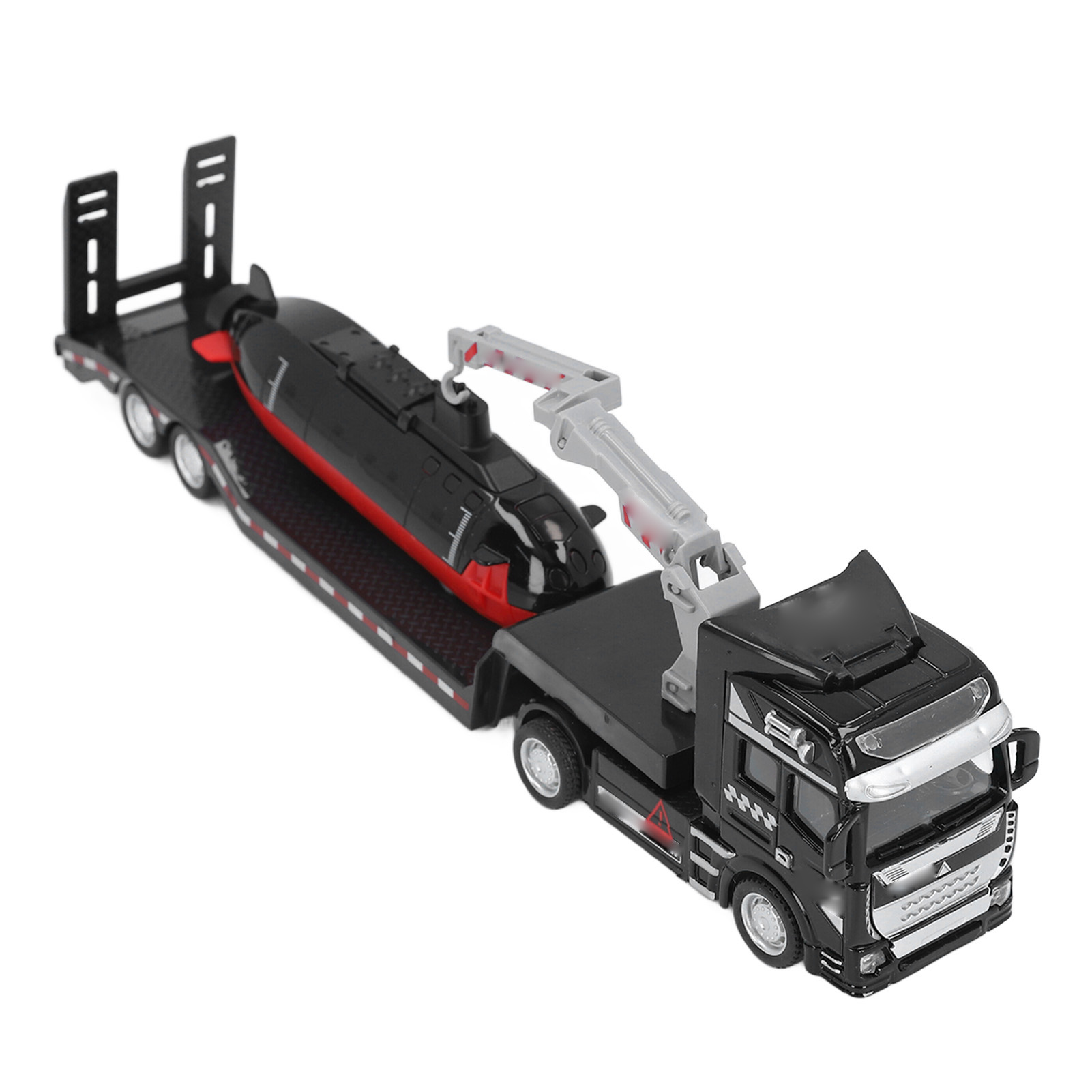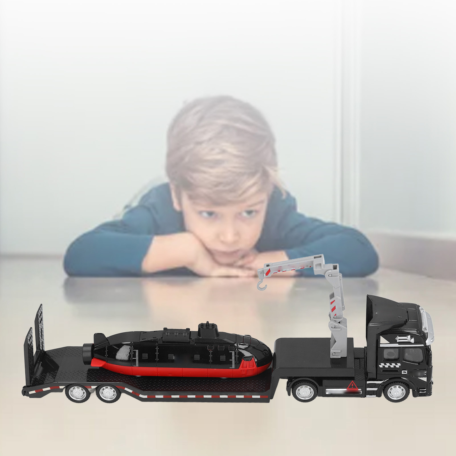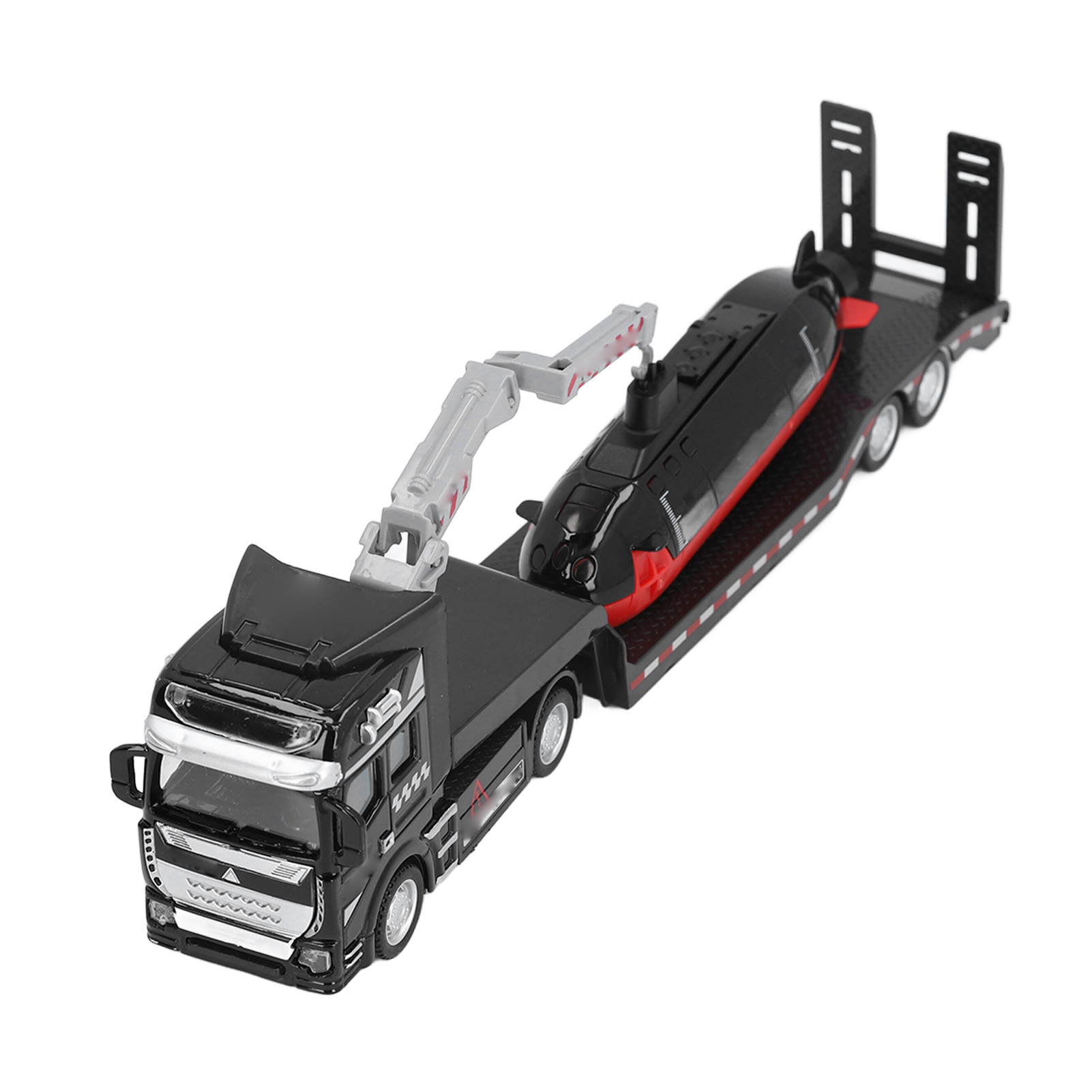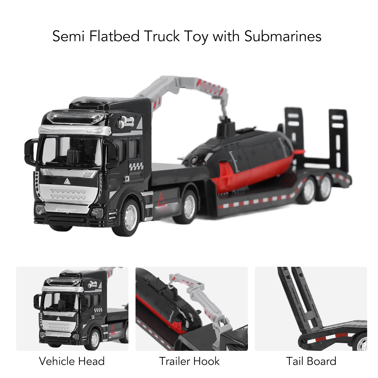 Alloy Semi Flatbed Trailer Truck Toy with Submarine Educational Realistic Construction Vehicle Flatbed Truck Toy for Kids Adults Black
