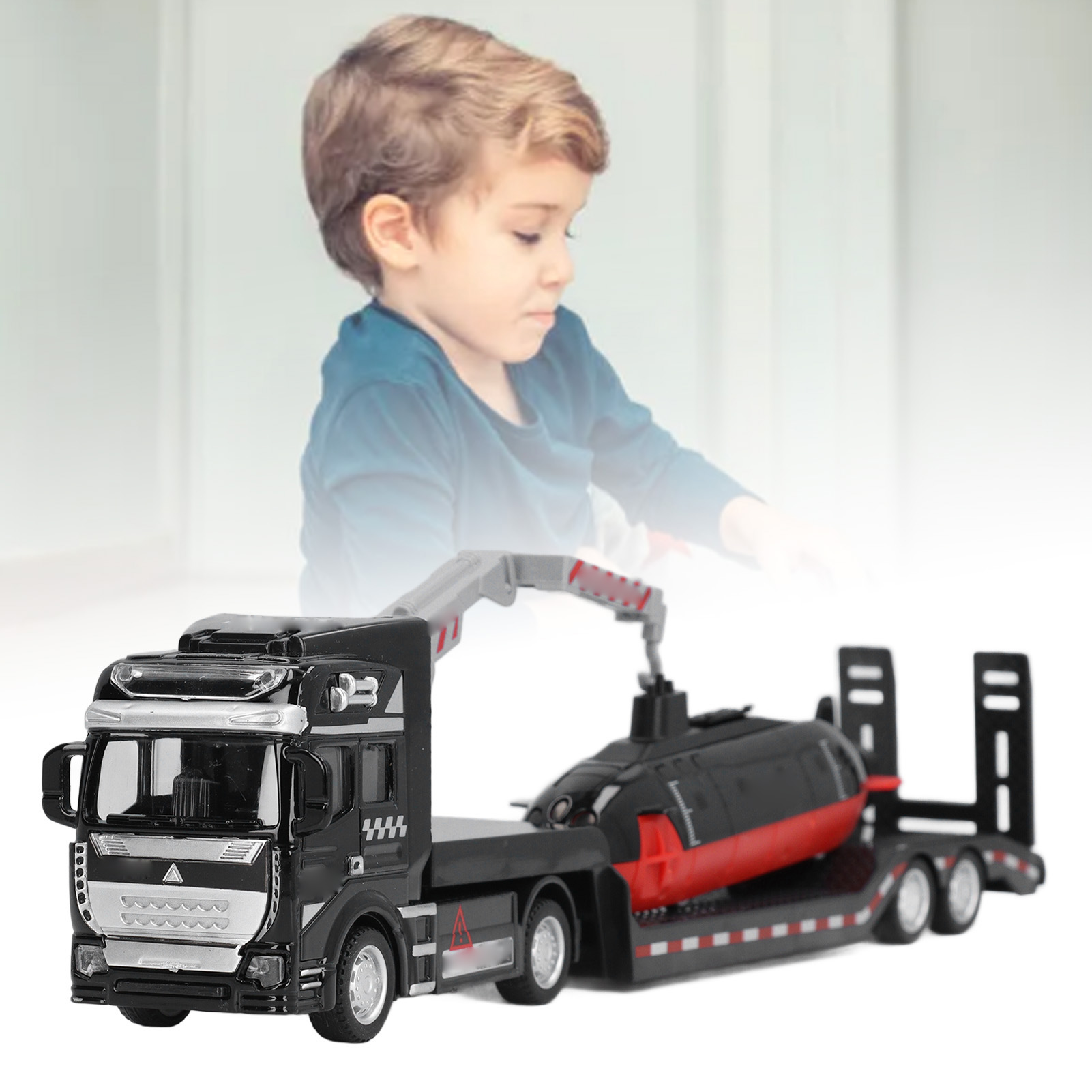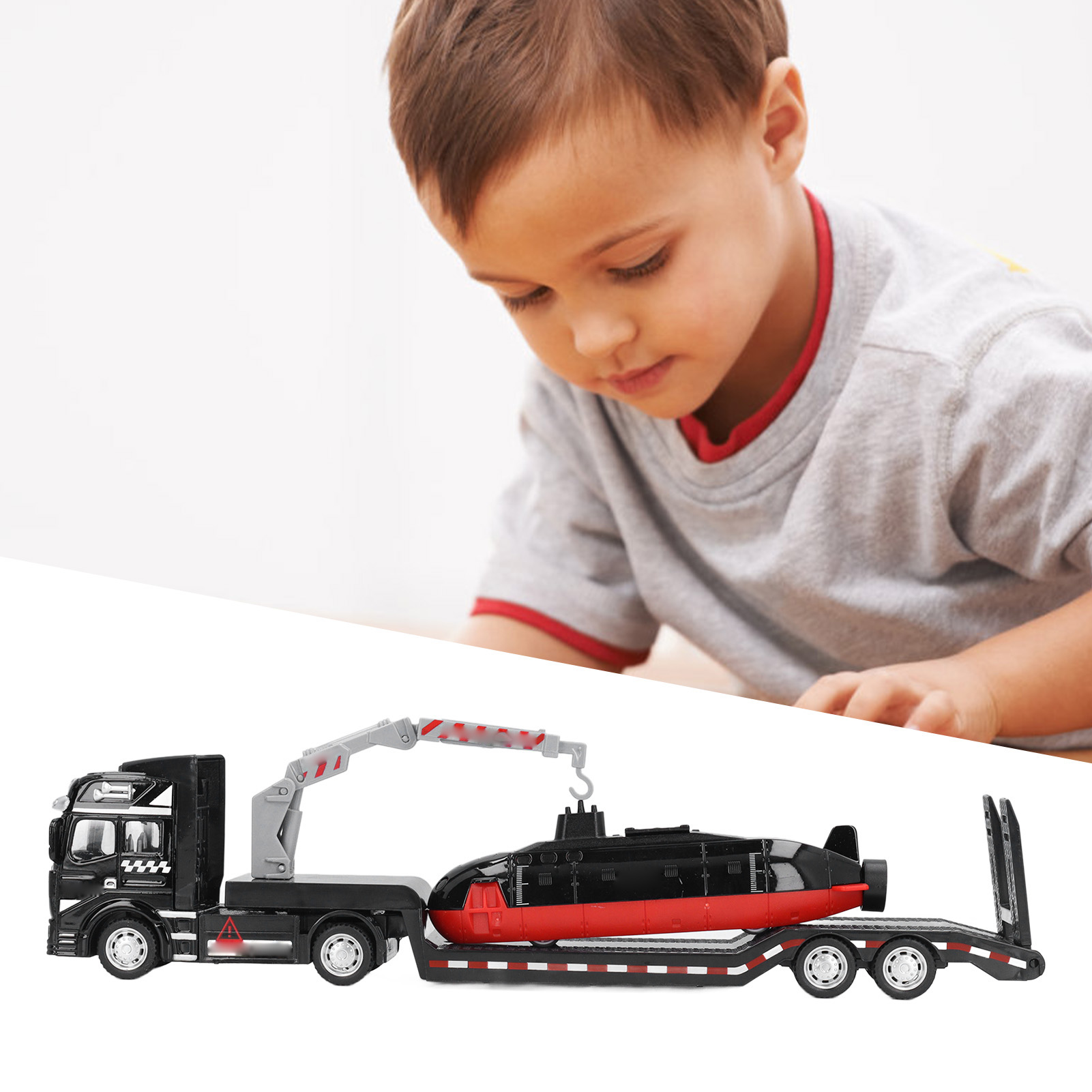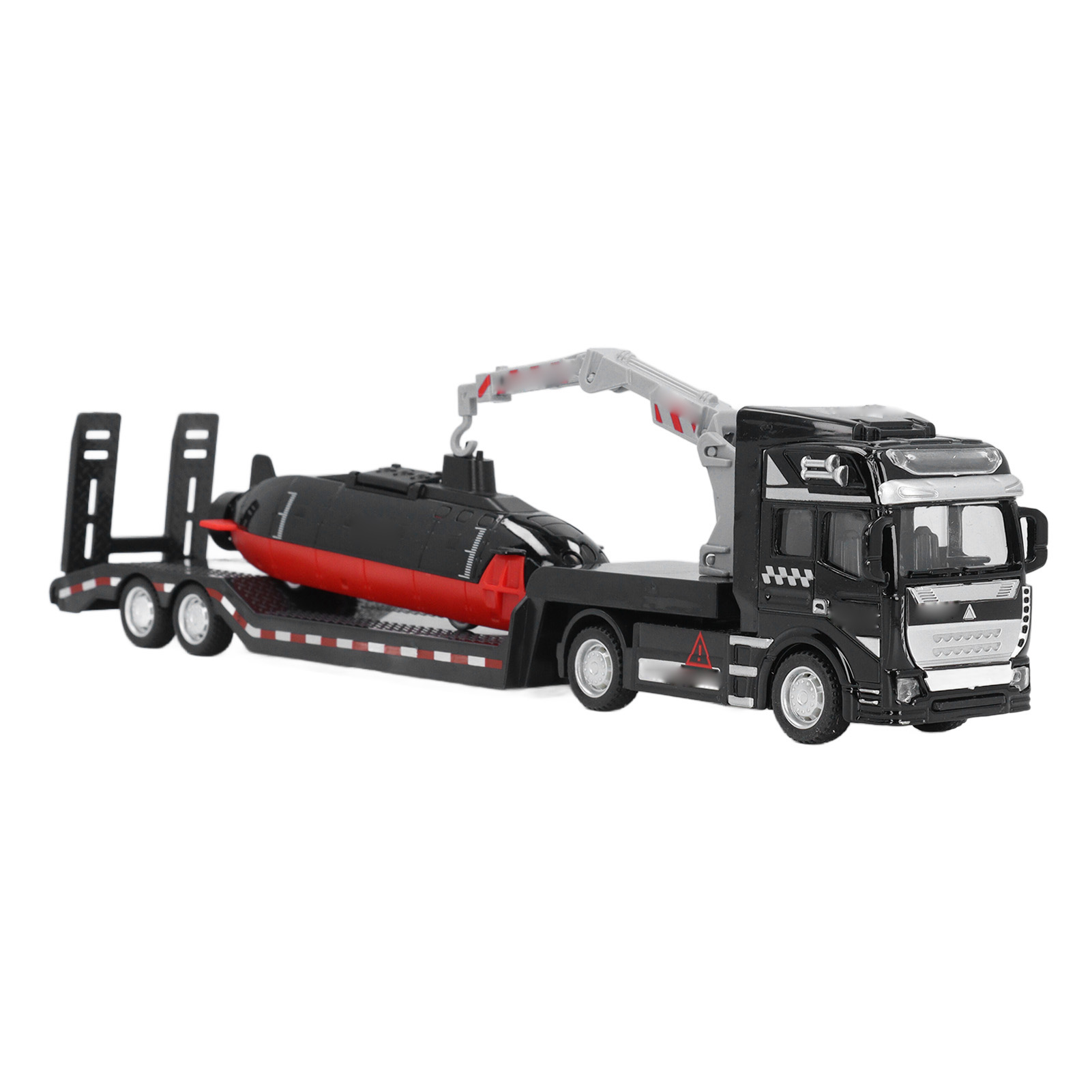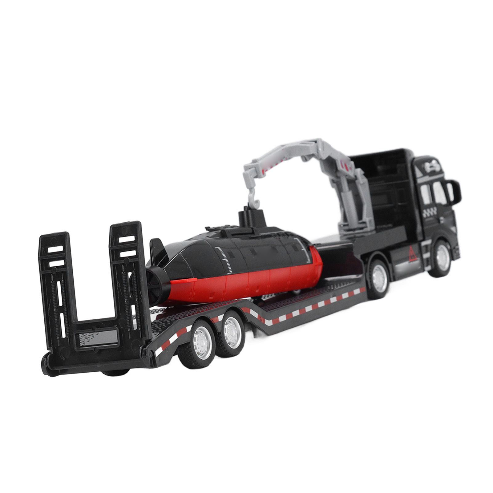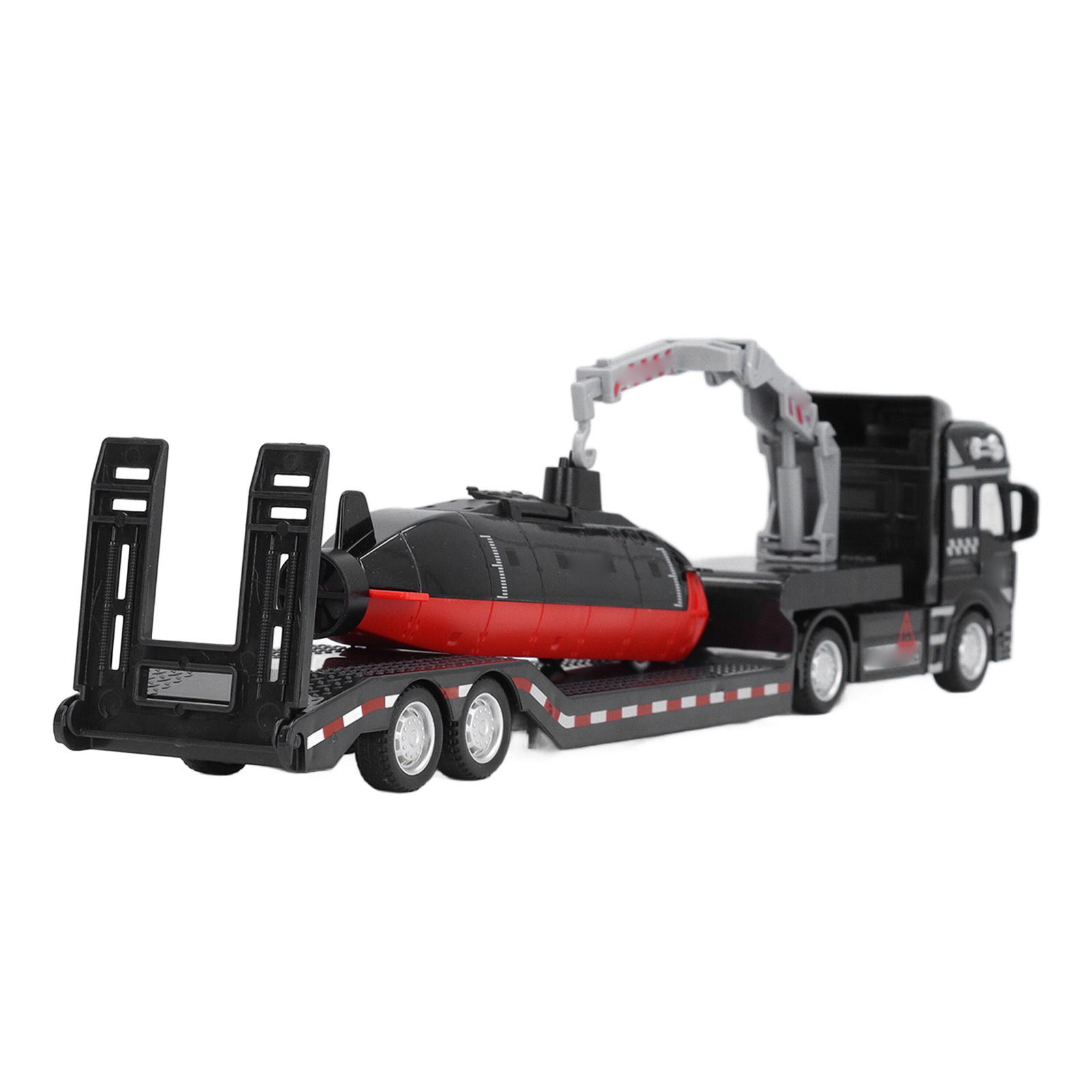 Alloy Semi Flatbed Trailer Truck Toy with Submarine Educational Realistic Construction Vehicle Flatbed Truck Toy for Kids Adults Black
