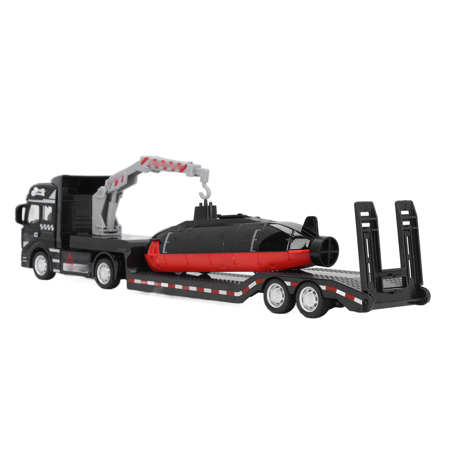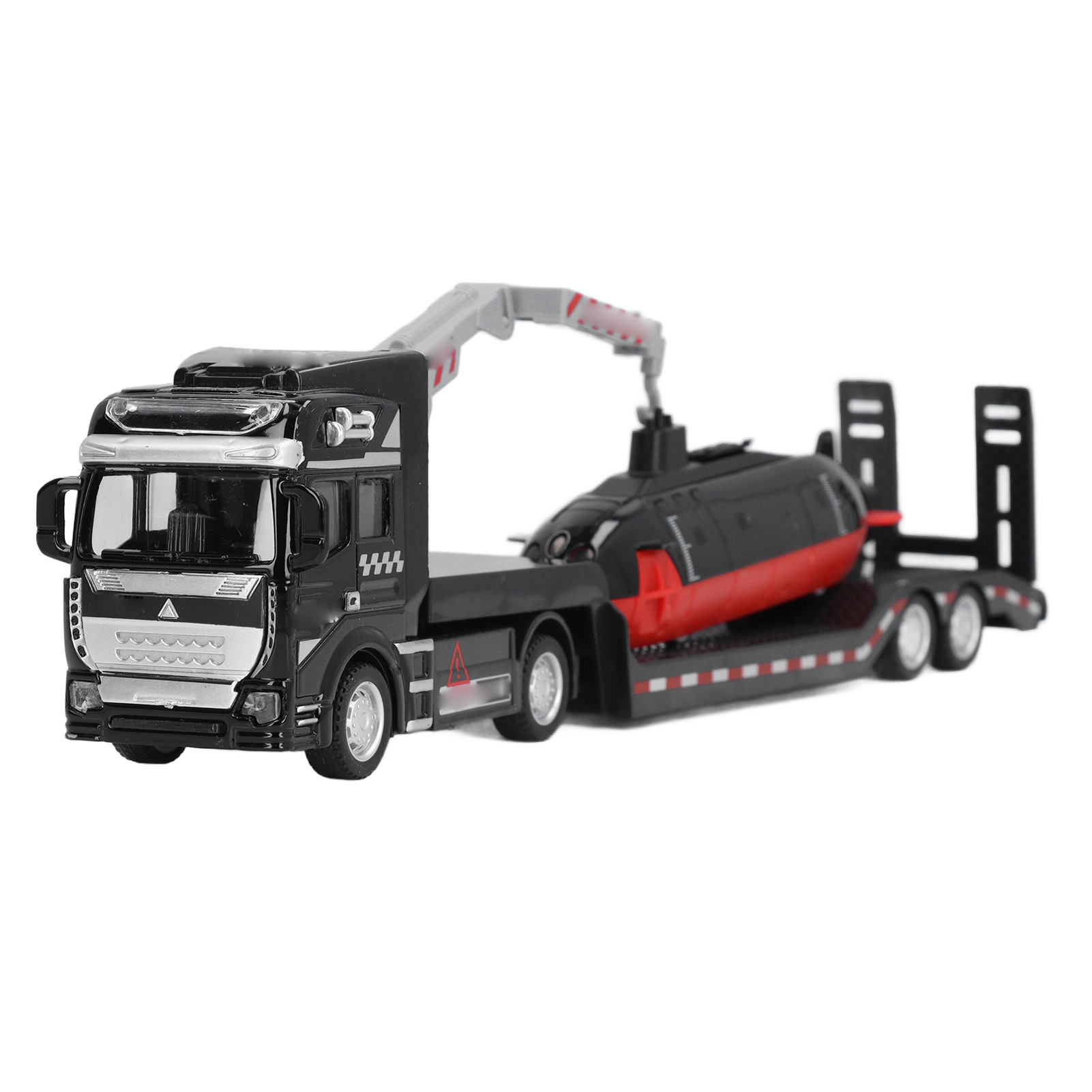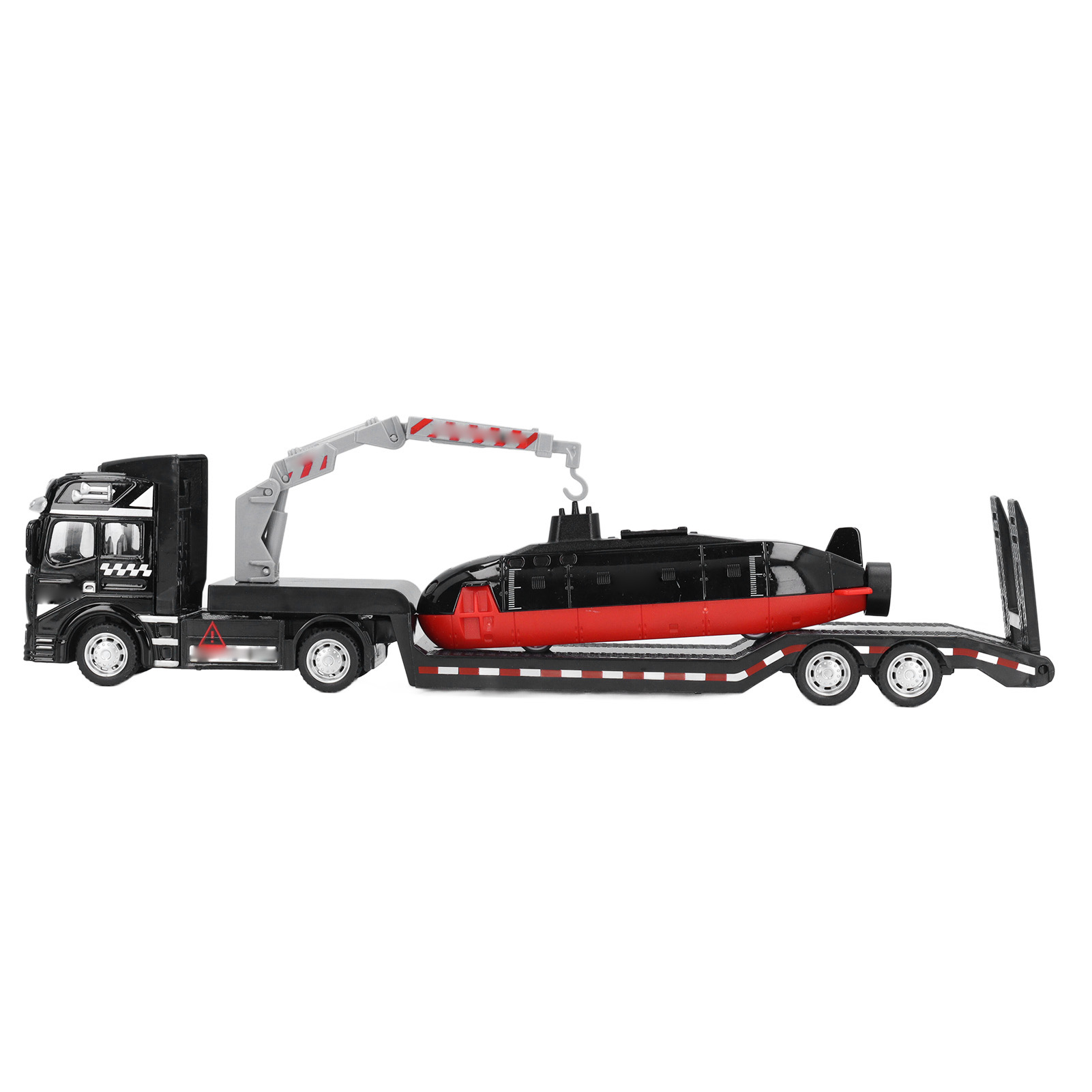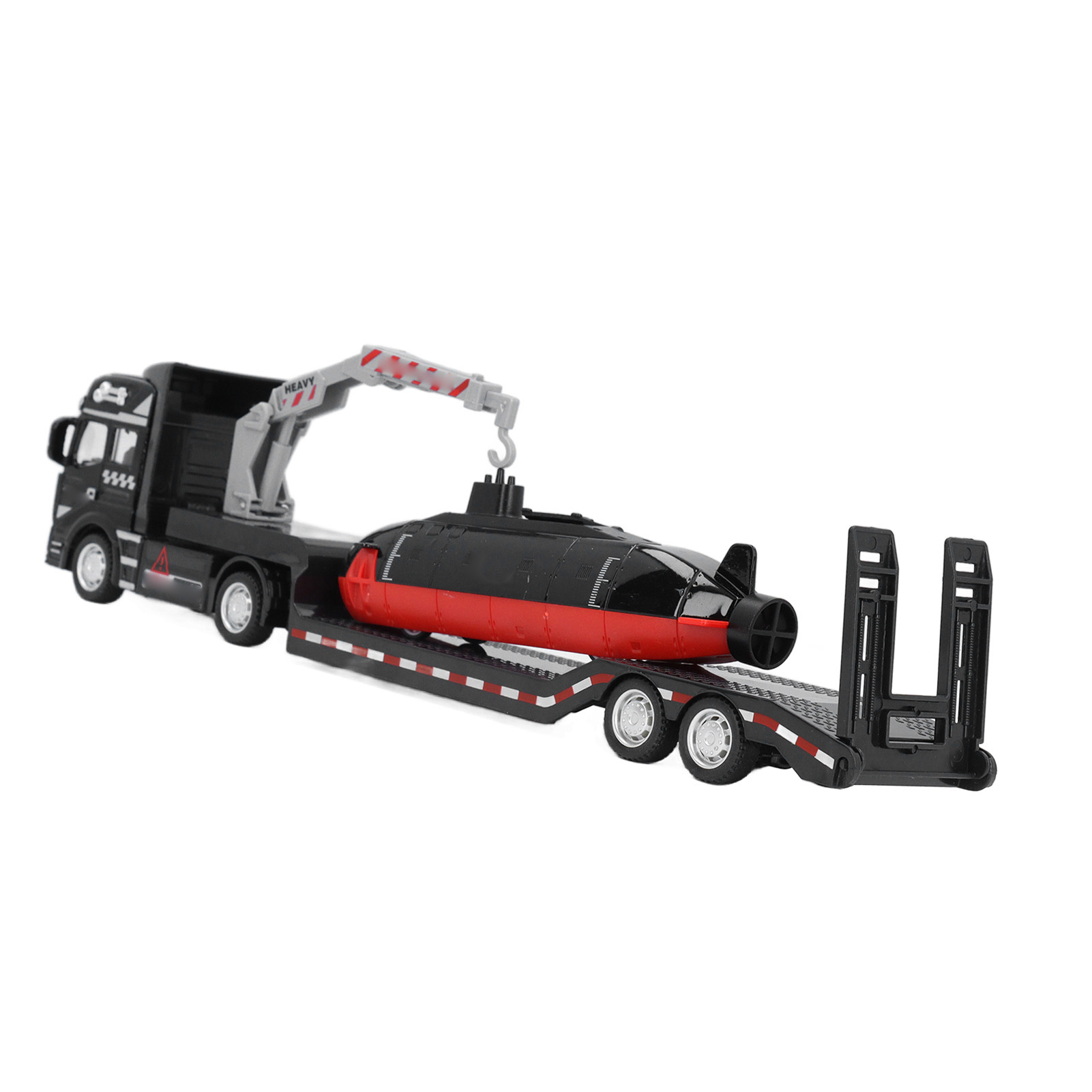 Alloy Semi Flatbed Trailer Truck Toy with Submarine Educational Realistic Construction Vehicle Flatbed Truck Toy for Kids Adults Black