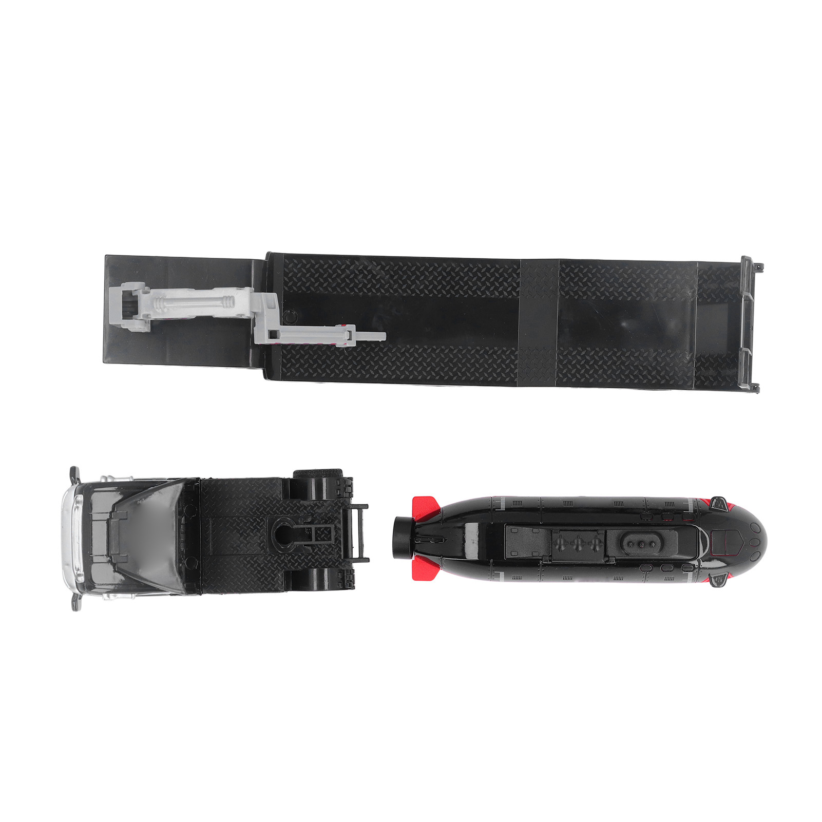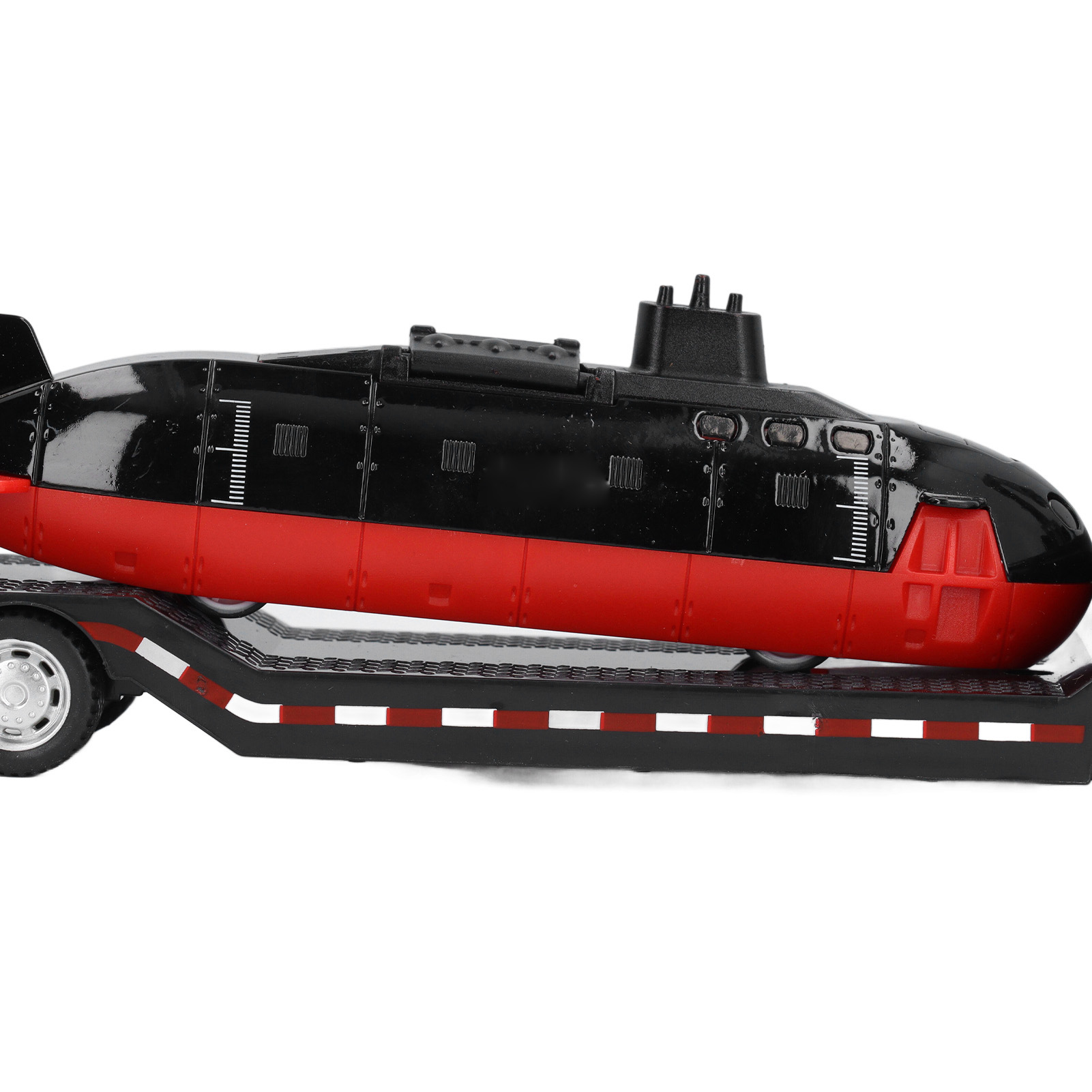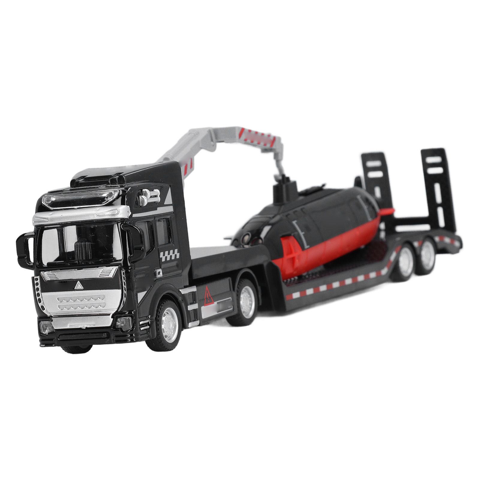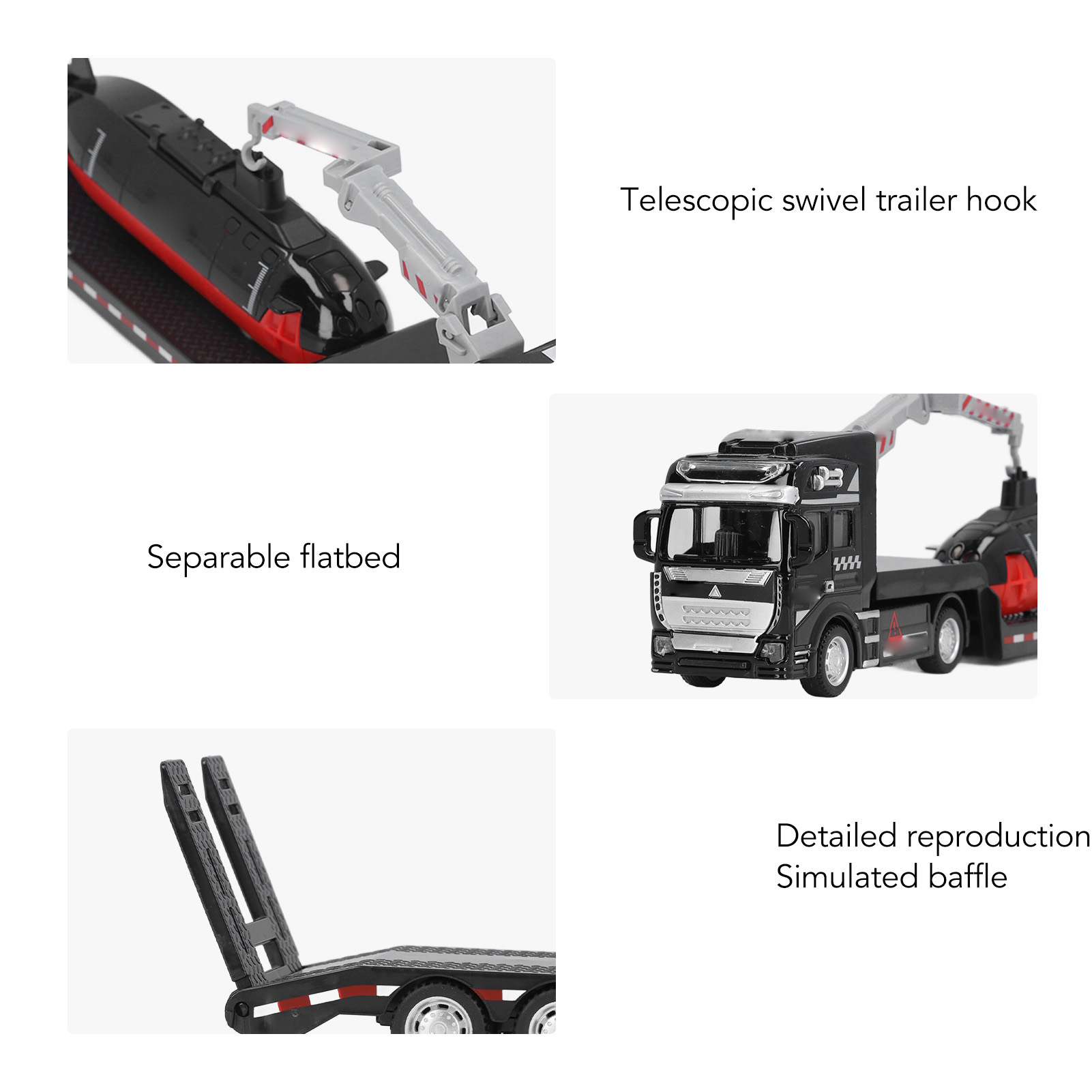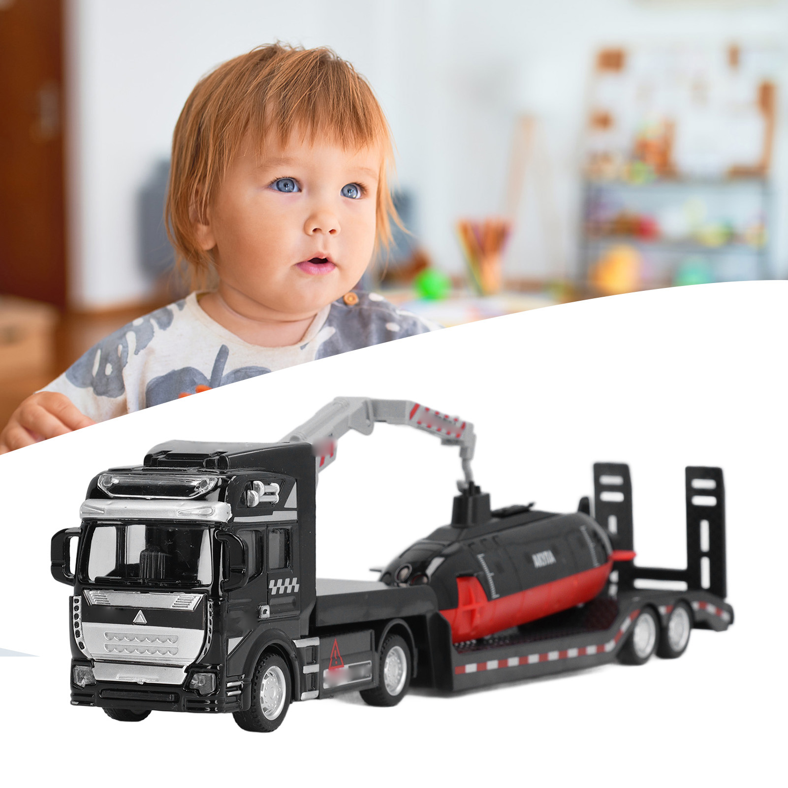 Alloy Semi Flatbed Trailer Truck Toy with Submarine Educational Realistic Construction Vehicle Flatbed Truck Toy for Kids Adults Black
