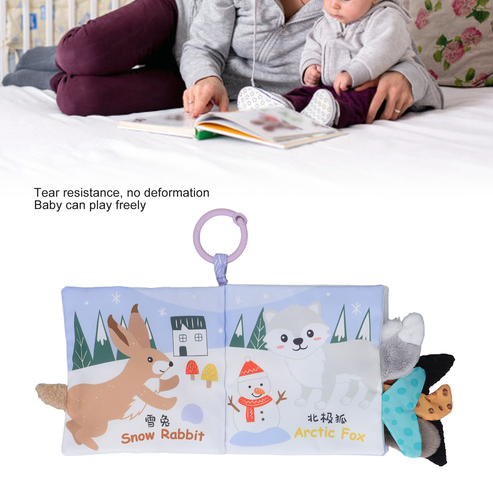 1、Educational Toy: The cloth book is printed with cute cartoon animal patterns and corresponding English words, which is convenient for babies to know animals and learn words. 2、Lovely And Beautiful: Three dimensional animal doll, bright and delicate color, cute and exquisite, attract your baby attention and arouse their interest in learning. 3、Sound Paper: Built in crinkle sound paper, select a variety of fabrics, give babies a different hearing and tactile experience. Fine stitching, no loose thread. 4、Multiple Applicable Scenarios: Designed with ring, animal crinkle cloth book can be easily hung on baby stroller. Compact and lightweight, suitable for home, travel, etc. 5、Soft Polyester: Animal tail cloth book is made of polyester fiber, safe and odorless, soft and skin friendly, tear resistant, easy to clean, no fading, durable.