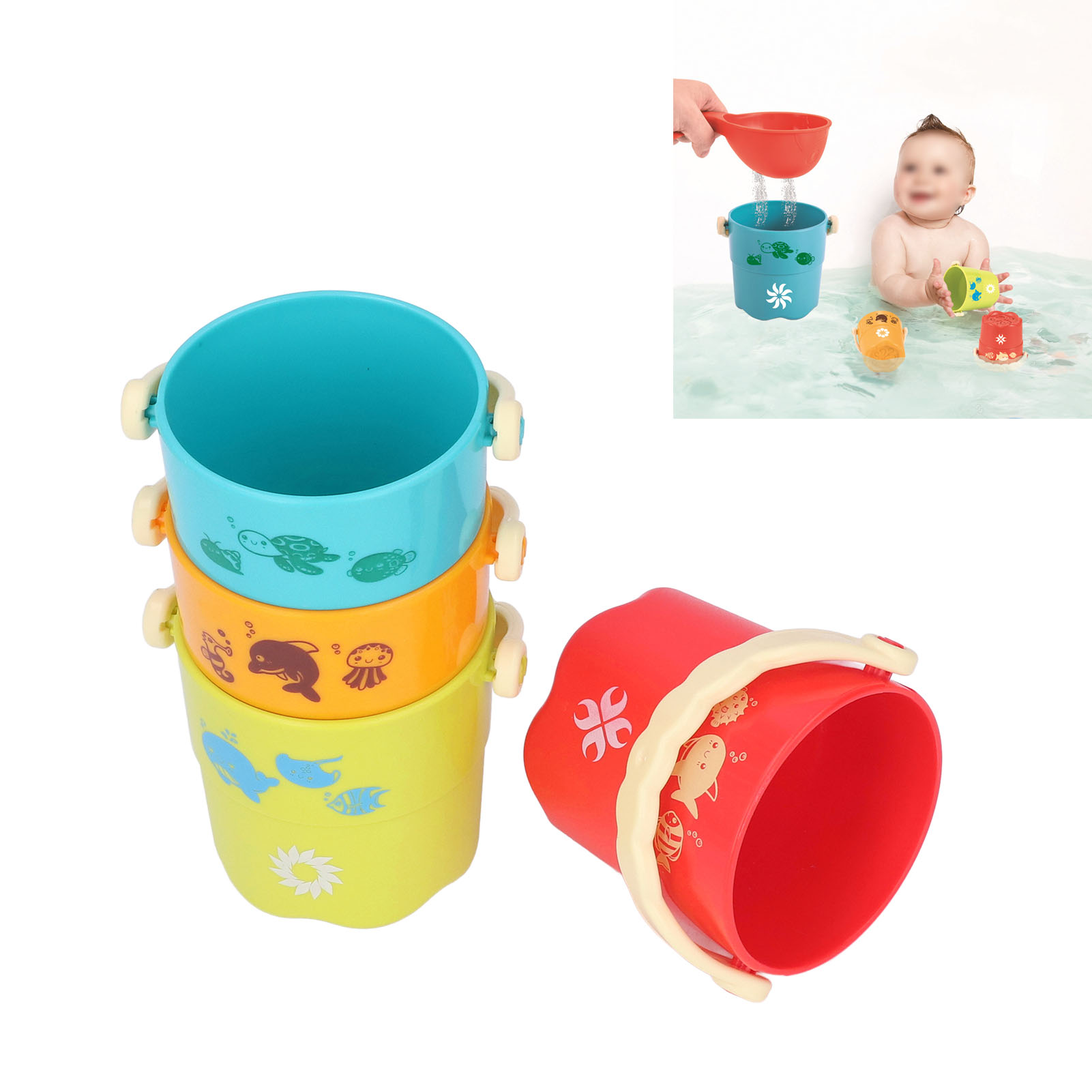 Baby Bath Stacking Bucket Toy Infant Plastic Funny Colorful Stacking Cup Birthday Gift 6 Month