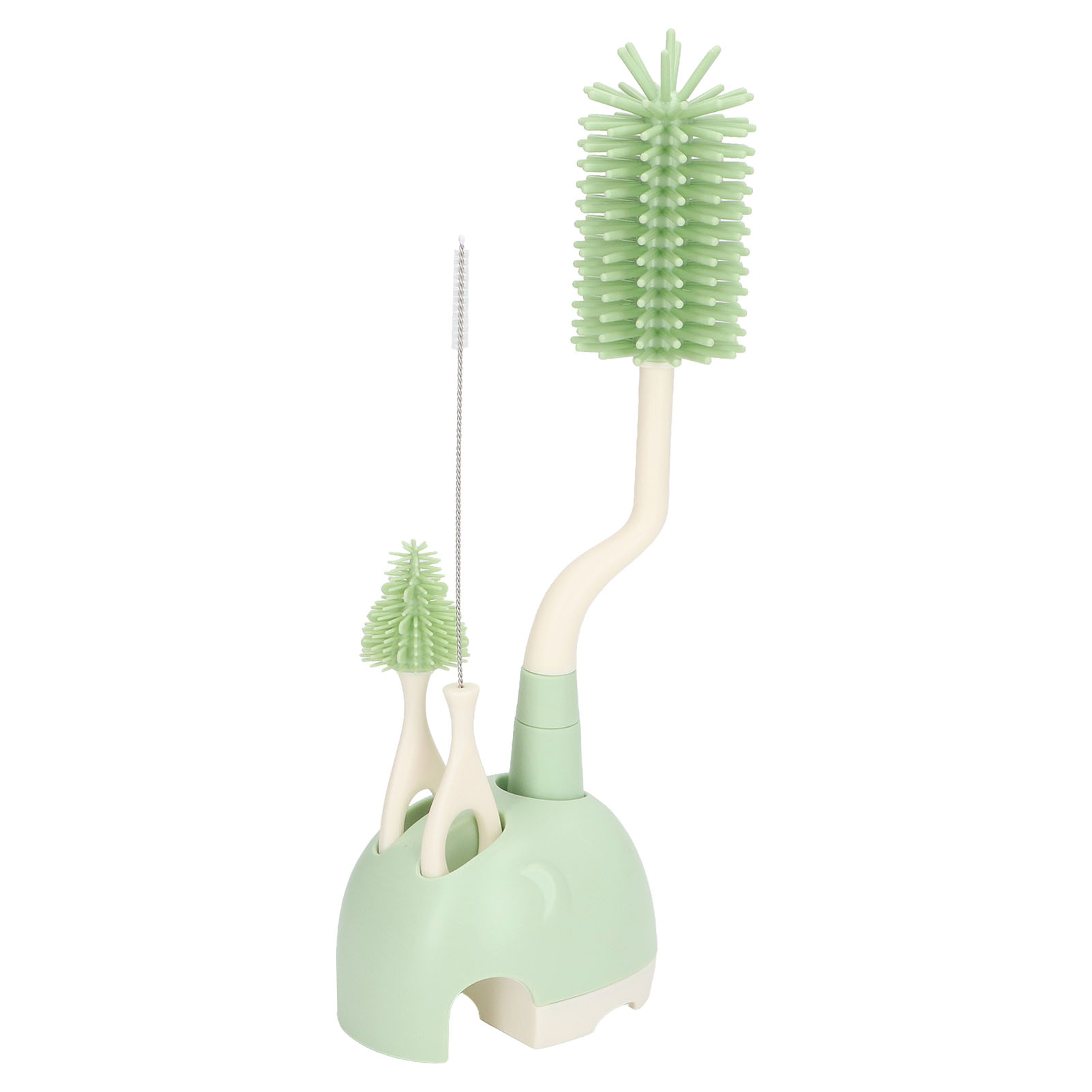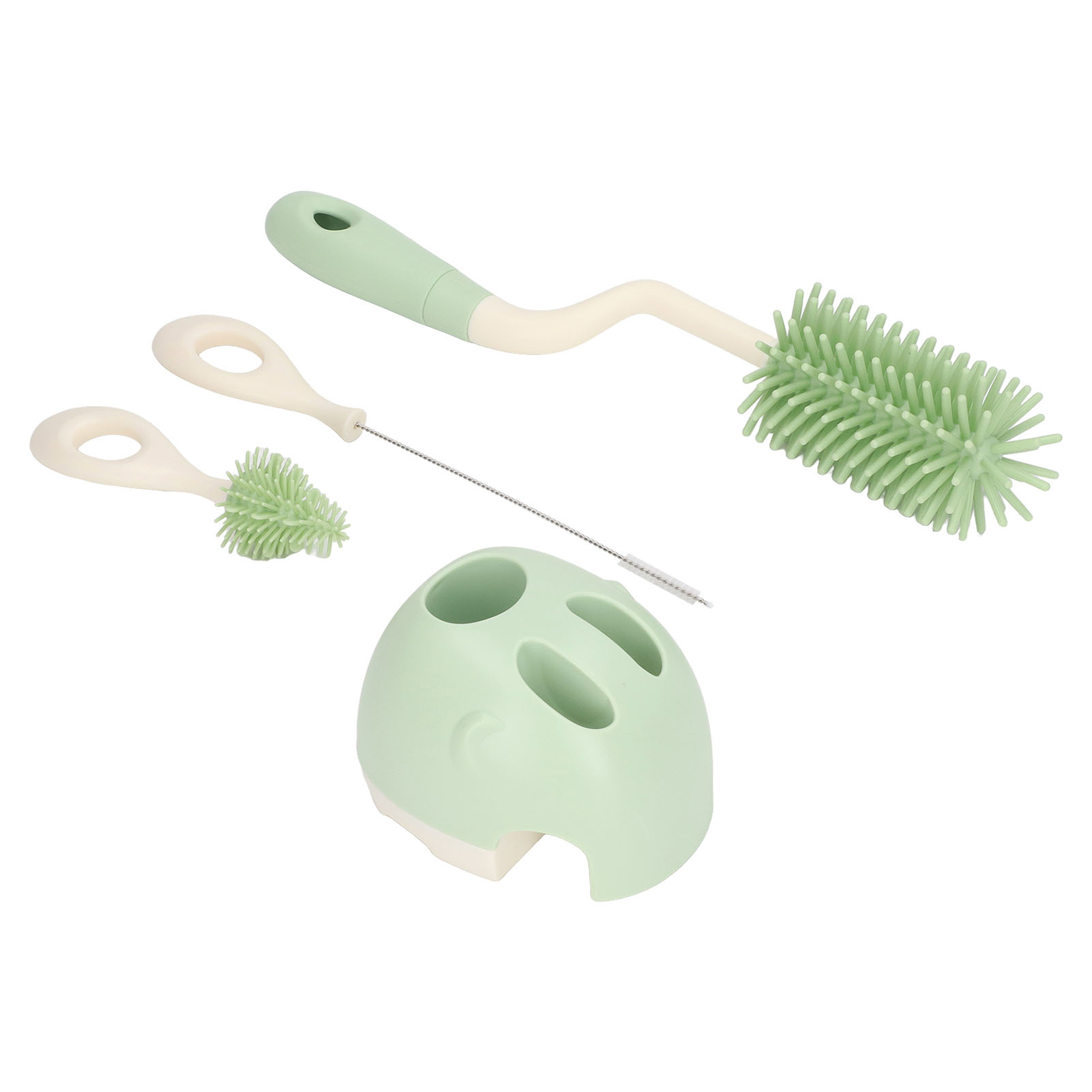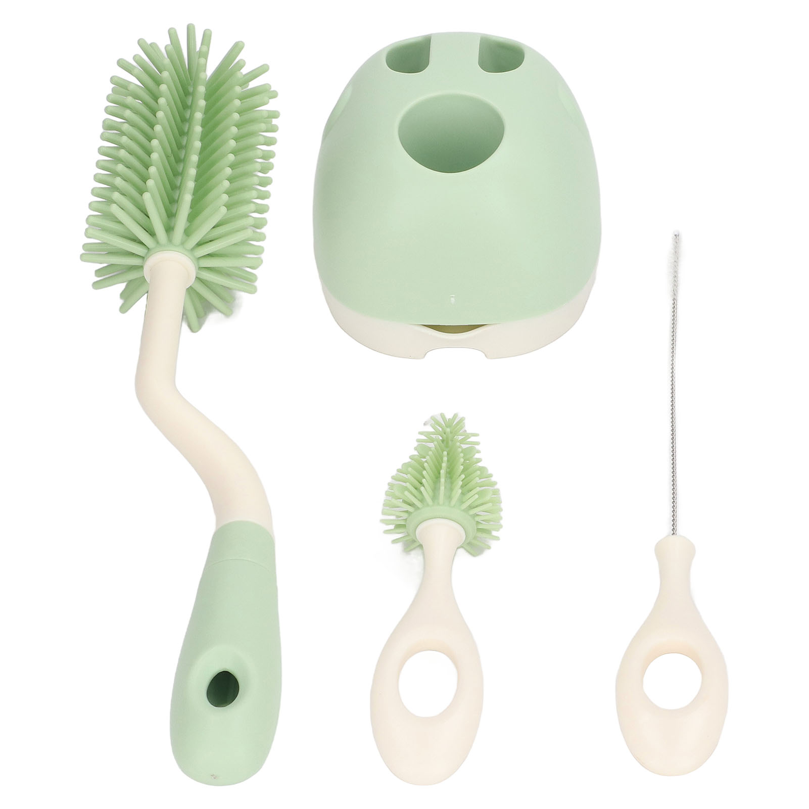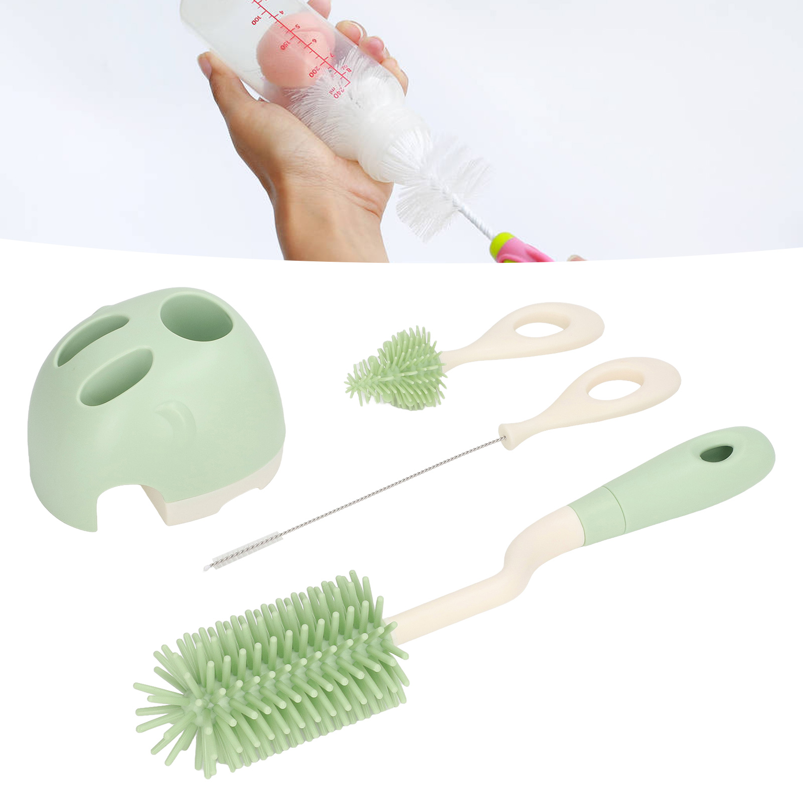 Baby Bottle Brush Set Ergonomic Handle Multipurpose Silicone Bottle Cleaning Brushes with Base for Nipple Straw Green Rotatable