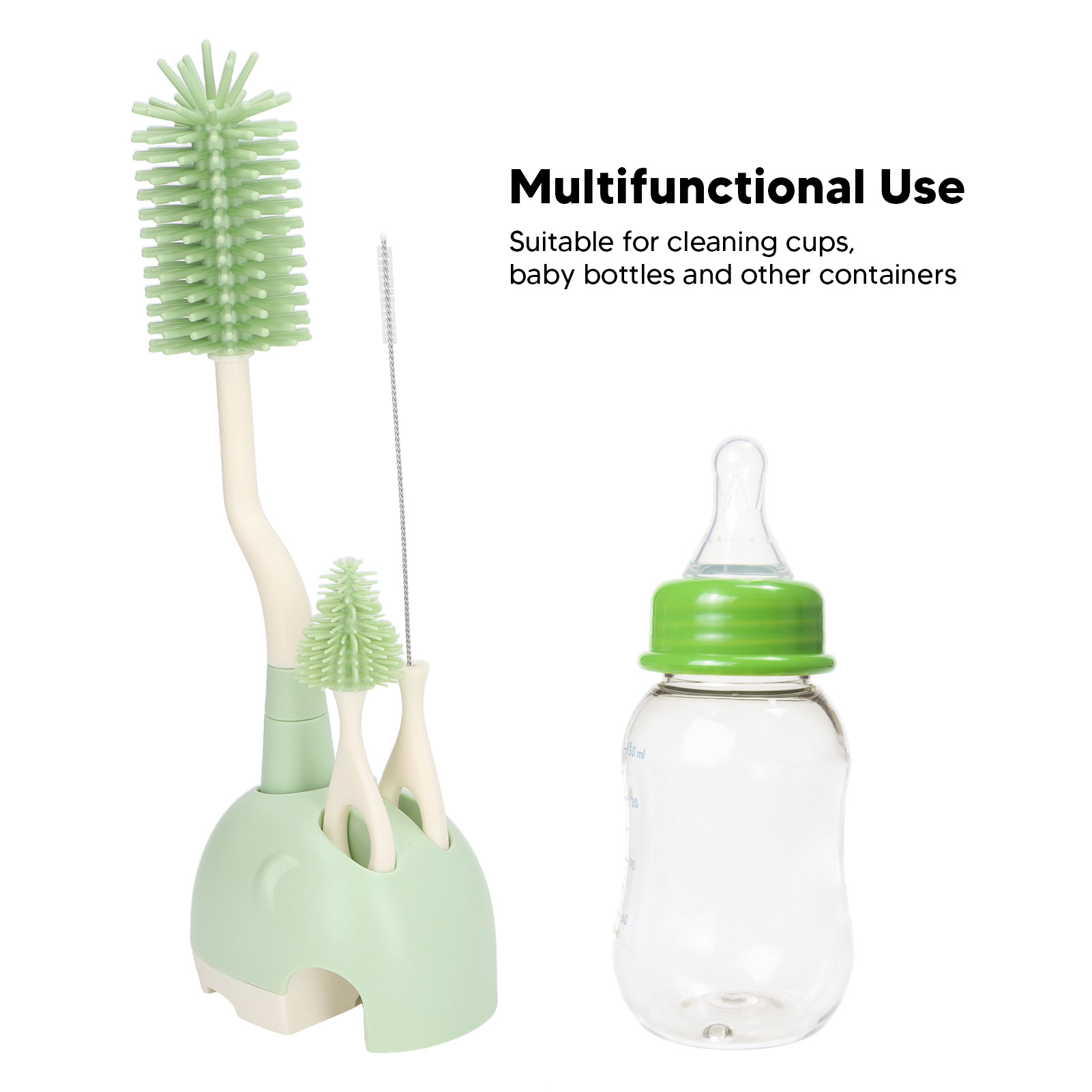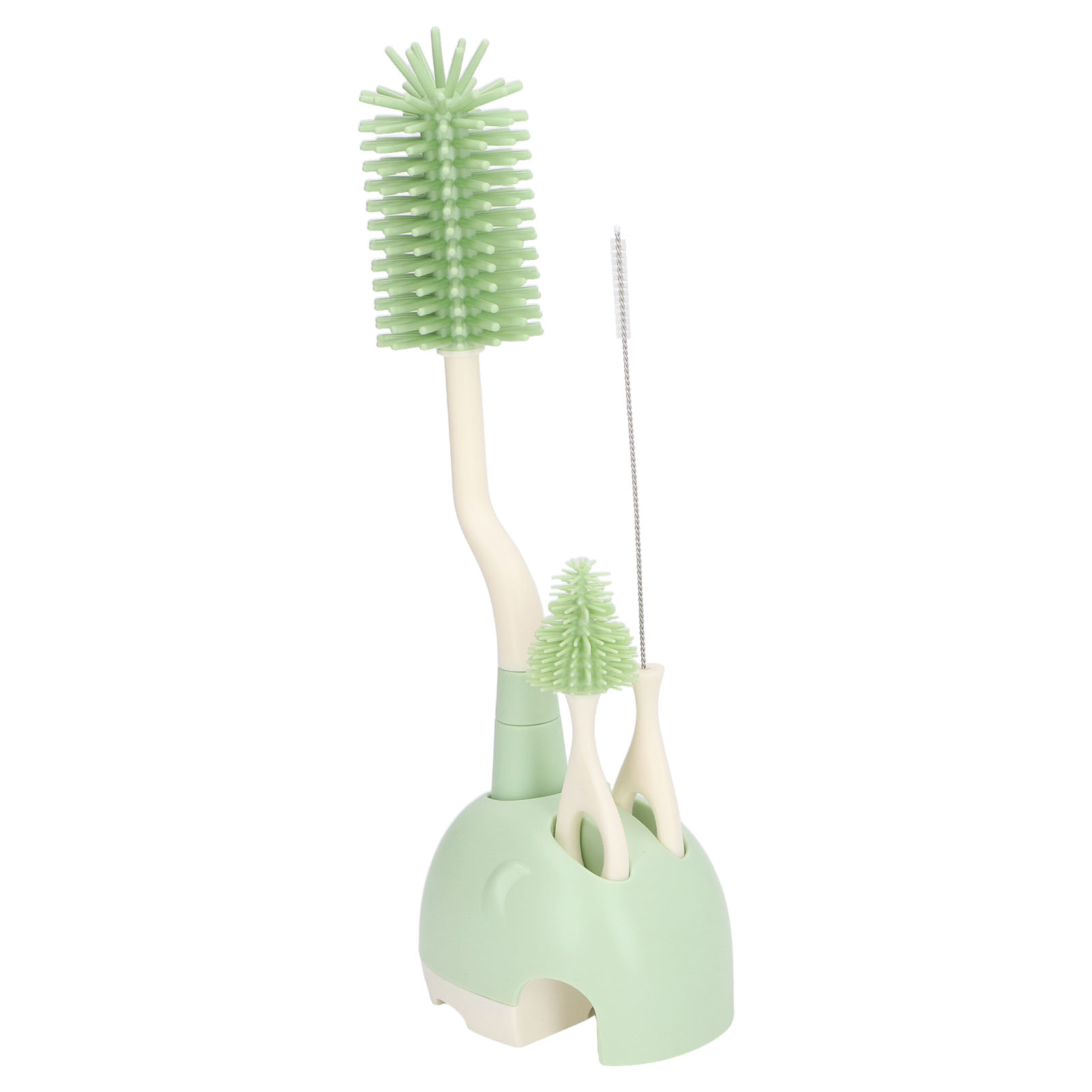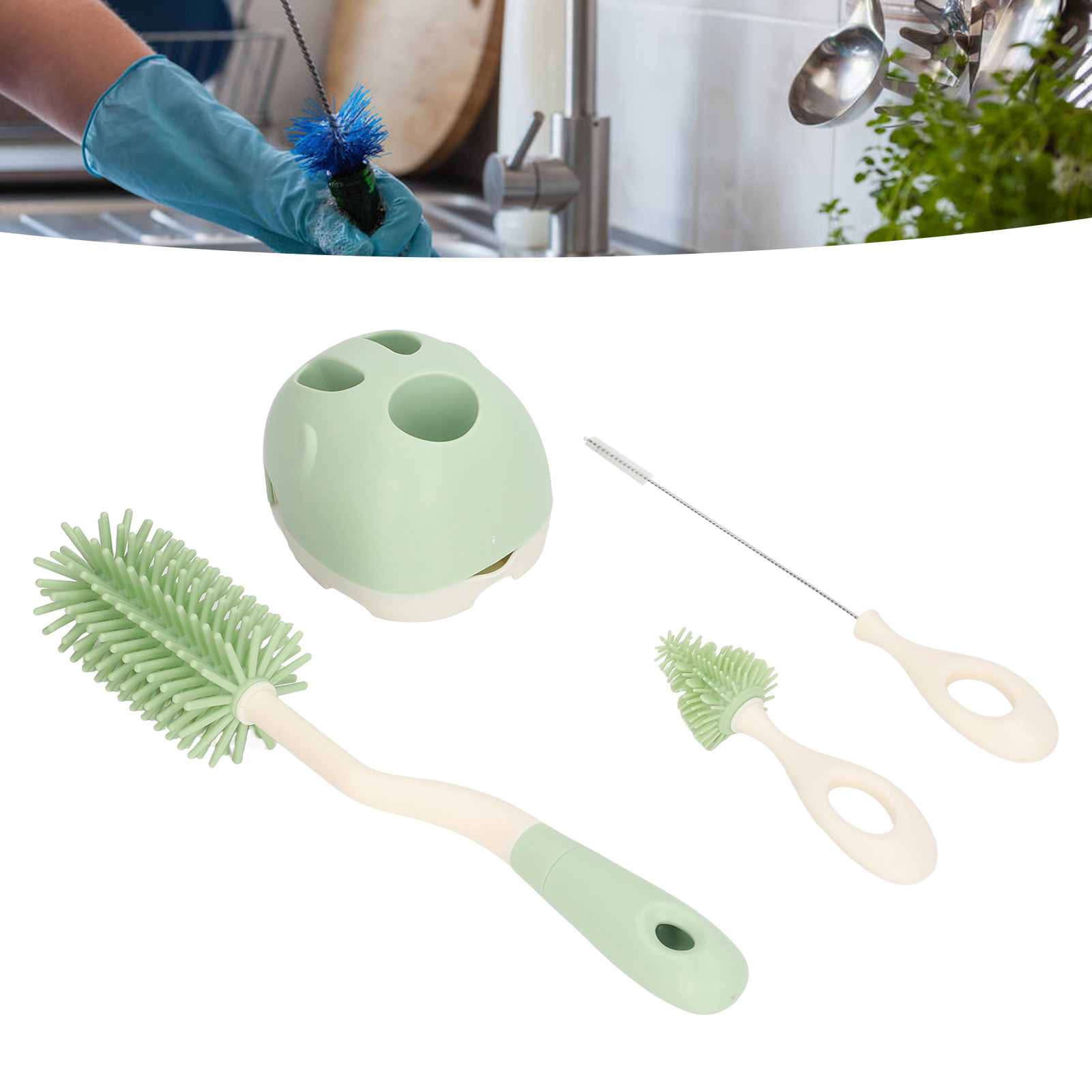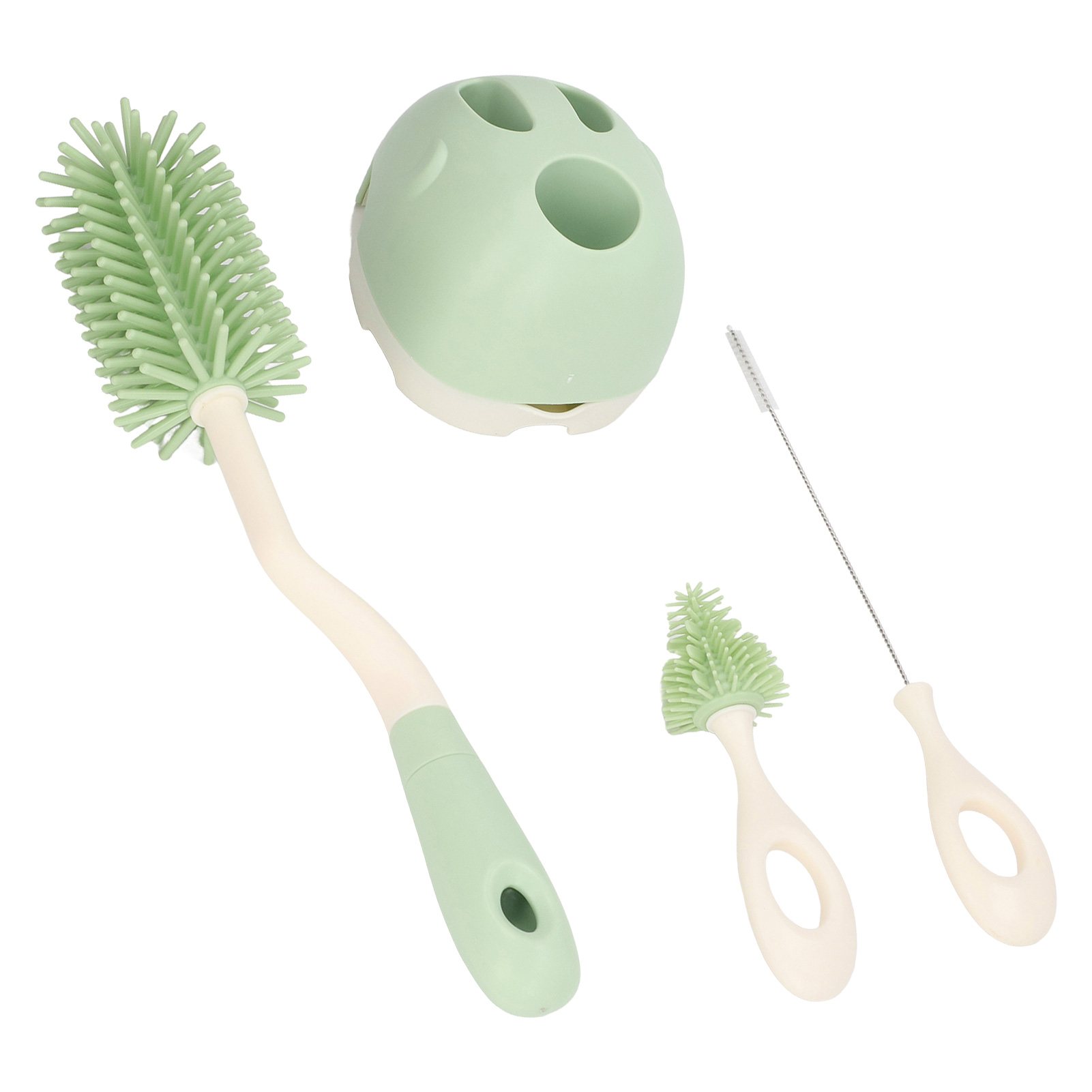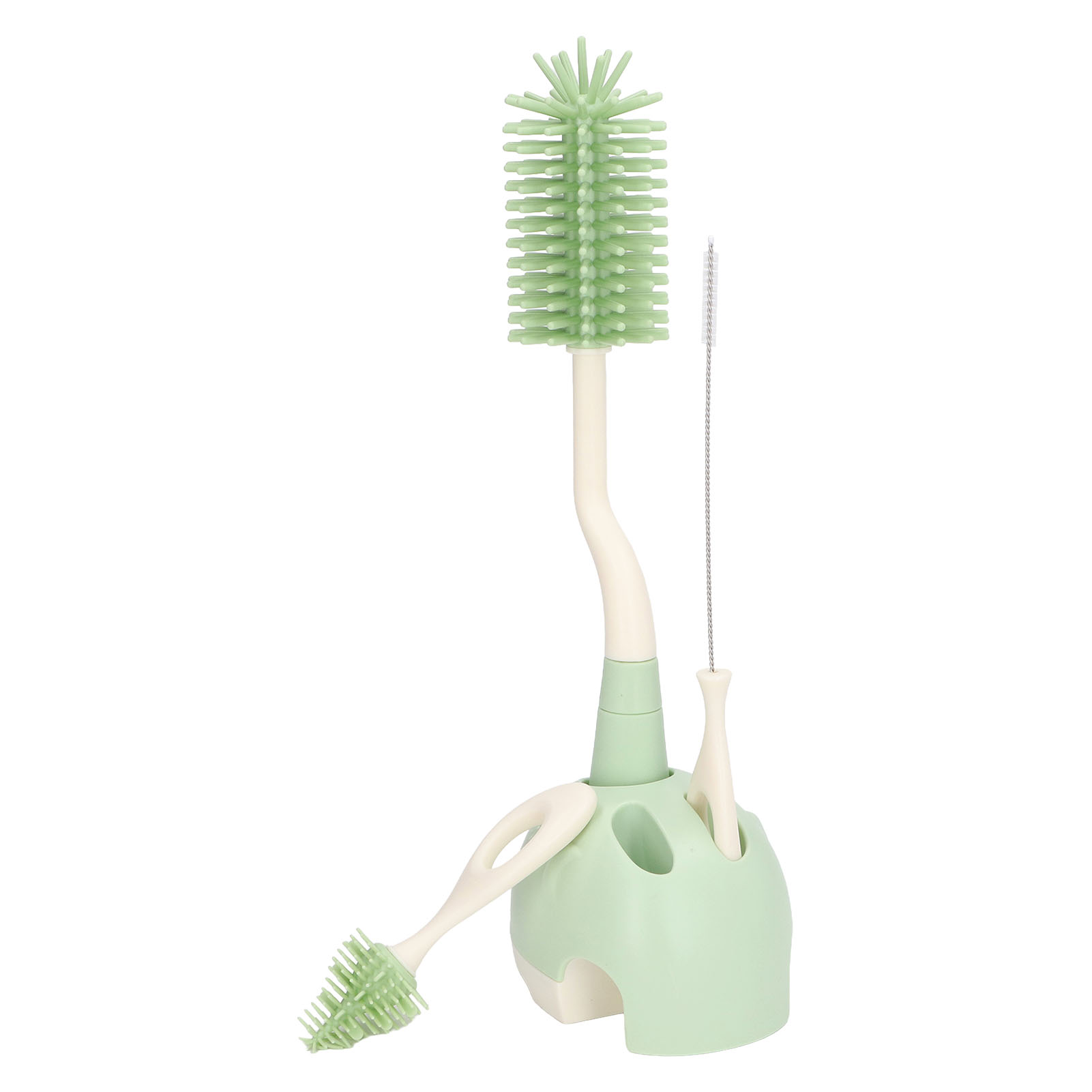 Baby Bottle Brush Set Ergonomic Handle Multipurpose Silicone Bottle Cleaning Brushes with Base for Nipple Straw Green Rotatable