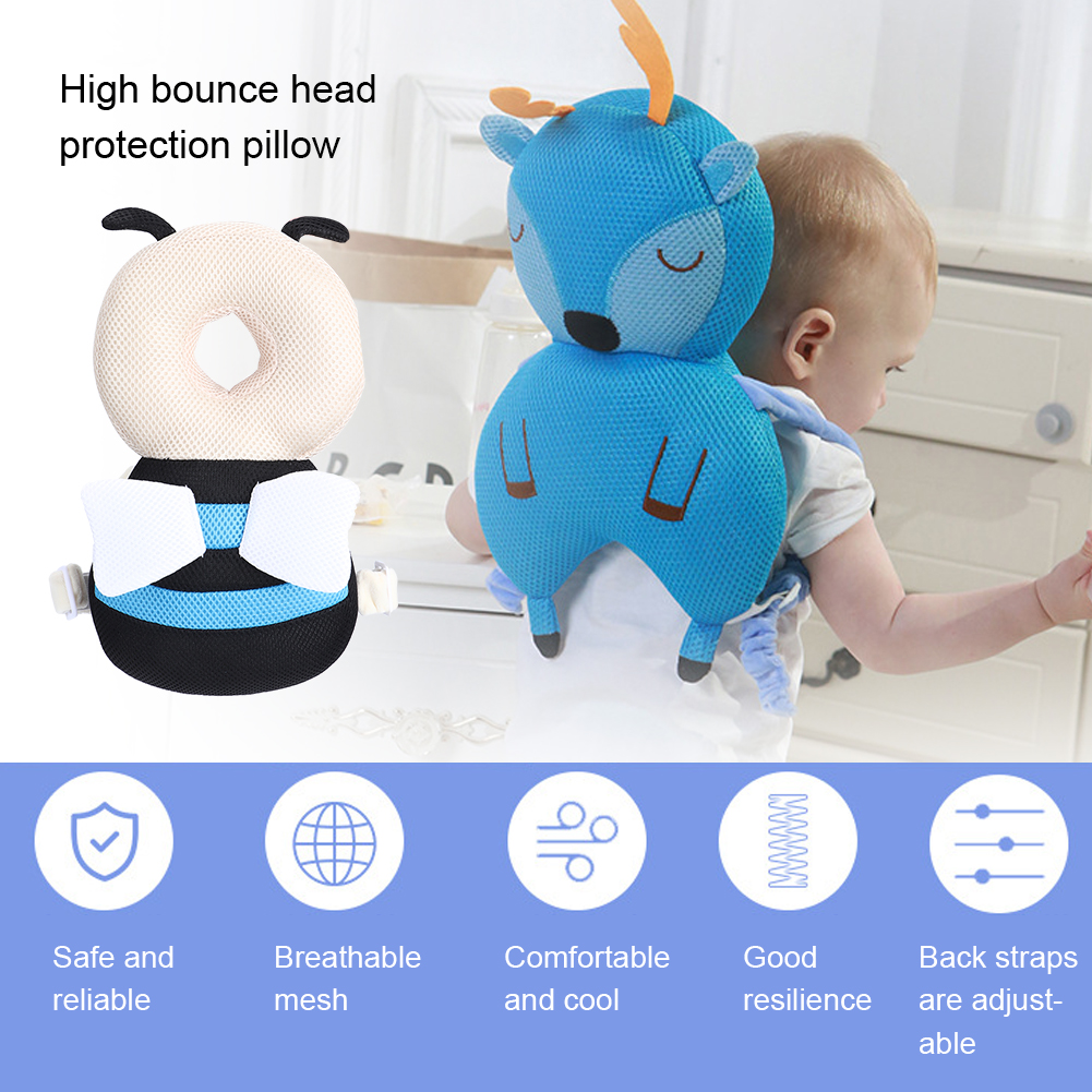 Baby Breathable Anti Fall Head Protection Pad Elastic Headrest Protective Pillow(Bee Mesh Type)