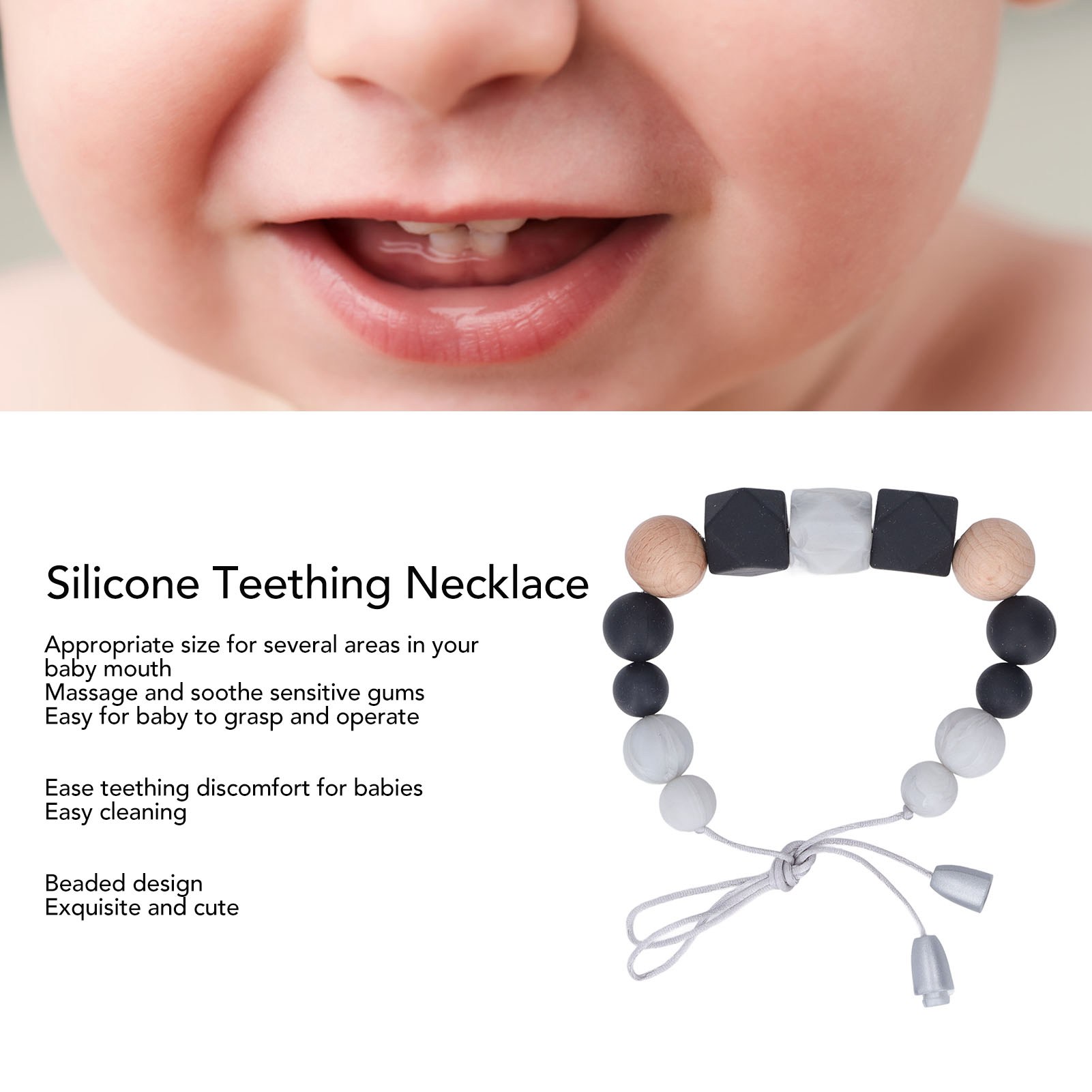 1、SOOTHE GUM: Appropriate size for several areas in your baby mouth, including the back teeth, helps massage and soothe sensitive gums, making it easy for your baby to grasp and operate. 2、DEVELOP GREAT HABITS: Teething necklace can ease teething discomfort for babies, prevent finger sucking and chewing, and help them develop great oral hygiene habits. 3、CUTE AND DELICATE: Unique shaped pendant on the necklace, beaded design, bright color, no fading, overall looks exquisite and beautiful, attract attention of baby. 4、EASY CLEANING: Baby teething necklace can be cleaned in hot water and steam cleaner device, and after each use, you simply rinse the teething necklace for your baby in tap water. 5、SILICONE MATERIAL: Chewable necklace adopts excellent silicone, which is very safe for your baby health, soft and skin friendly, wear resistant and durable.