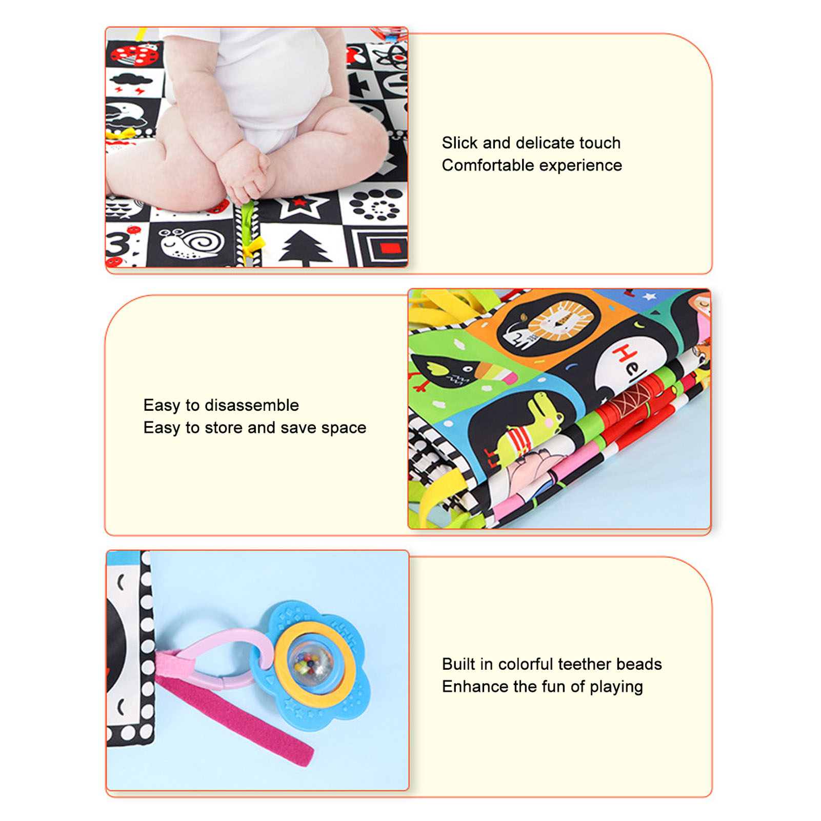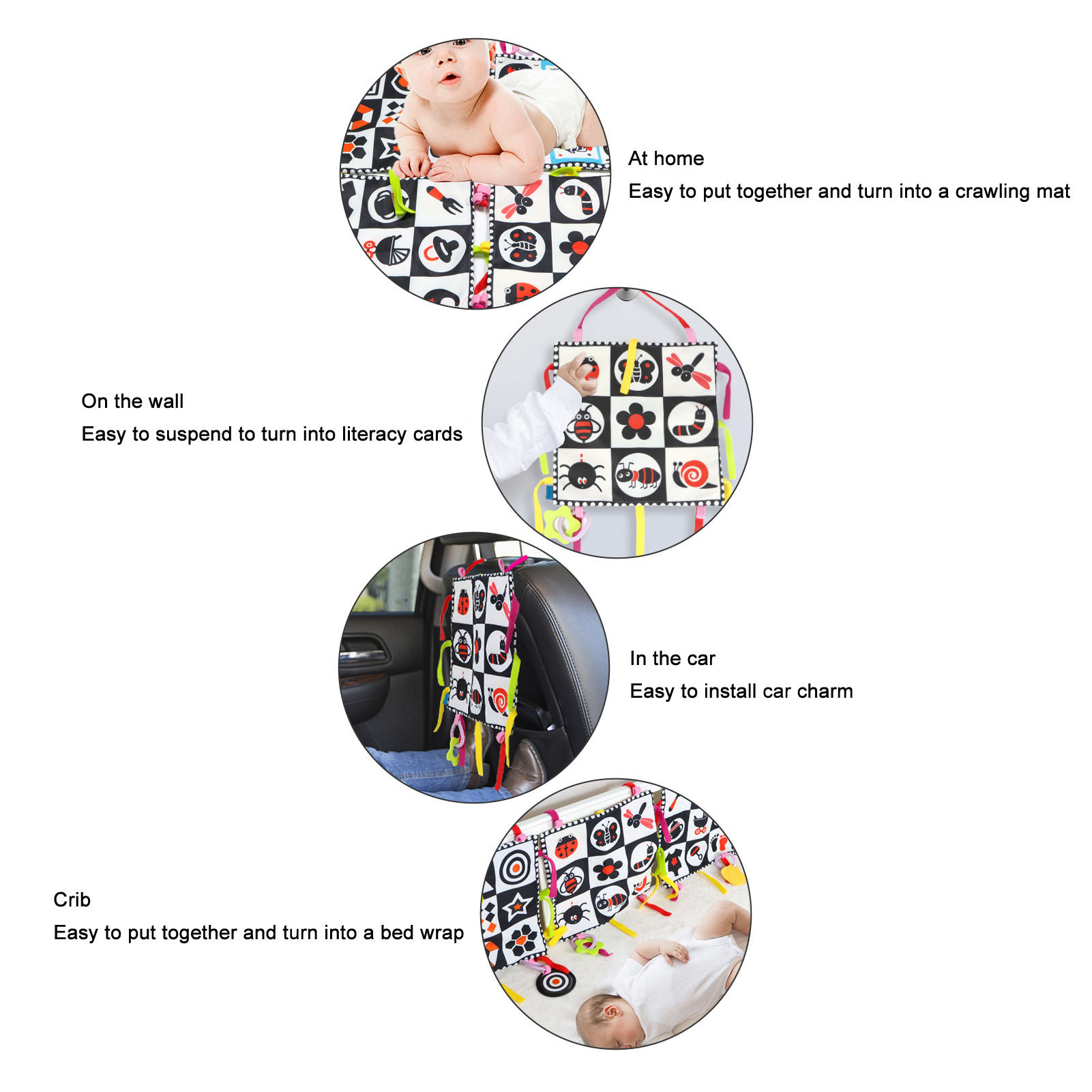 1、MULTIFUNCTIONAL: Baby crawling mat can be used as a patchwork mat, play mat and cognitive mat, to meet the baby's multiple learning needs. 2、SAFE MATERIAL: Baby crawling mat is made of safe polyester fiber fabric, and the chewable teether is safe and harmless to ensure baby's healthy growth. 3、BLACK, WHITE AND RED GRAPHICS: Baby crawling mat has well designed black, white and red graphics to enhance baby's visual cognition and color recognition. 4、DURABLE AND RELIABLE: The toddler playmat features a sturdy splicing design that is durable and not easily deformed, durable and long lasting. 5、DOUBLE SIDED: Both sides of the baby play mat can be used, providing a place for baby to play anytime, anywhere.