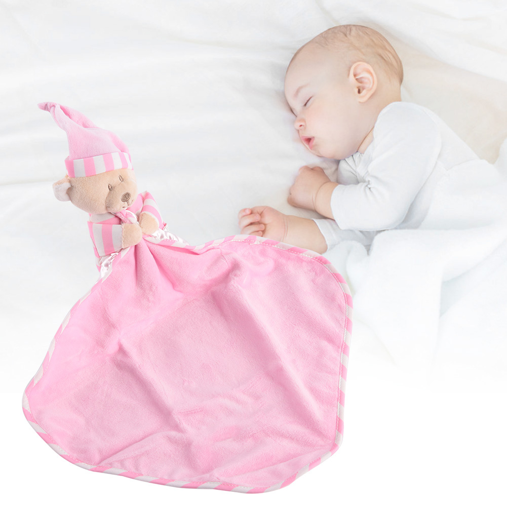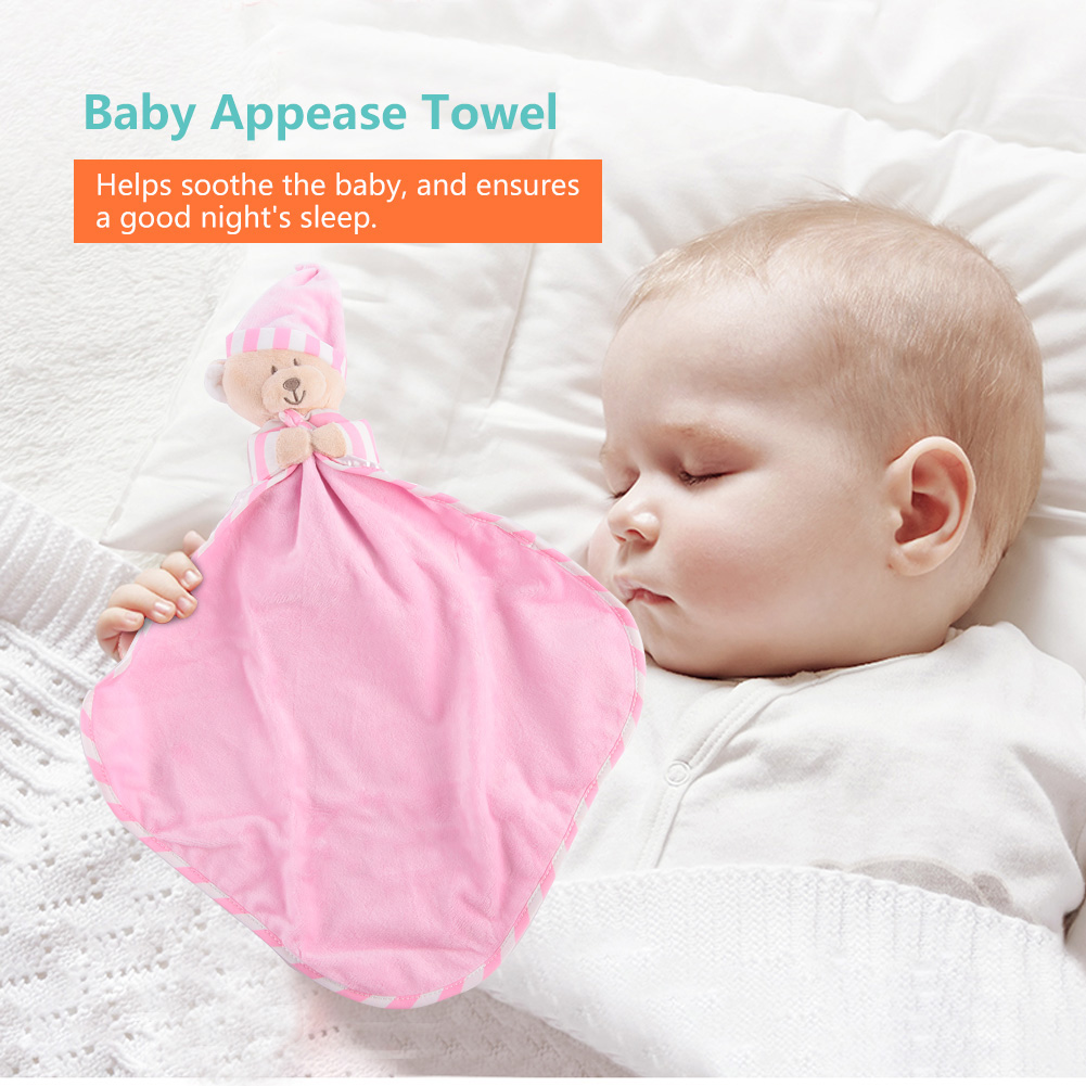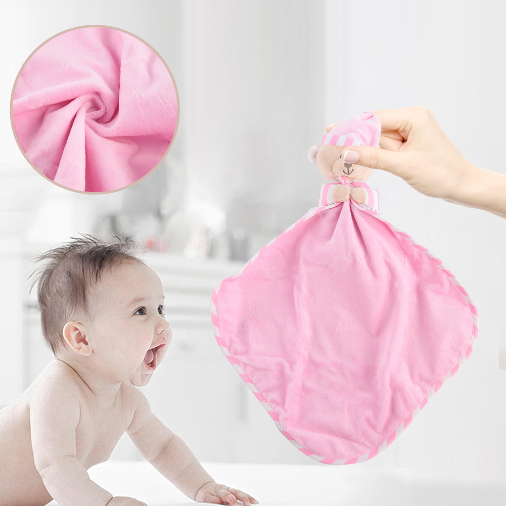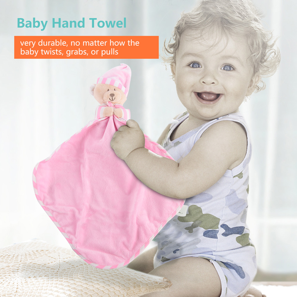 1、Made of high quality material, soft, comfortable, nontoxic and skin-friendly. 2、Exquisite workmanship makes it more durable, no matter how the baby twists, grabs, or pulls. 3、Adopts cartoon bear shape design, unique and cute, can pacify the baby's emotion. 4、Helps soothe the baby, and ensures a good night's sleep. 5、Specially designed for baby nursing, multi-functional, can be a baby bib or cute toy.