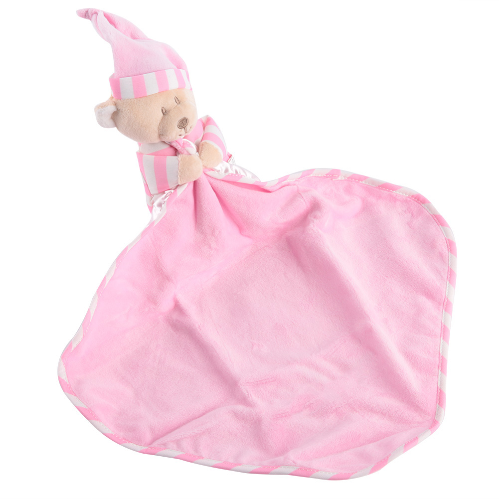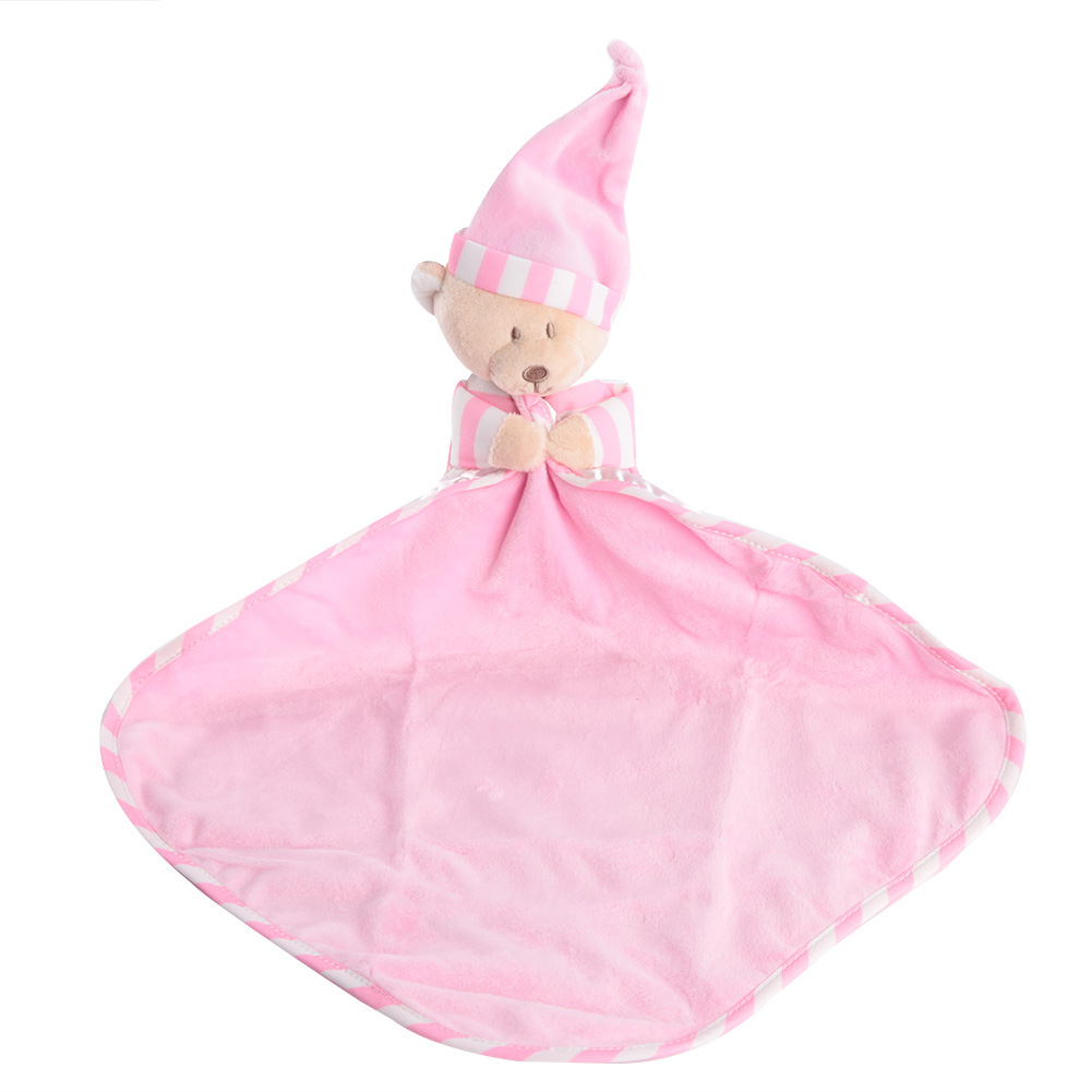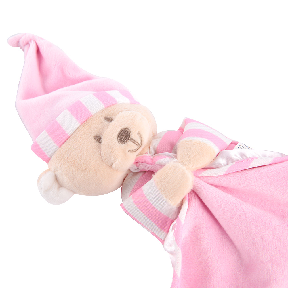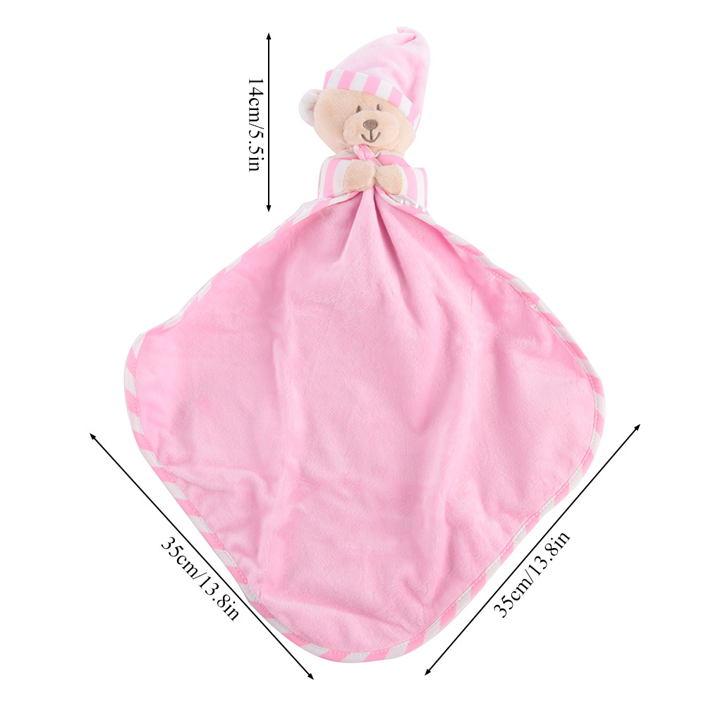1、Made of high quality material, soft, comfortable, nontoxic and skin-friendly. 2、Exquisite workmanship makes it more durable, no matter how the baby twists, grabs, or pulls. 3、Adopts cartoon bear shape design, unique and cute, can pacify the baby's emotion. 4、Helps soothe the baby, and ensures a good night's sleep. 5、Specially designed for baby nursing, multi-functional, can be a baby bib or cute toy.