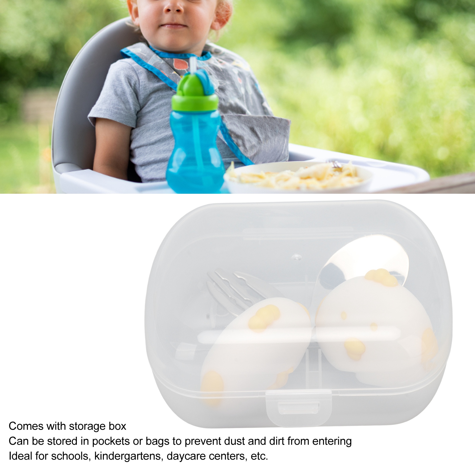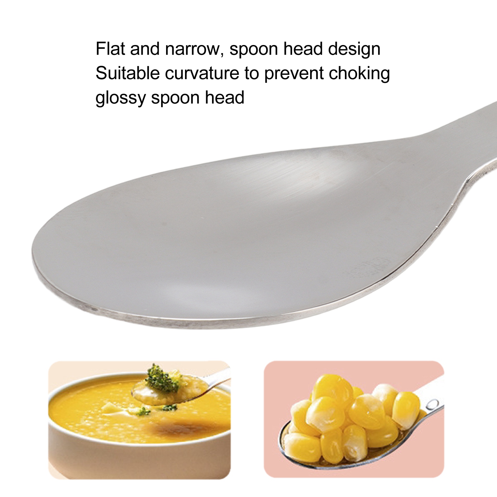 1、Flat: The spoon head is designed to be flat and narrow, glossy, with the right curvature to prevent choking and easy for your baby. 2、Stainless Steel: Toddler utensils are made of drop proof and durable stainless steel, sturdy and drop resistant, safe and durable, and can be used for a long time. 3、Humanized Design: This set of spoons has a humanized fork head design with shorter distance between the fork tines, making it easier to fork food. 4、Easy to Carry: The baby tableware spoon and fork set comes with its own storage box, which can be stored in a pocket or bag to prevent dust and dirt from entering, convenient for travel and school lunch box. 5、Applicable Scenarios: Toddler forks and spoons can always accompany your baby to learn to eat independently, perfect for schools, kindergartens, daycare centers, etc.